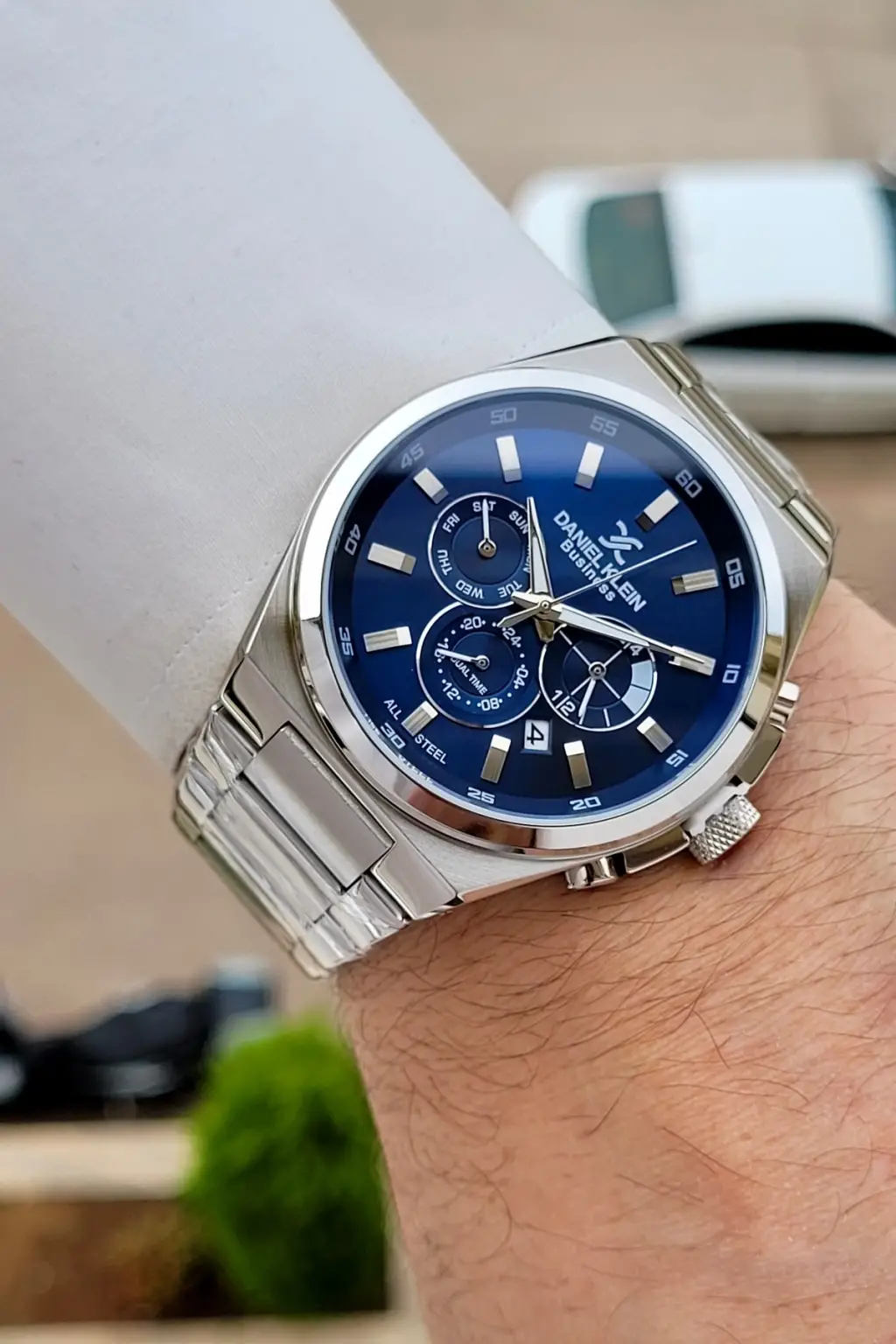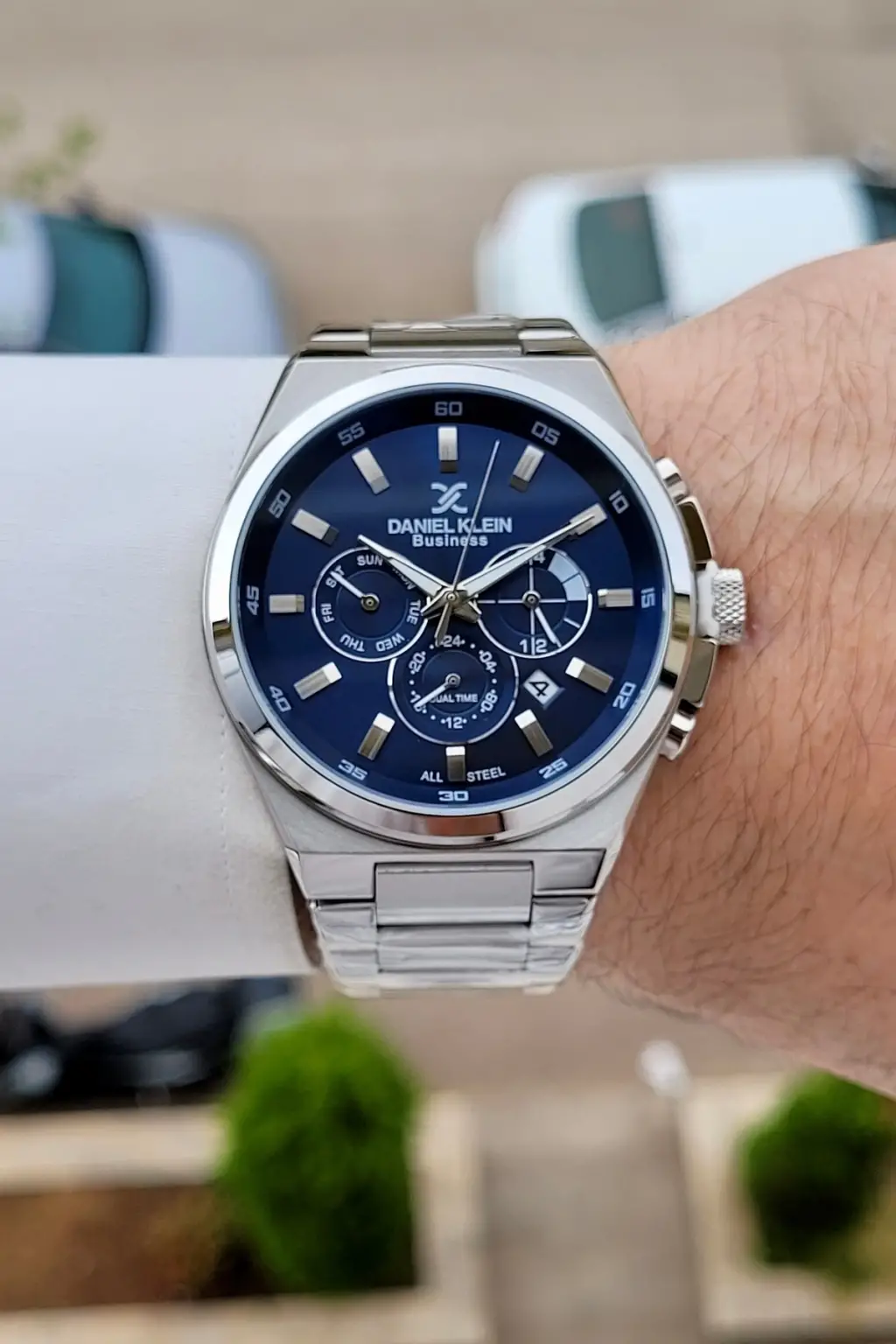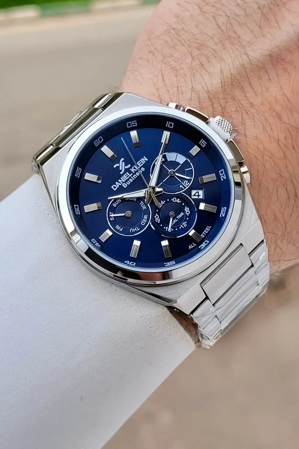 BUSINESS Kadranı Lacivert Kordonu Gümüş Renk 45 Mm Full Çelik 5 ATM Erkek Kol Saati
