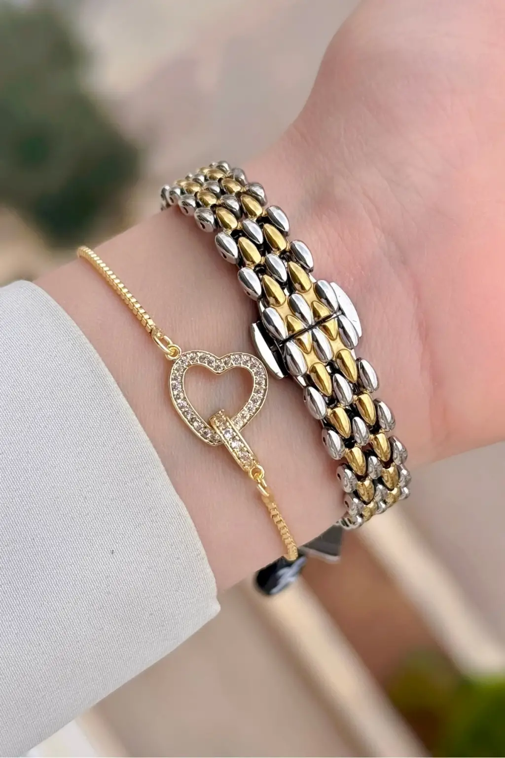 Gold Gümüş Renk 20,5 mm Kadın Kol Saati ve Bileklik