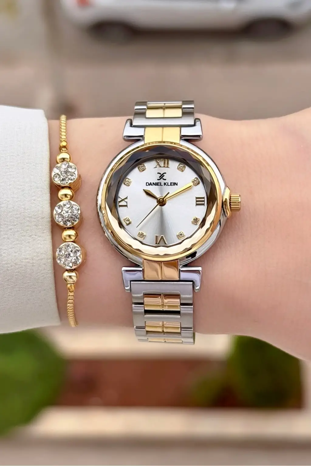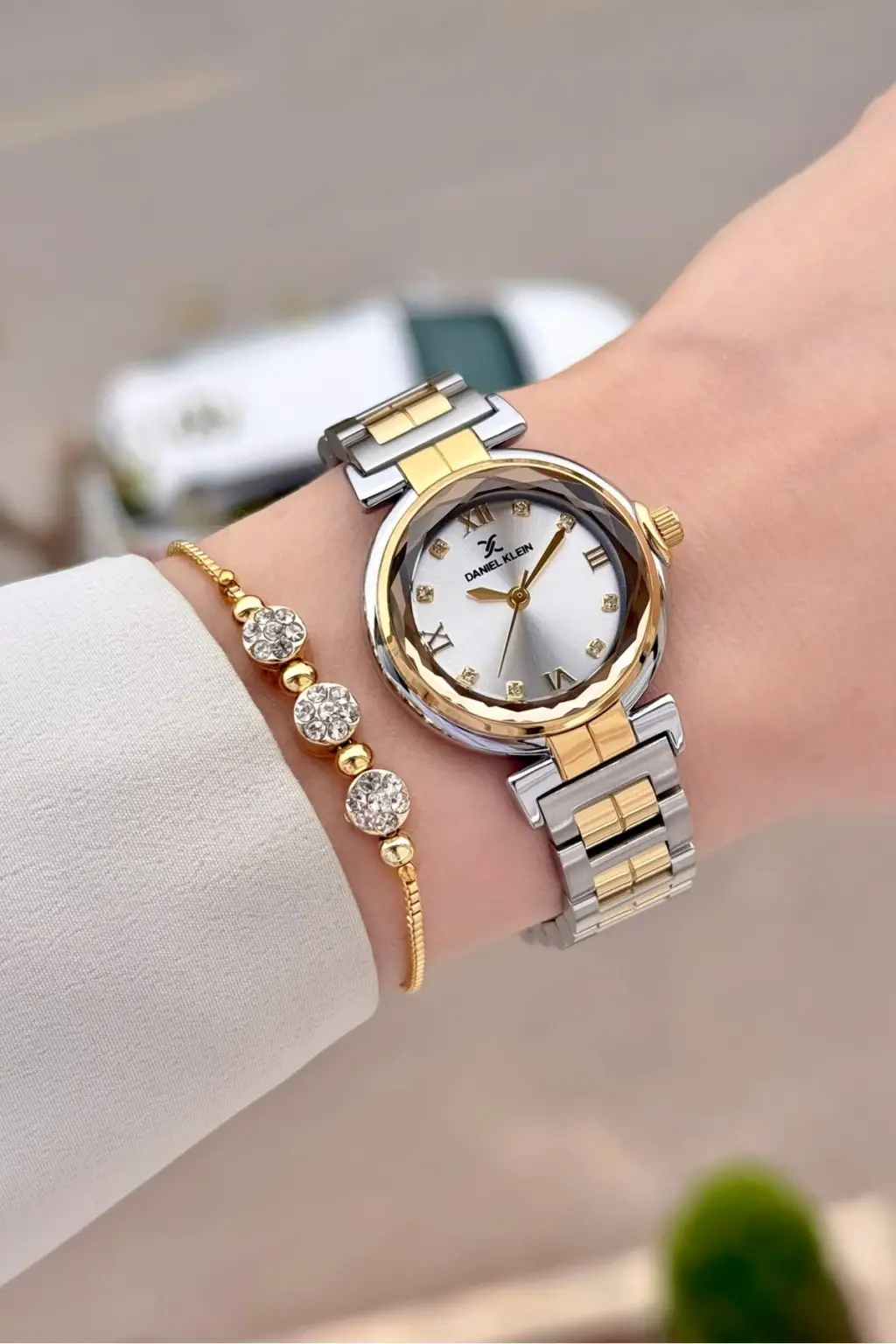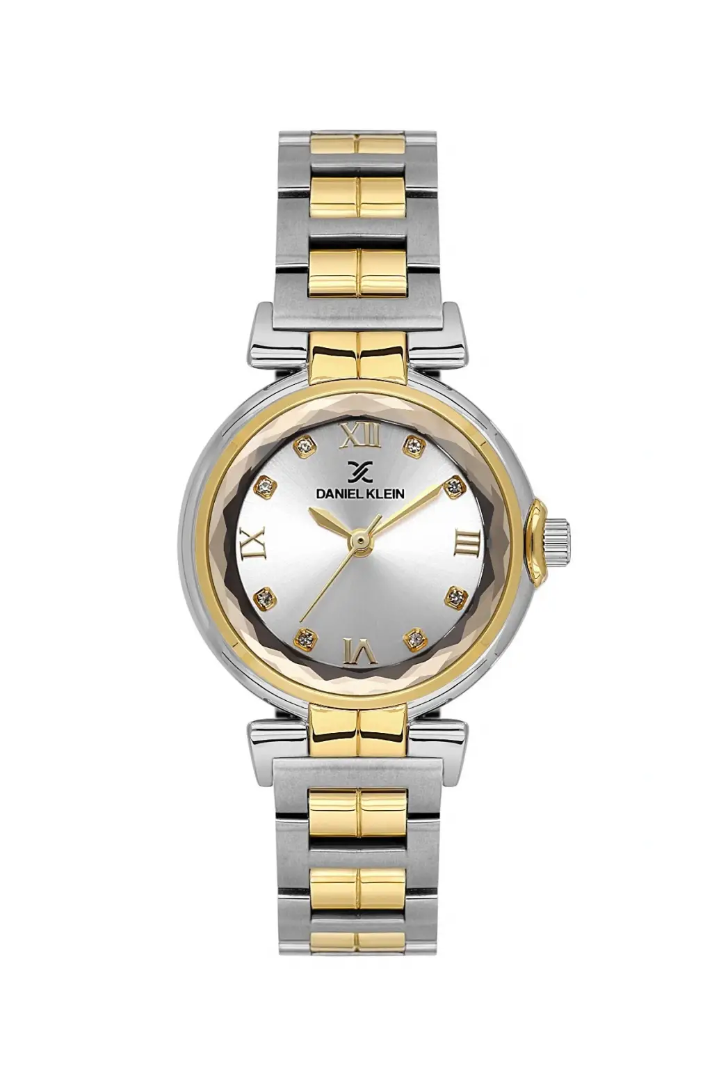 Gold Gümüş Renk 30 Mm Kristal Cam Kadın Kol Saati ve Hediye Bileklik