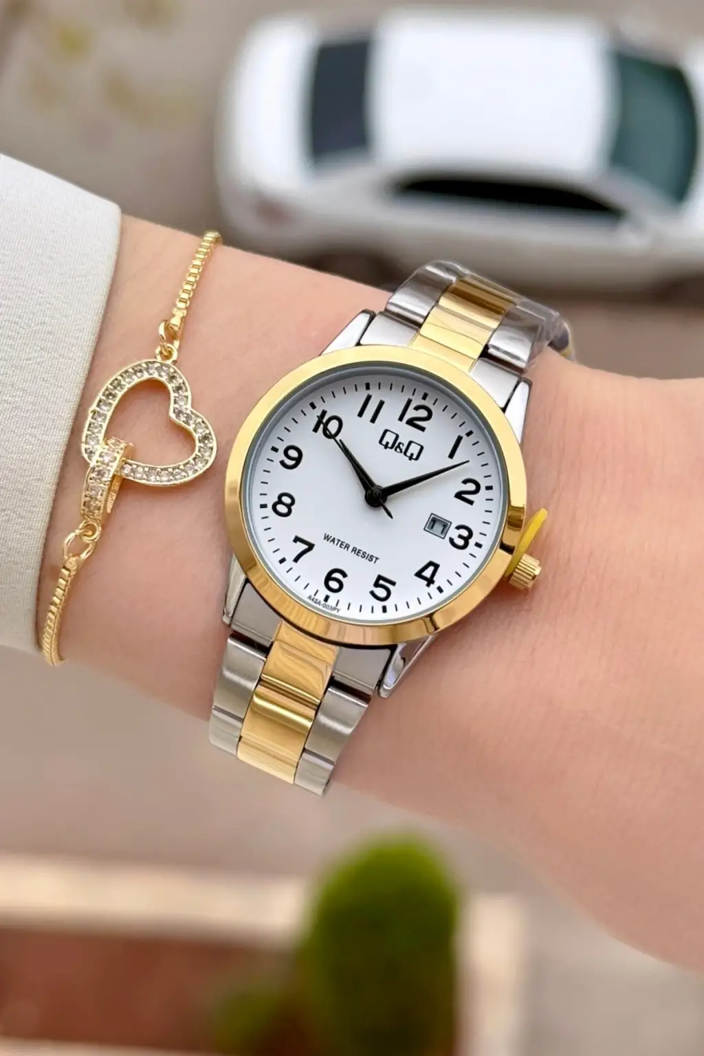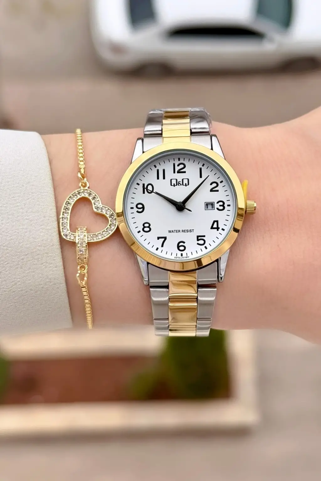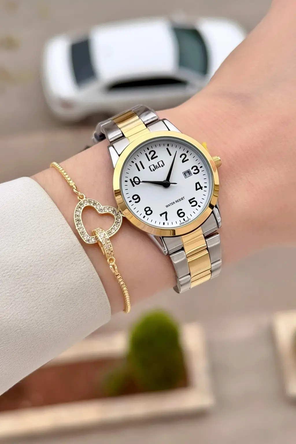 Gold Gümüş Renk 30 Mm Rakamlı Kadın Kol Saati ve Hediye Bileklik