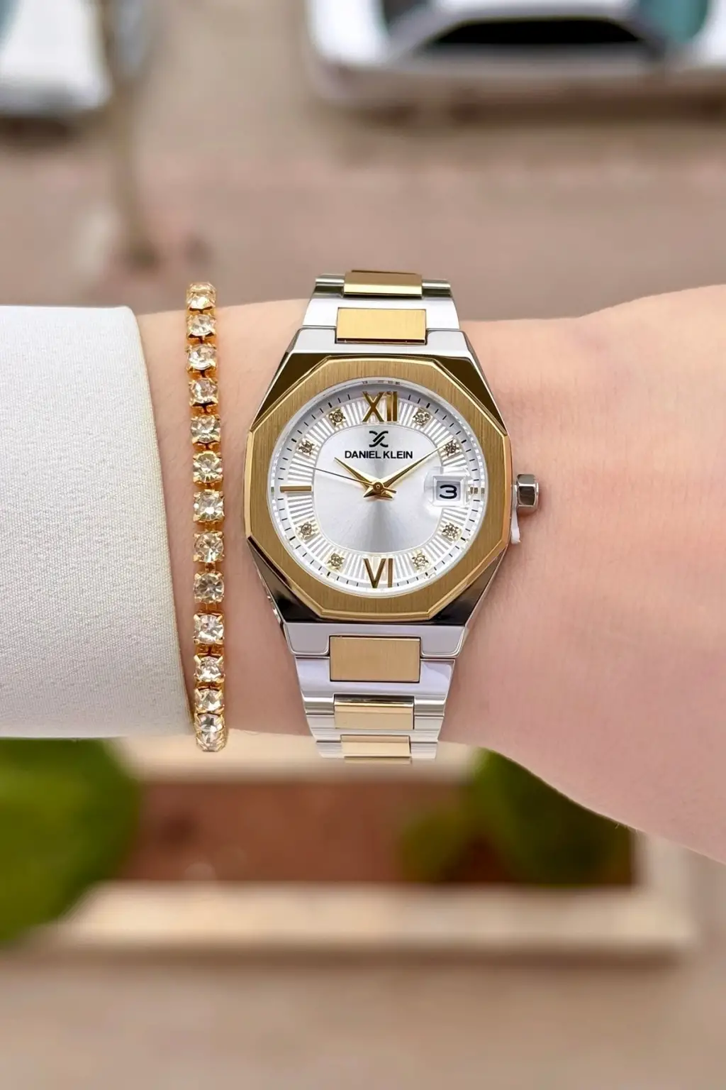 Gold Gümüş Renk Hediye Paketli 30 Mm Kadın Kol Saati ve Bileklik