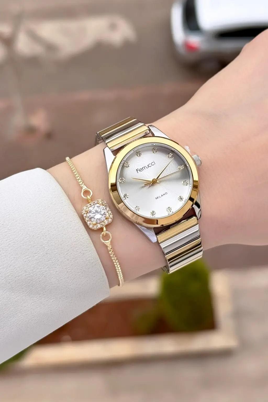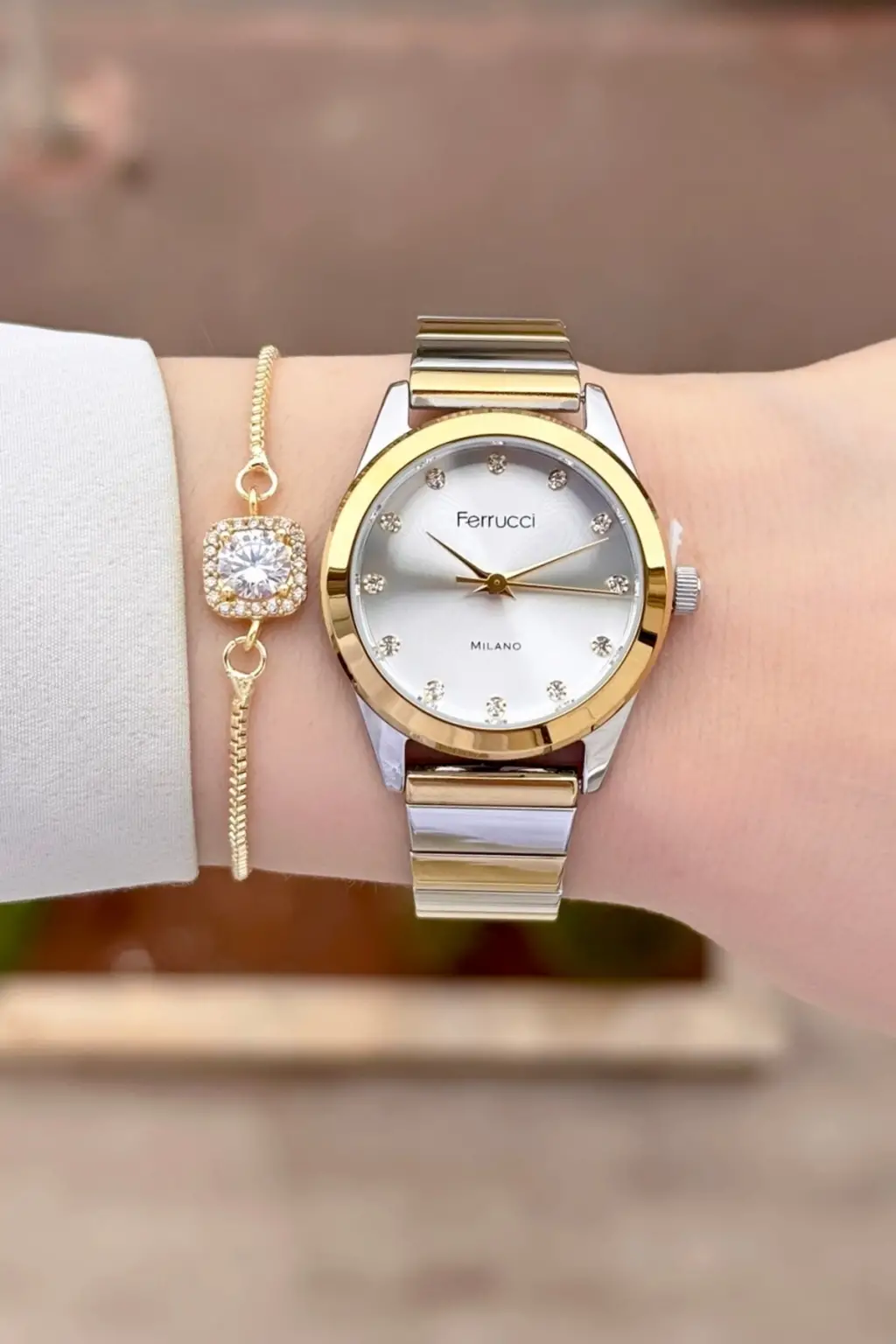 Gold Gümüş Renk Kadın Kol Saati ve Bileklik