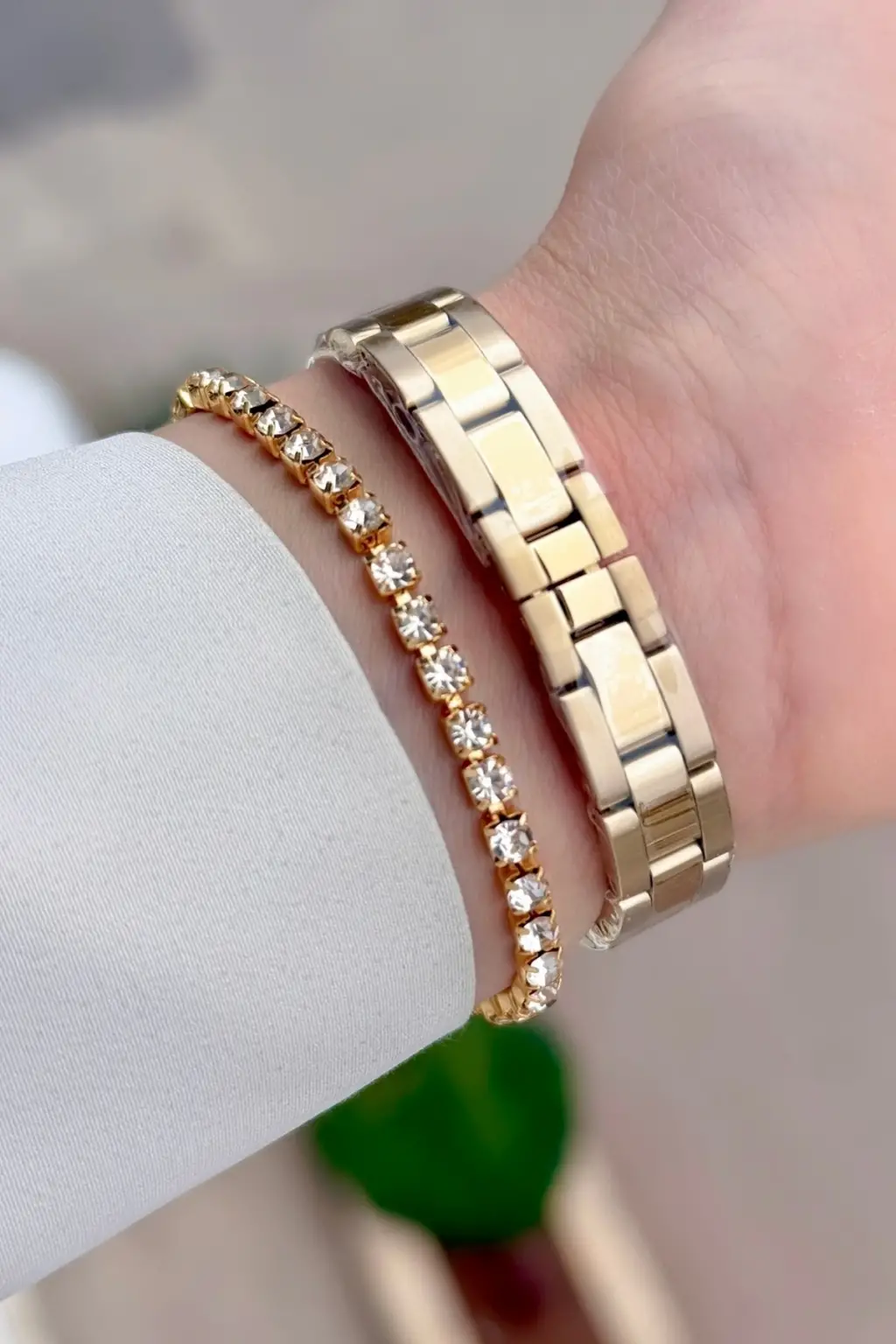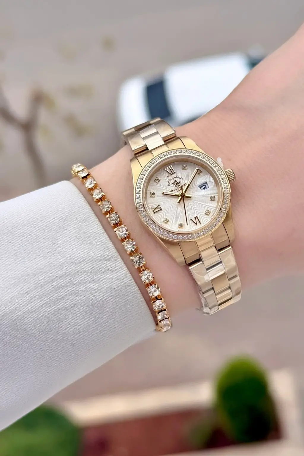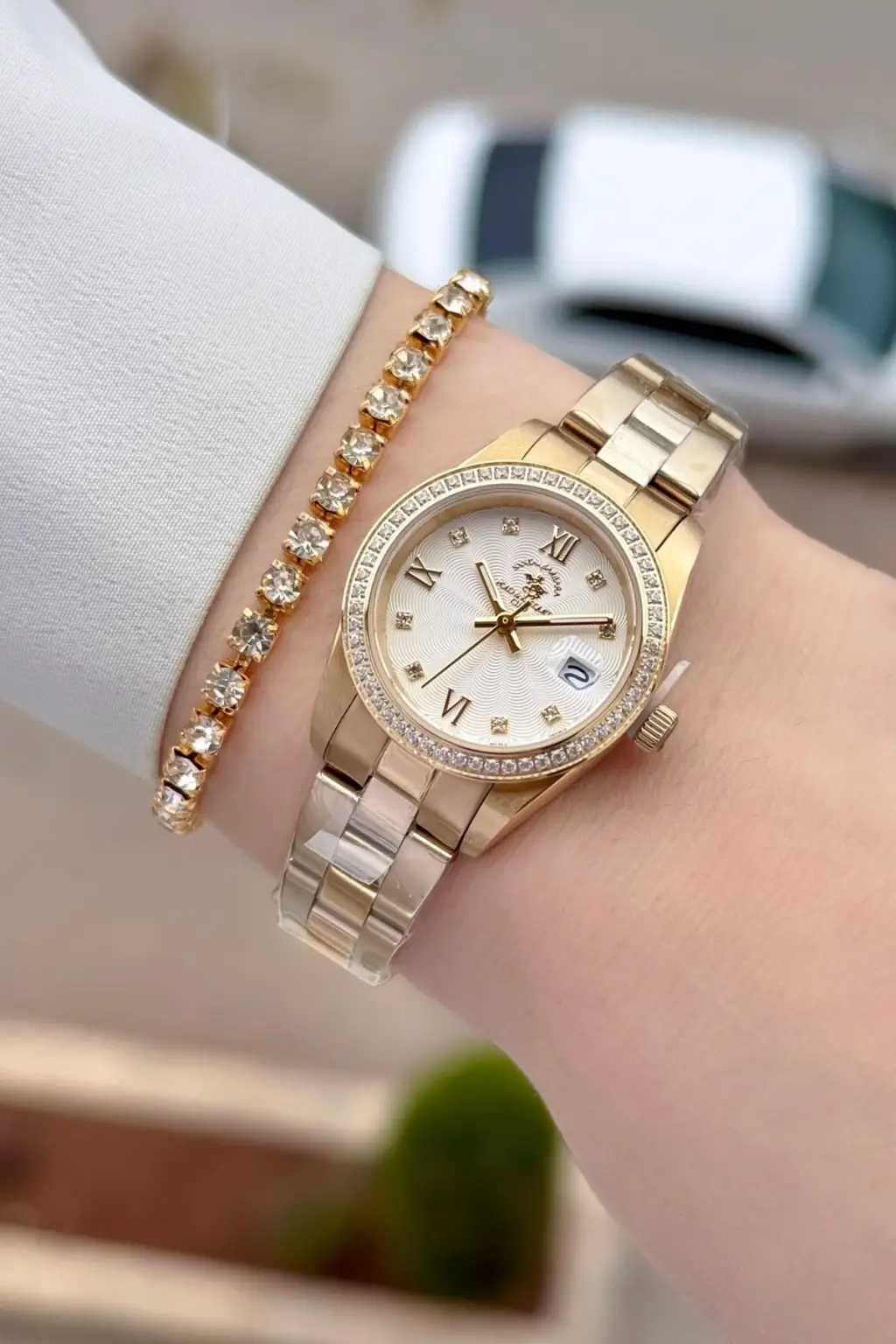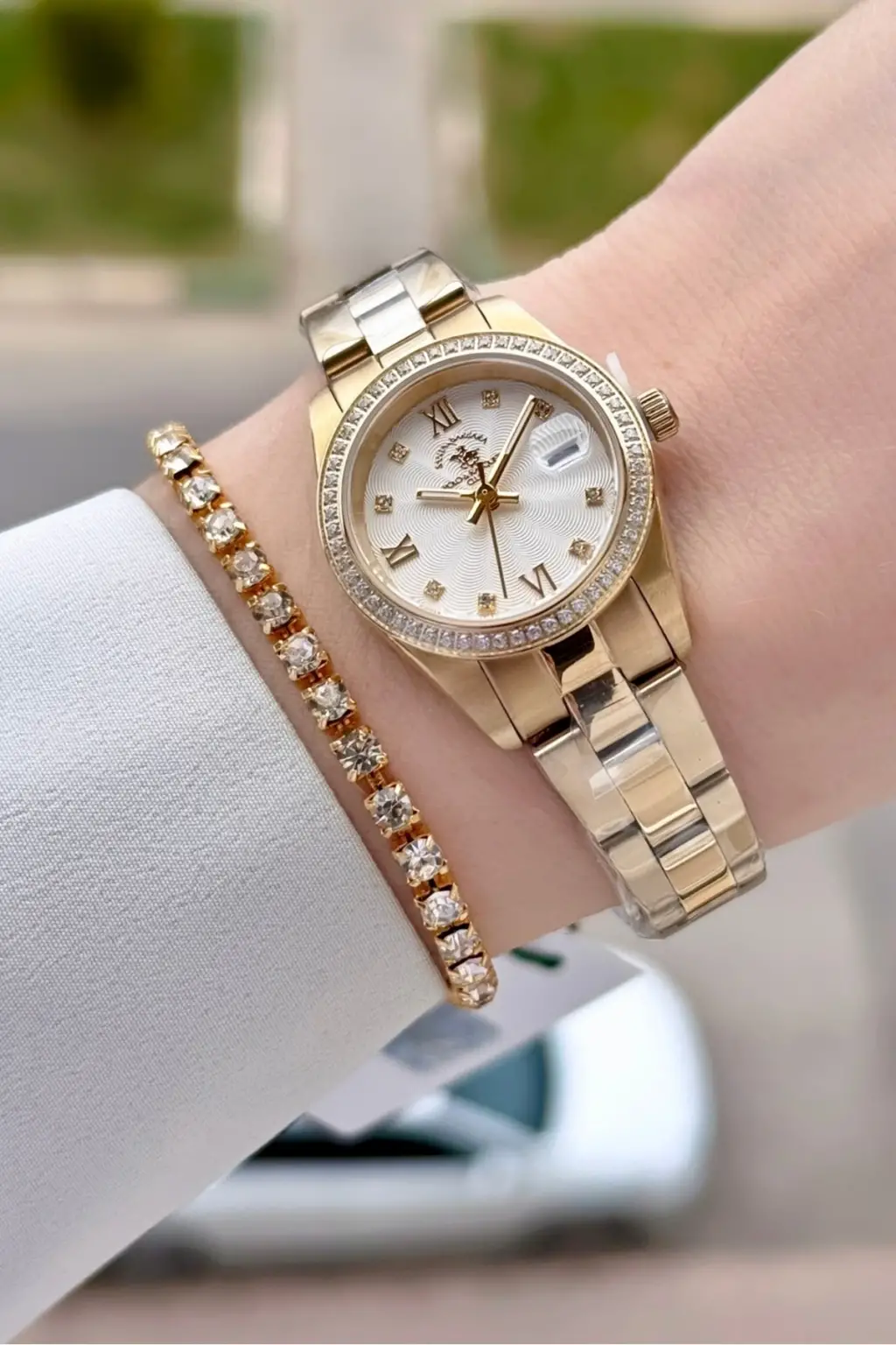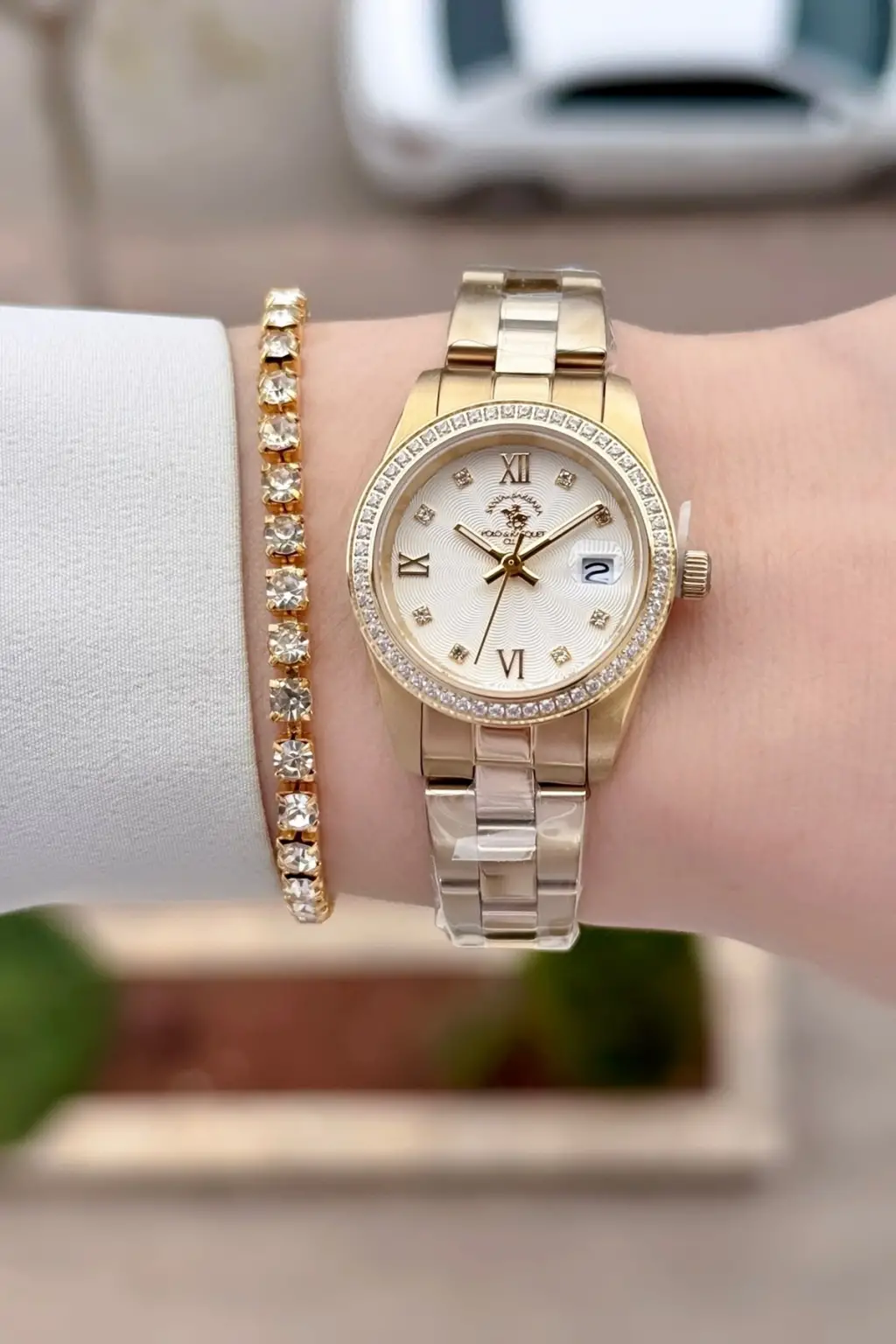 Gold Renk 26 Mm Tam Çelik 5 ATM Su Geçirmez Kadın Kol Saati ve Bileklik