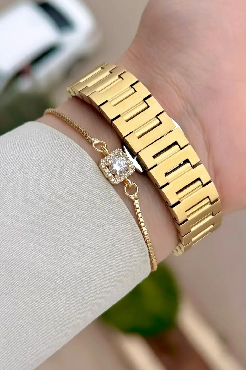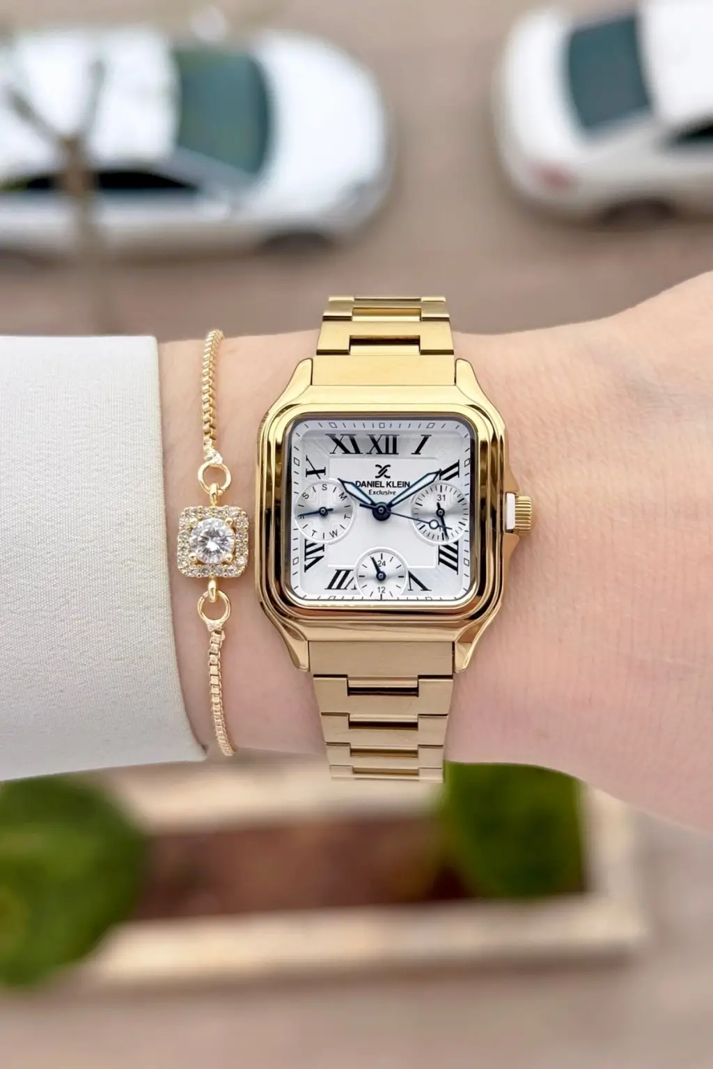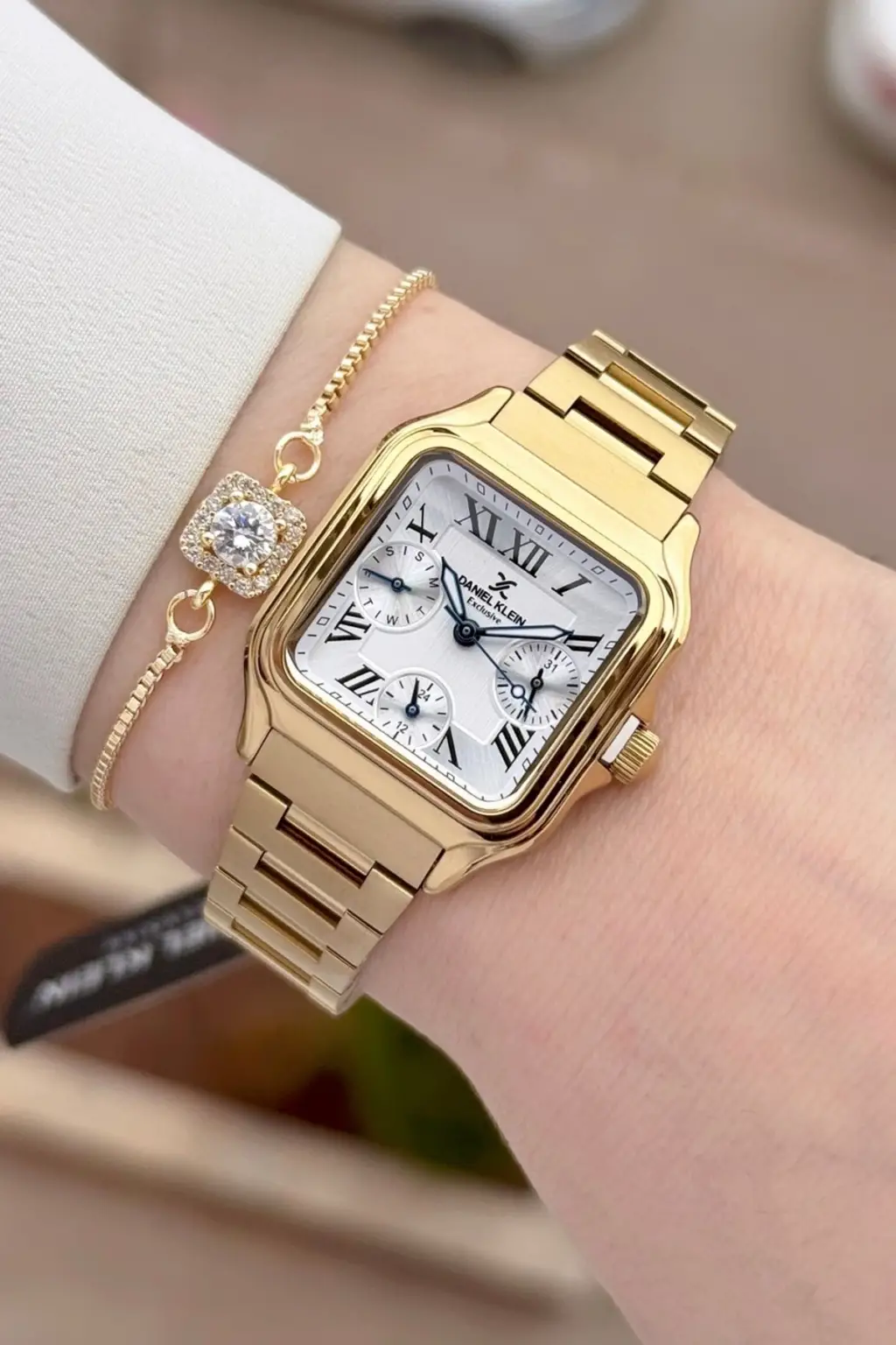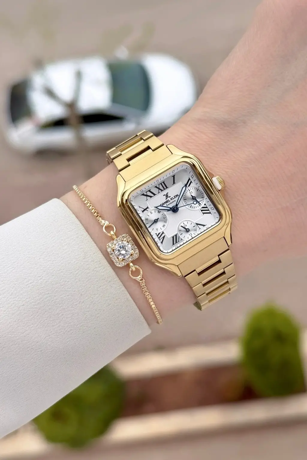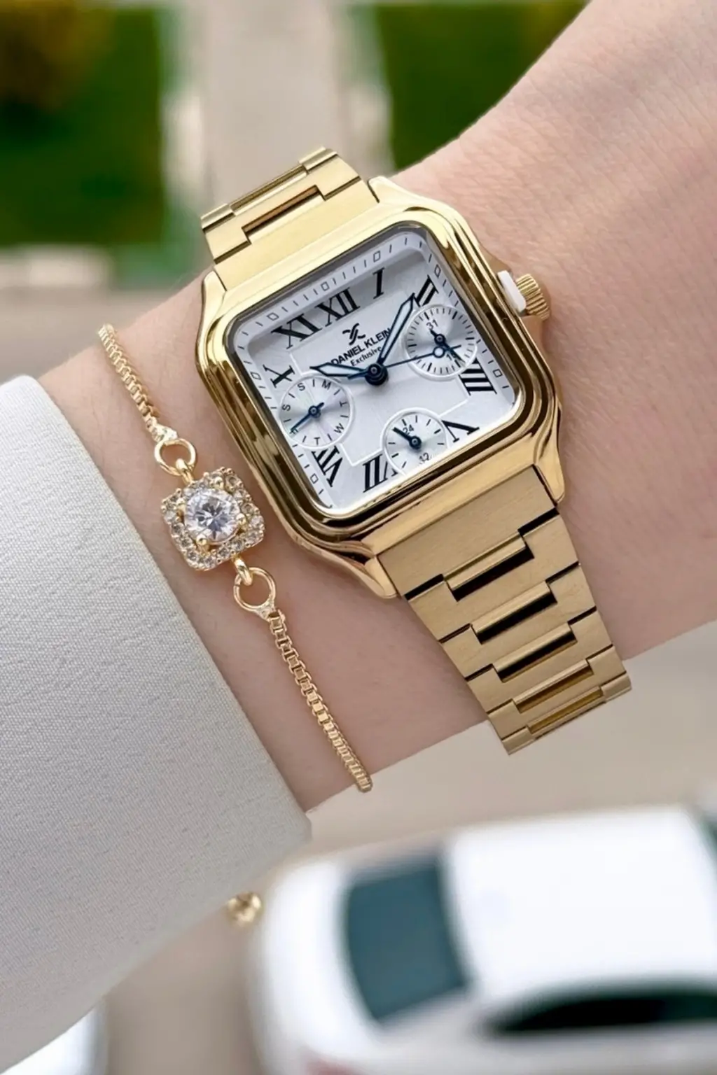 Gold Renk 28,5 mm İç Göstergeleri Aktif Hediye Paketli Kadın Kol Saati