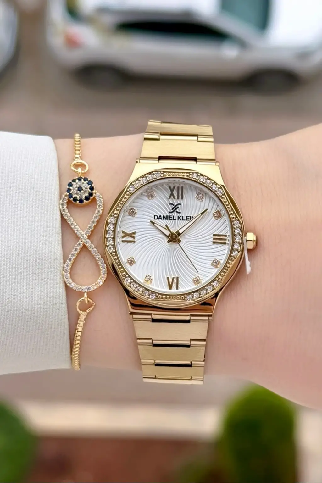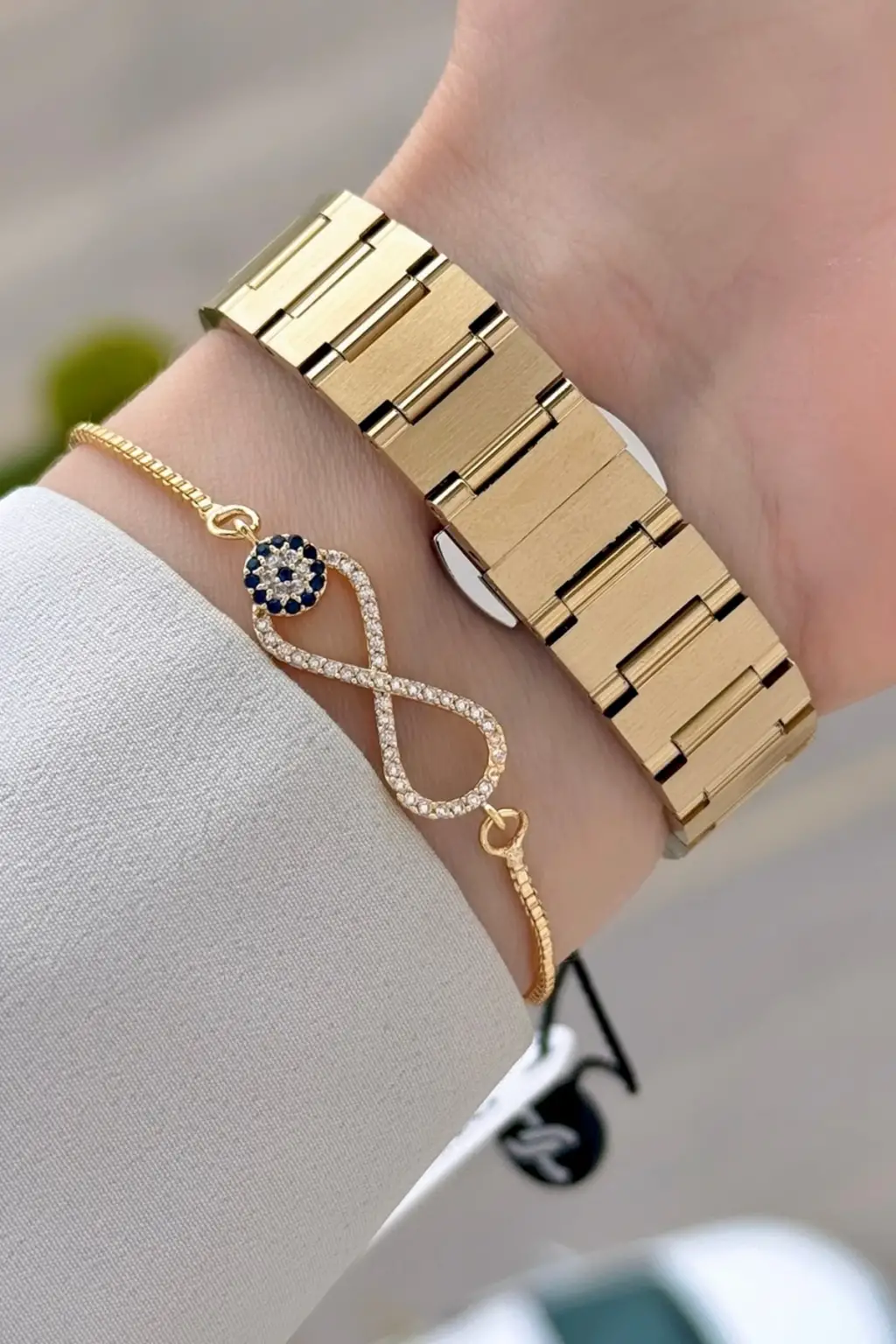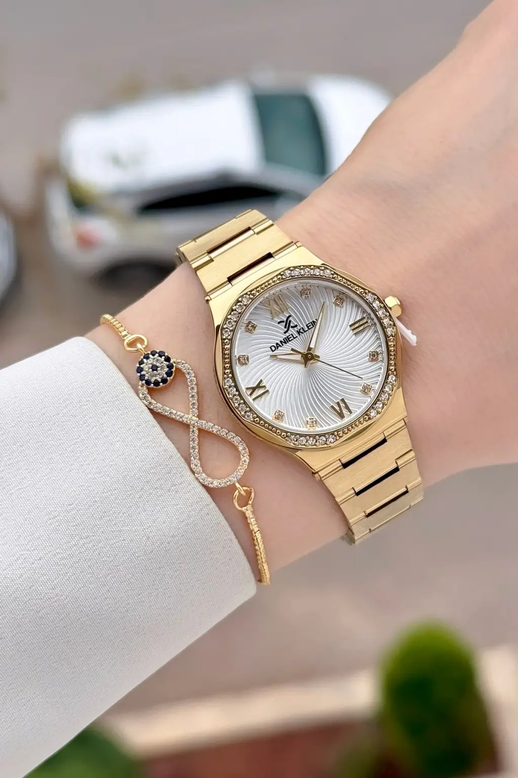 Gold Renk 30 Mm Kadın Kol Saati ve Hediye Bileklik