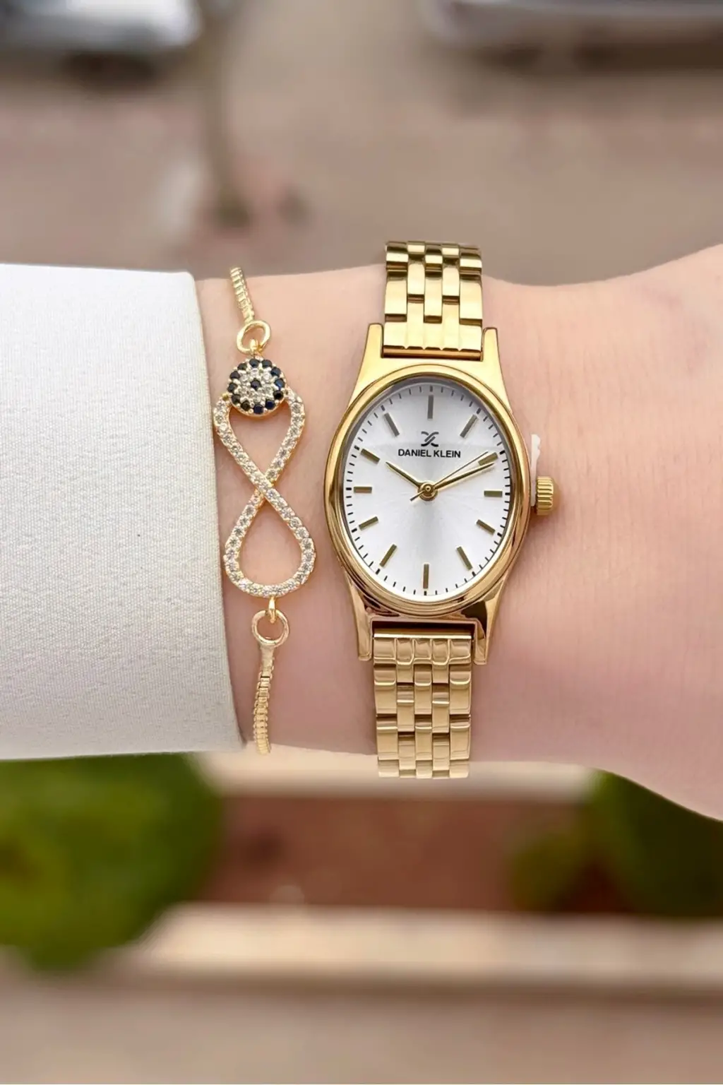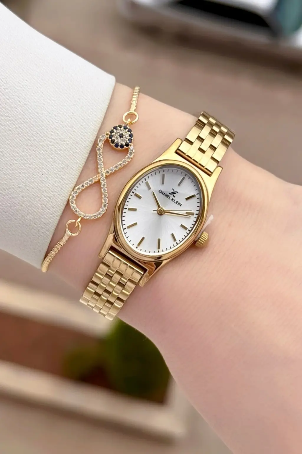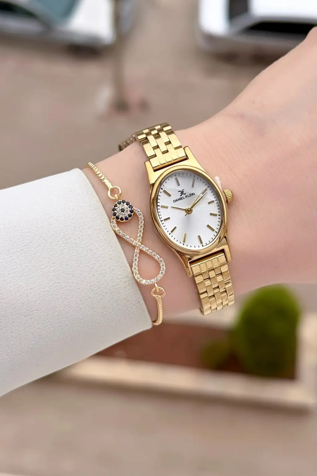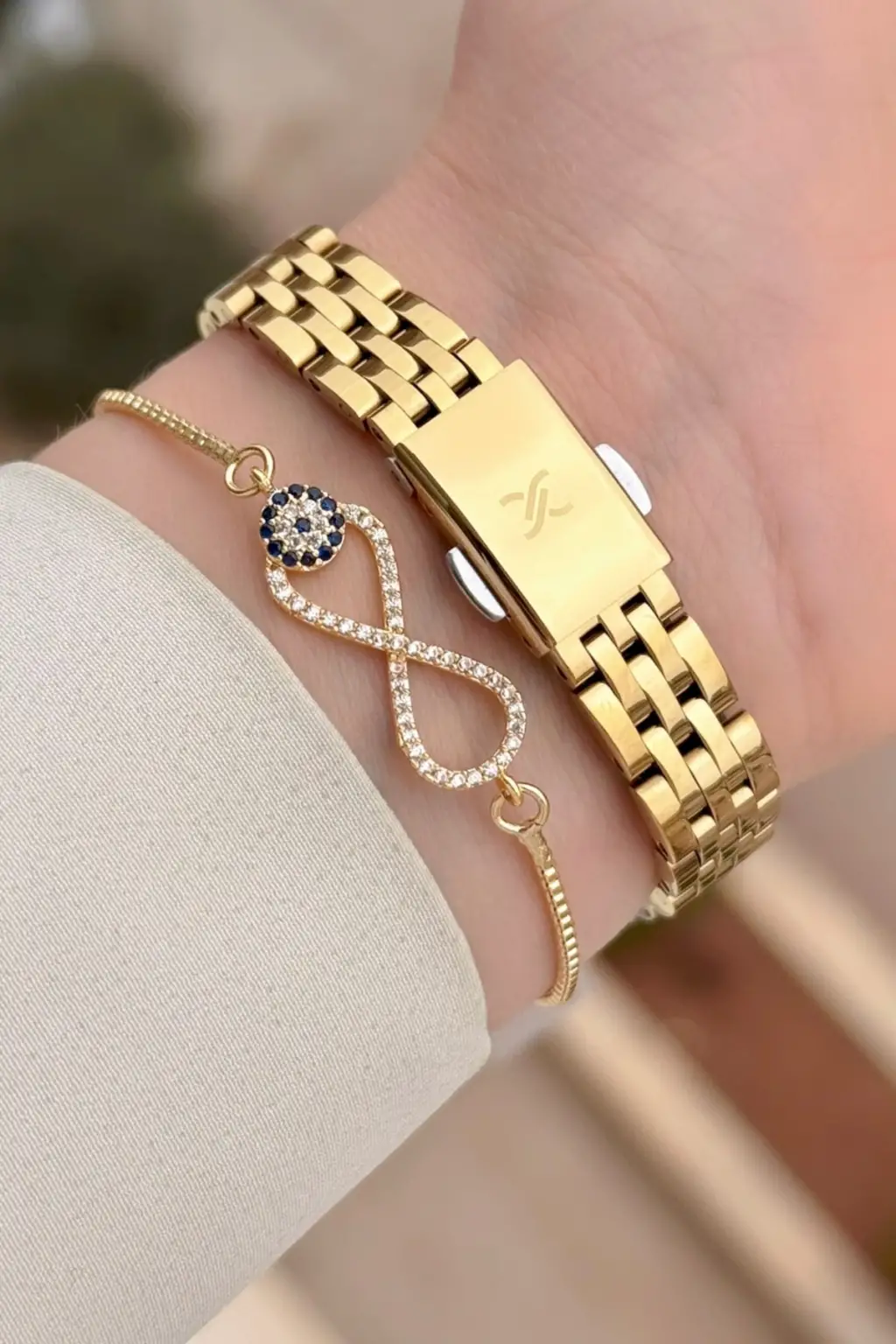 Gold Renk Hediye Paketli Kadın Kol Saati ve Bileklik