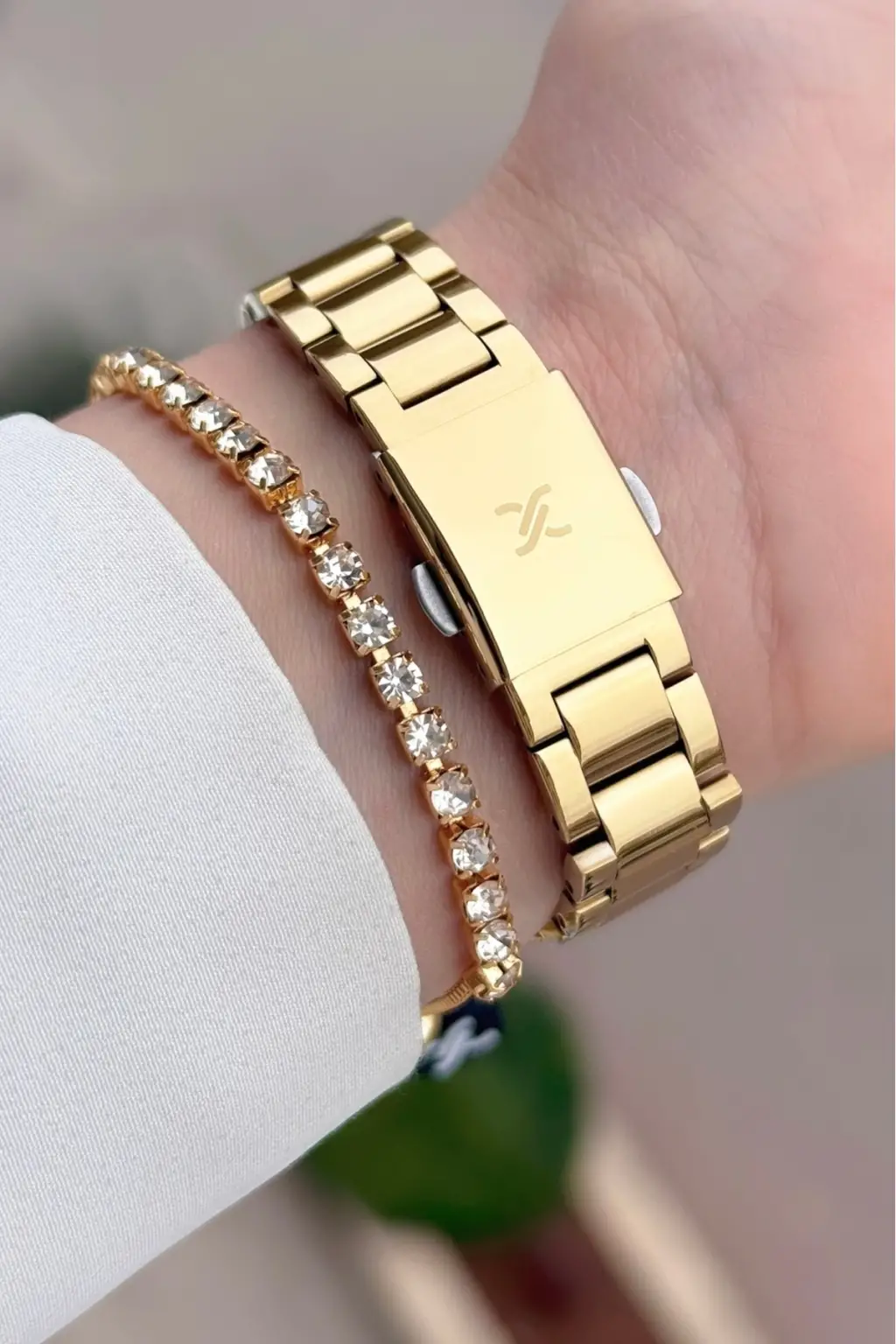 Gold Renk Kesme Camlı Kadın Kol Saati Ve Bileklik