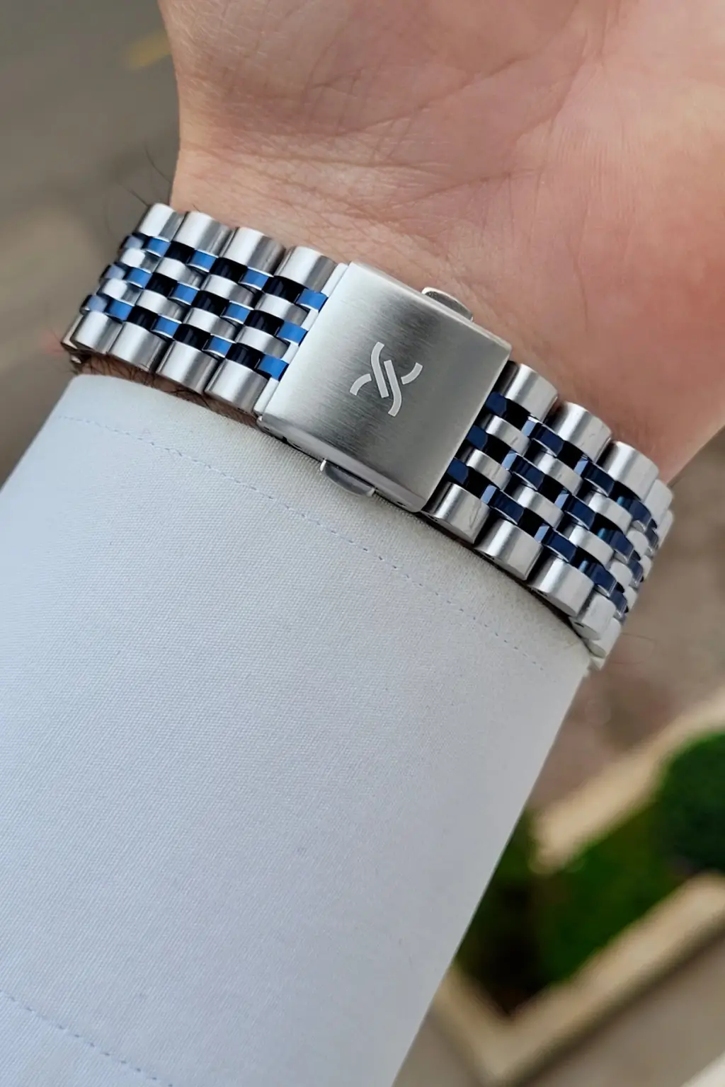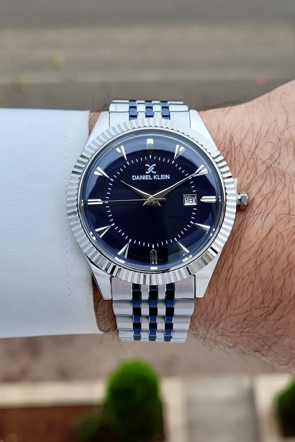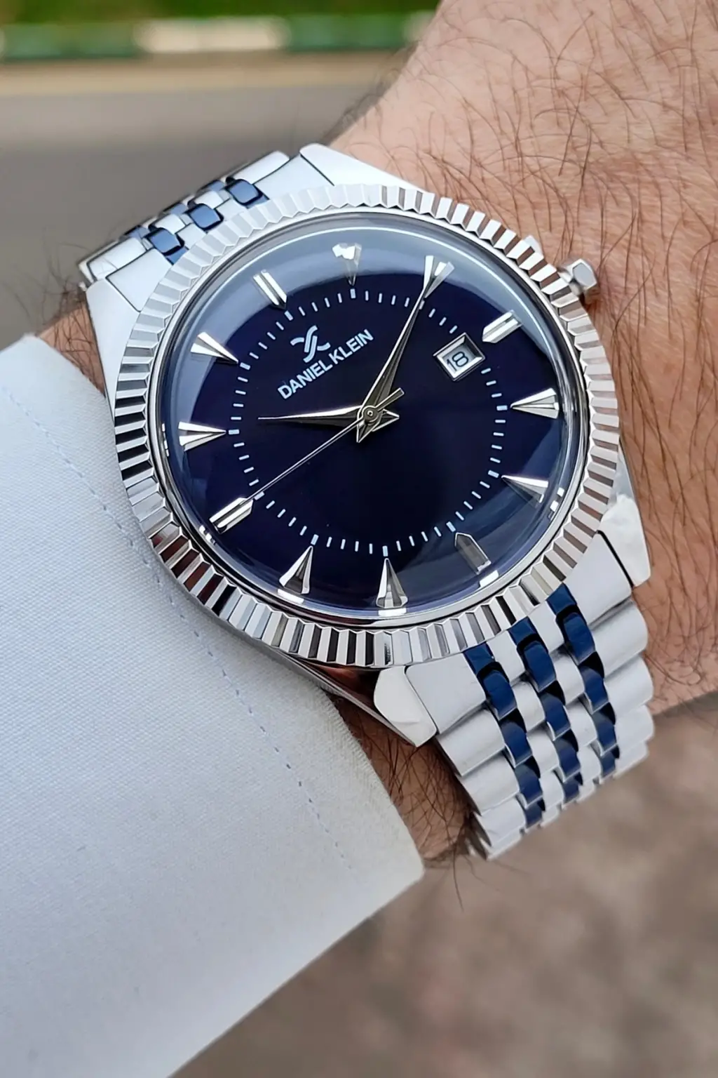 Gümüş Lacivert Renk Hediye Paketli 41 mm Erkek Kol Saati