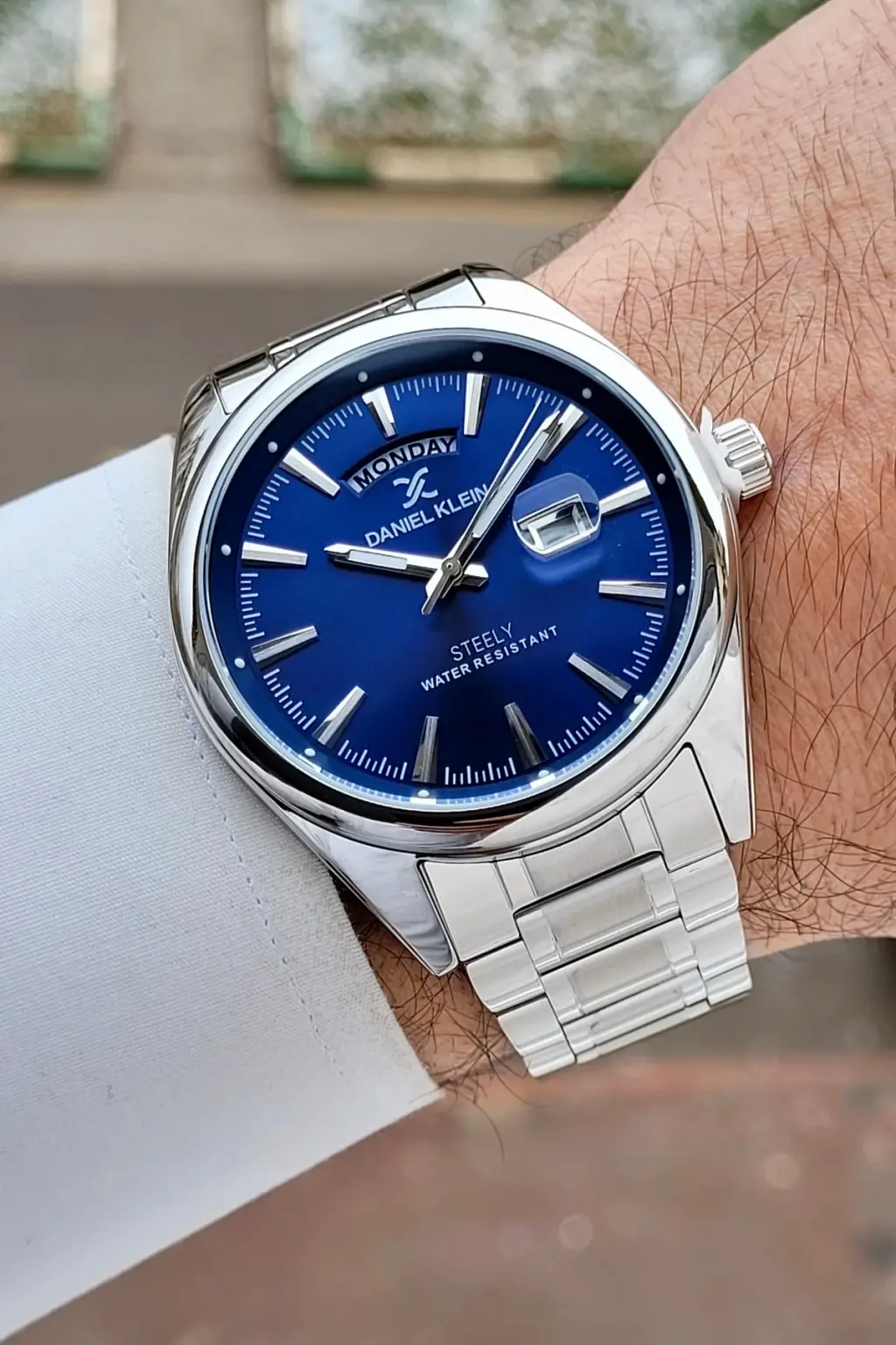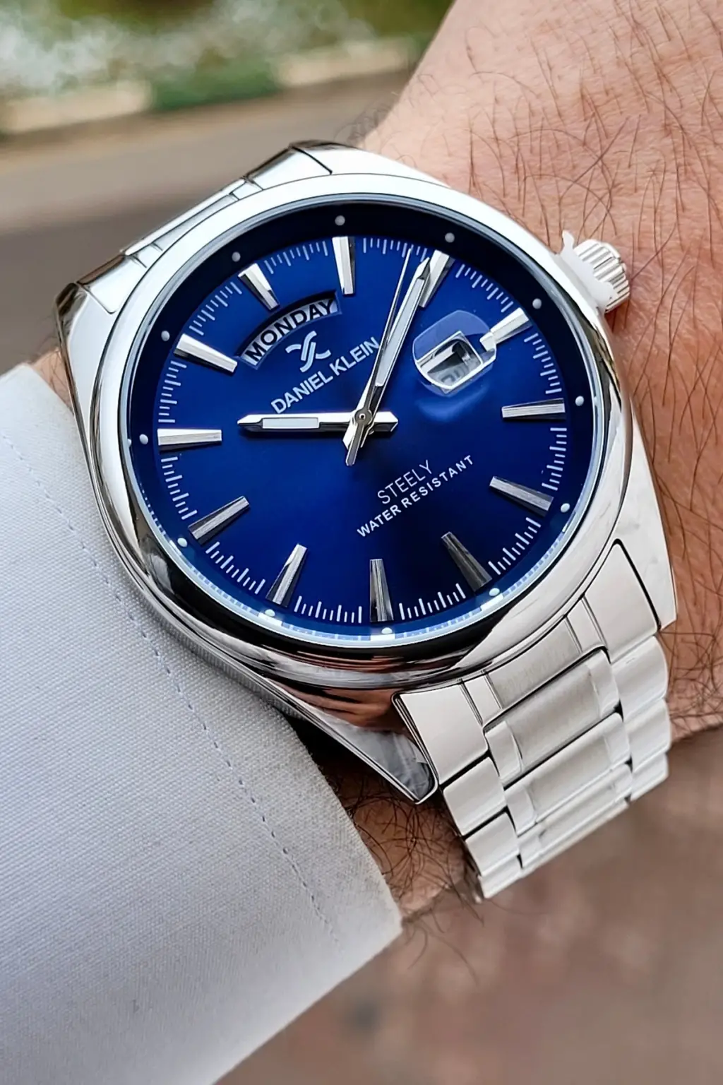 Gümüş Lacivert Renk Tamamen Paslanmaz Çelik Takvimli Erkek Kol Saati