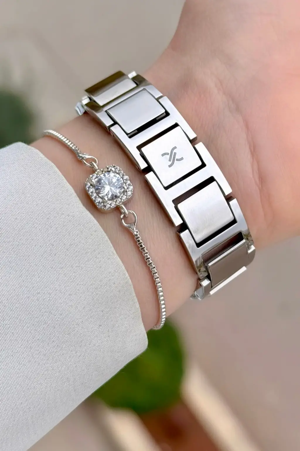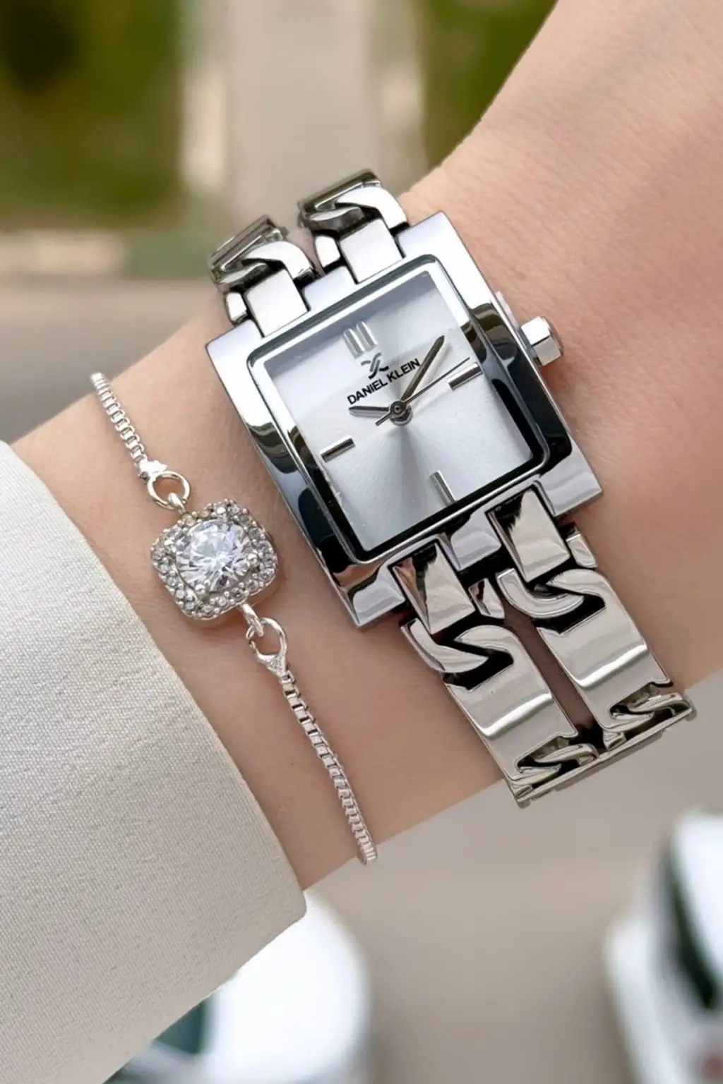 Gümüş Renk 24 Mm Zincirli Kadın Kol Saati ve Hediye Bileklik