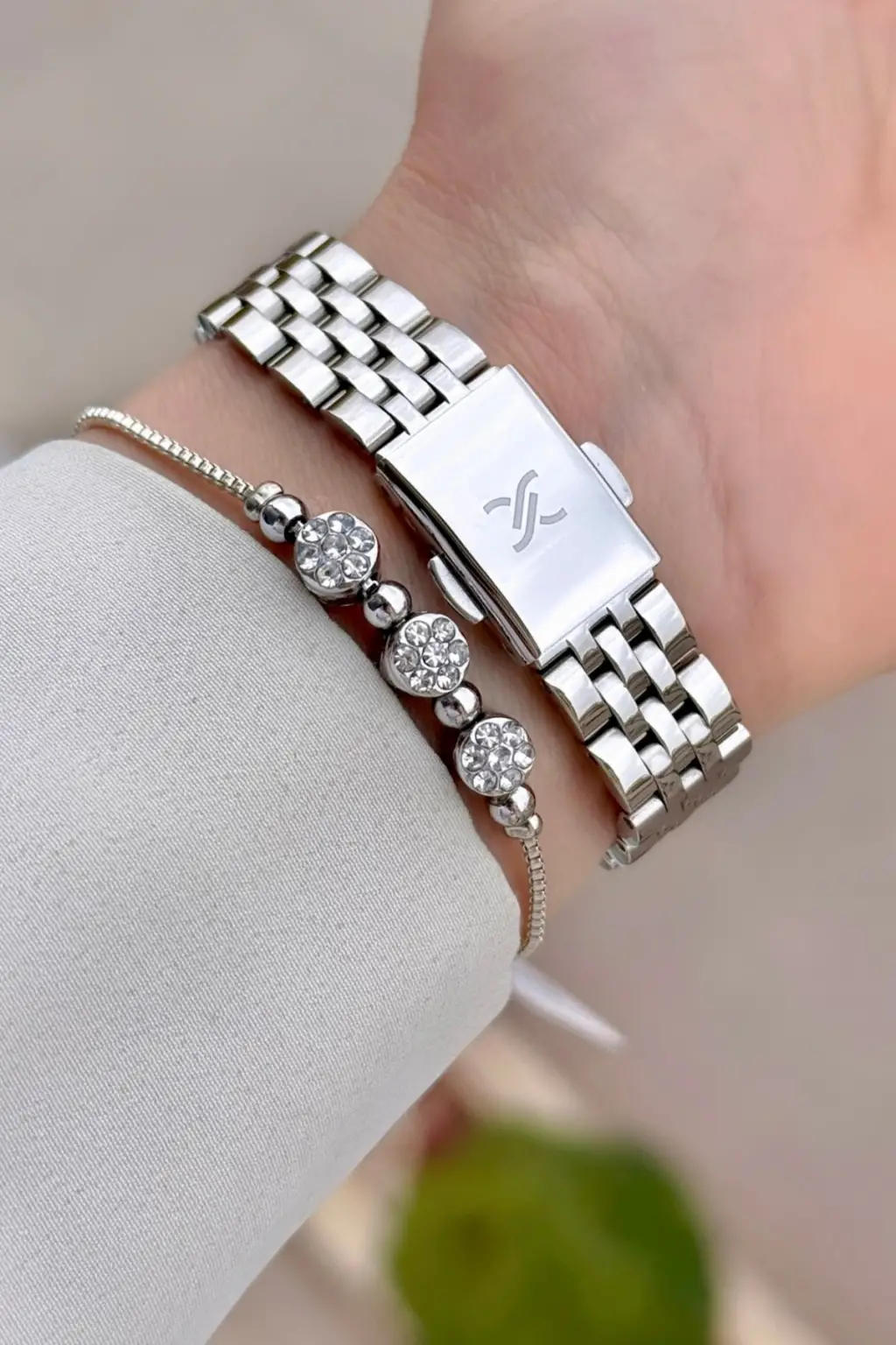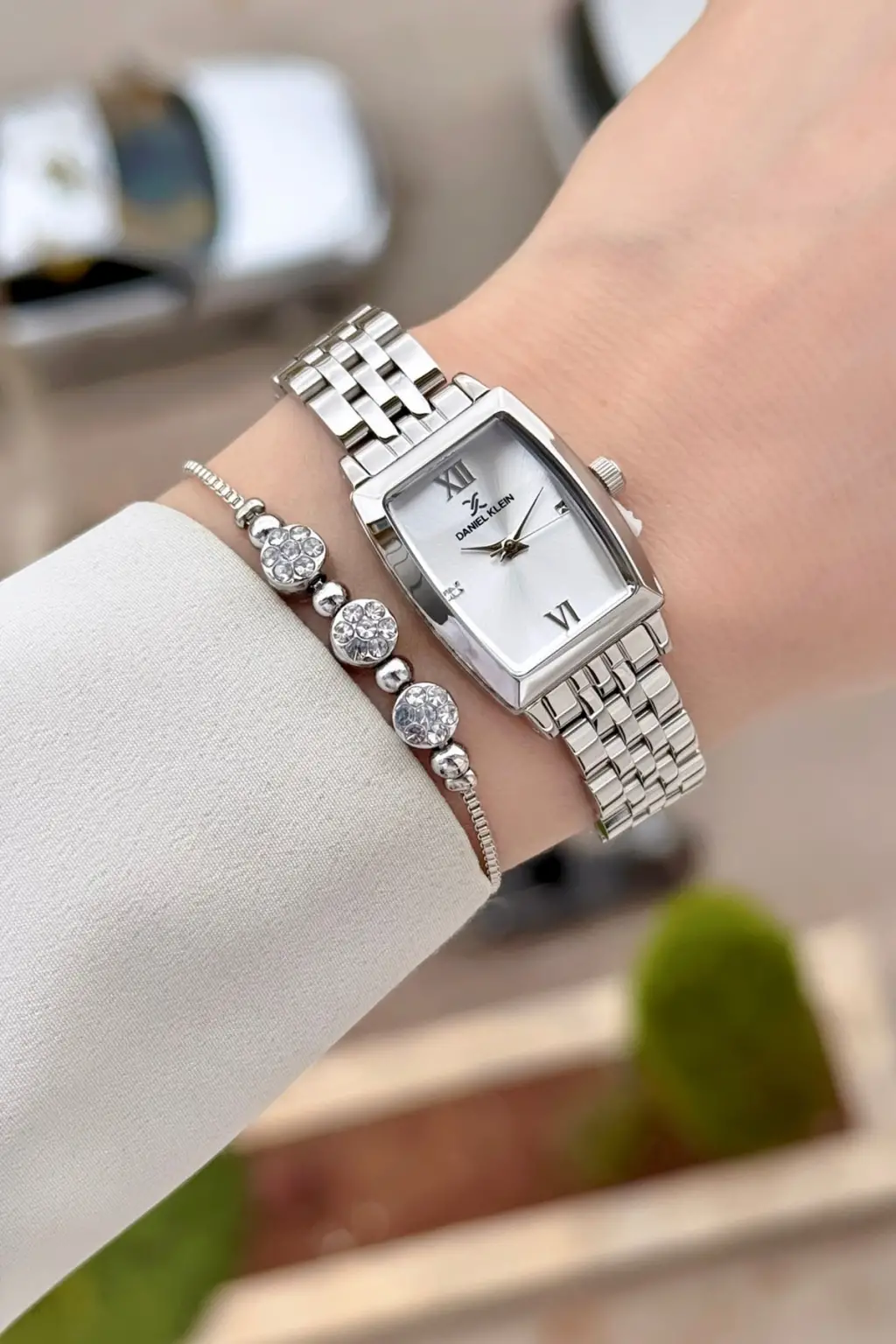 Gümüş Renk 26 mm Kadın Kol Saati ve Hediye Bileklik
