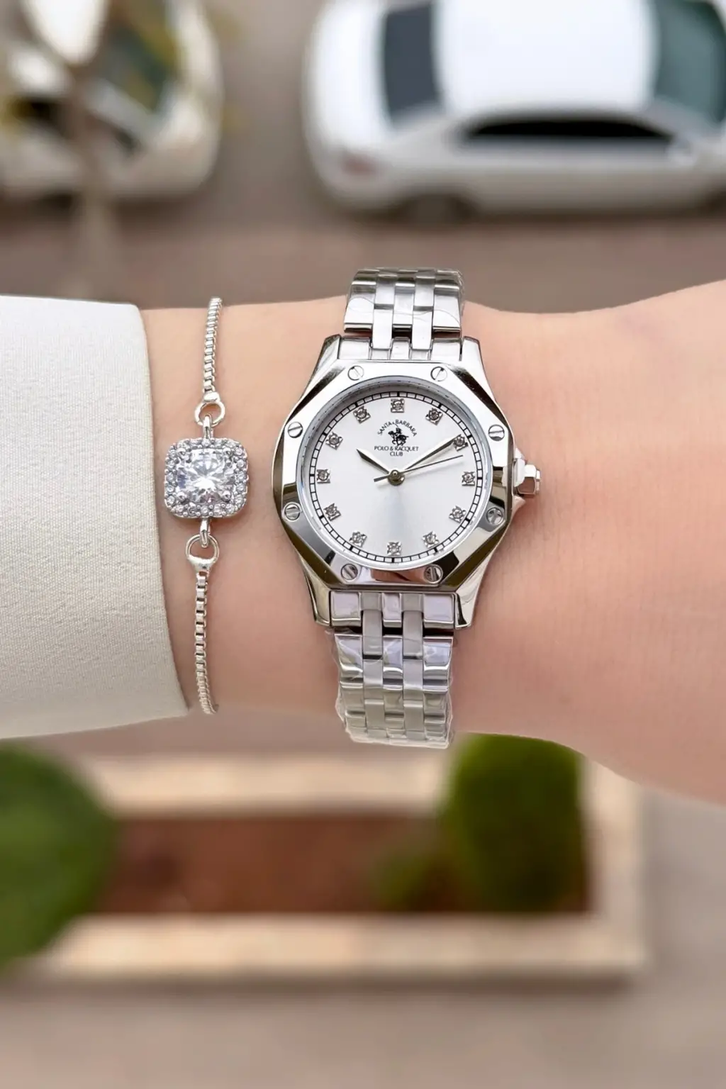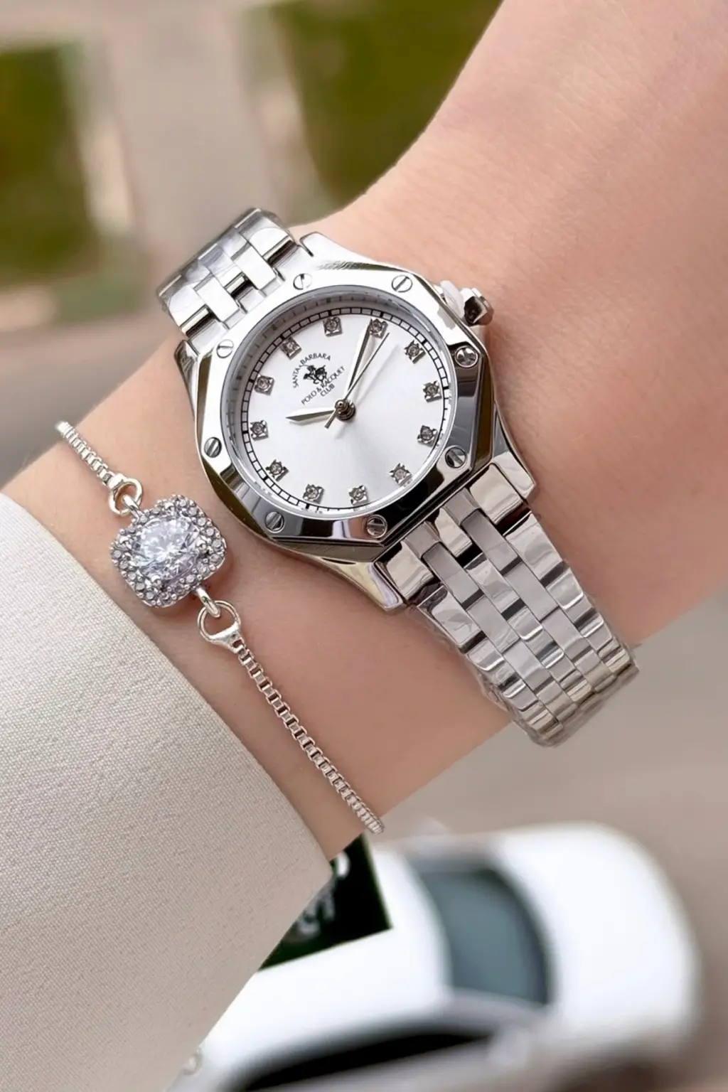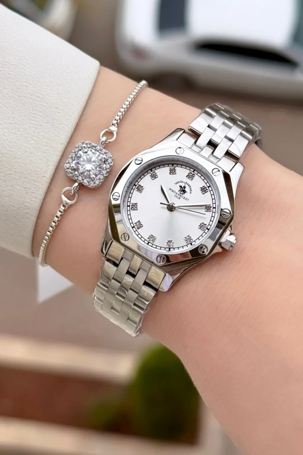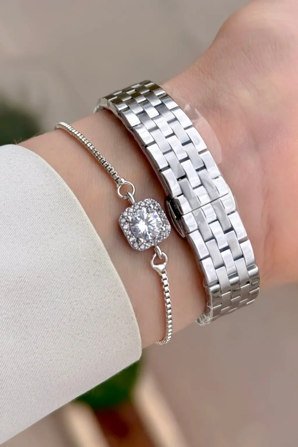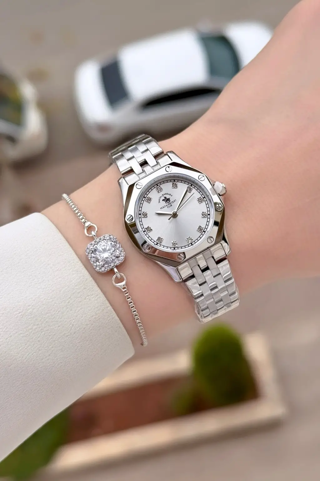 Gümüş Renk 27,5 Mm Tam Çelik 5 ATM Su Geçirmez Kadın Kol Saati ve Bileklik