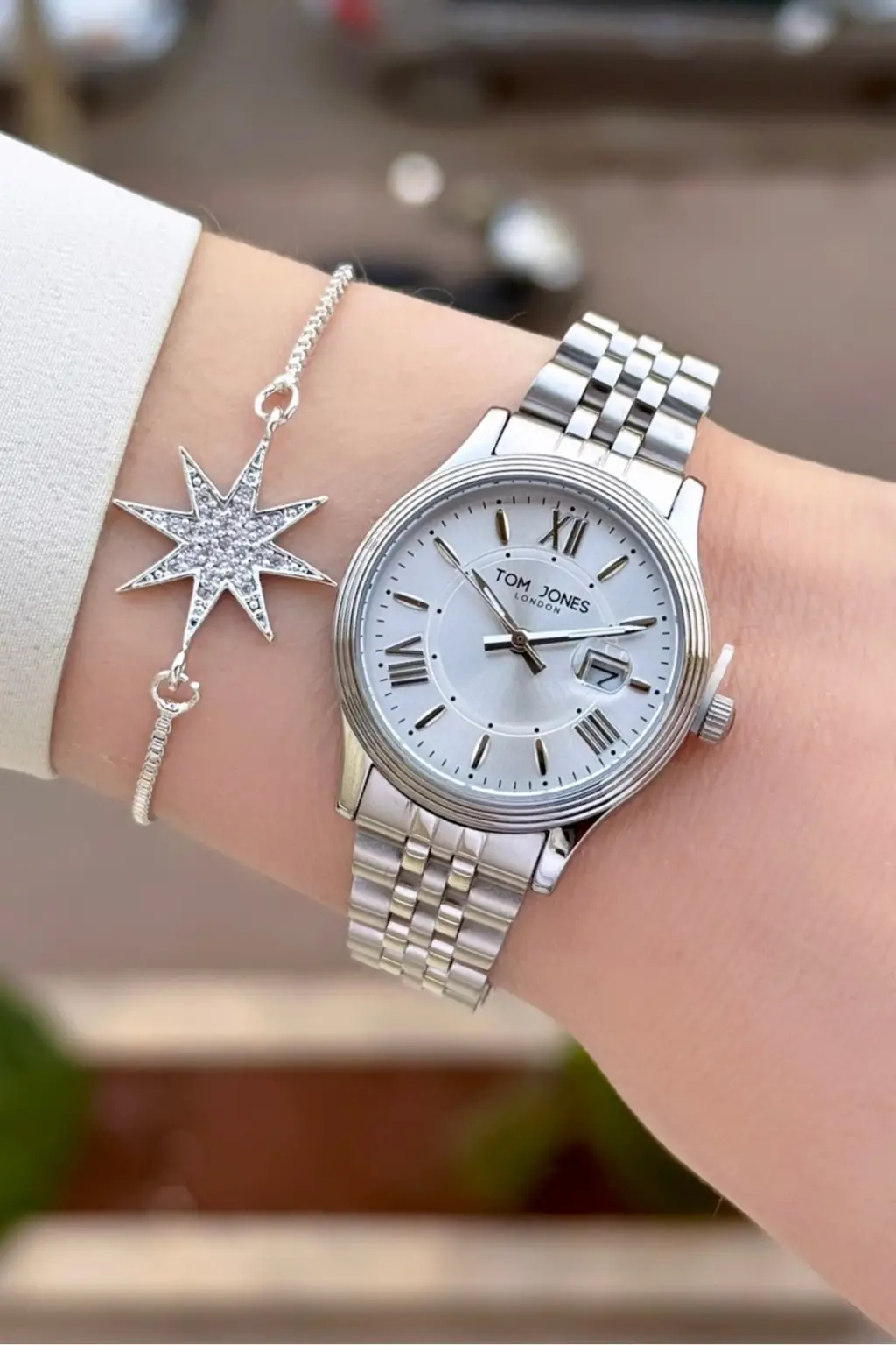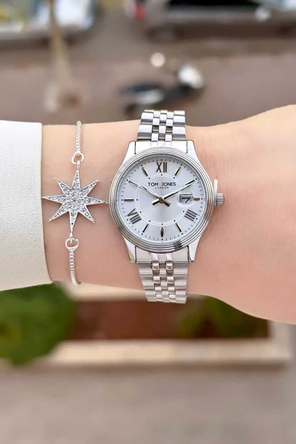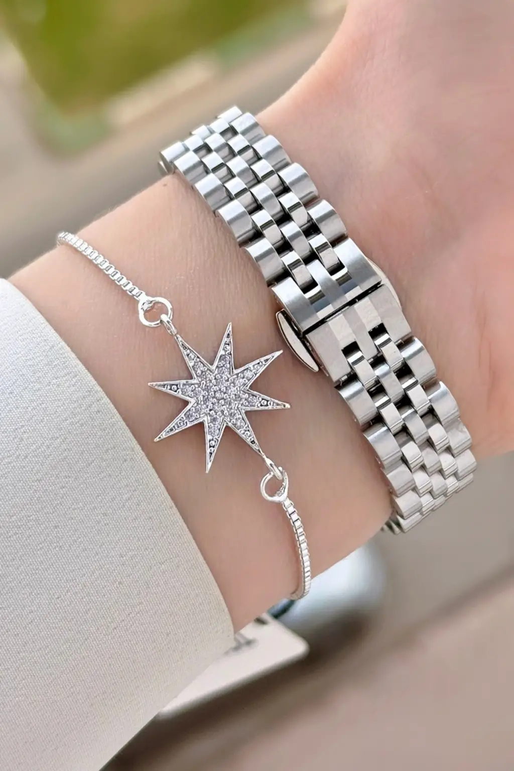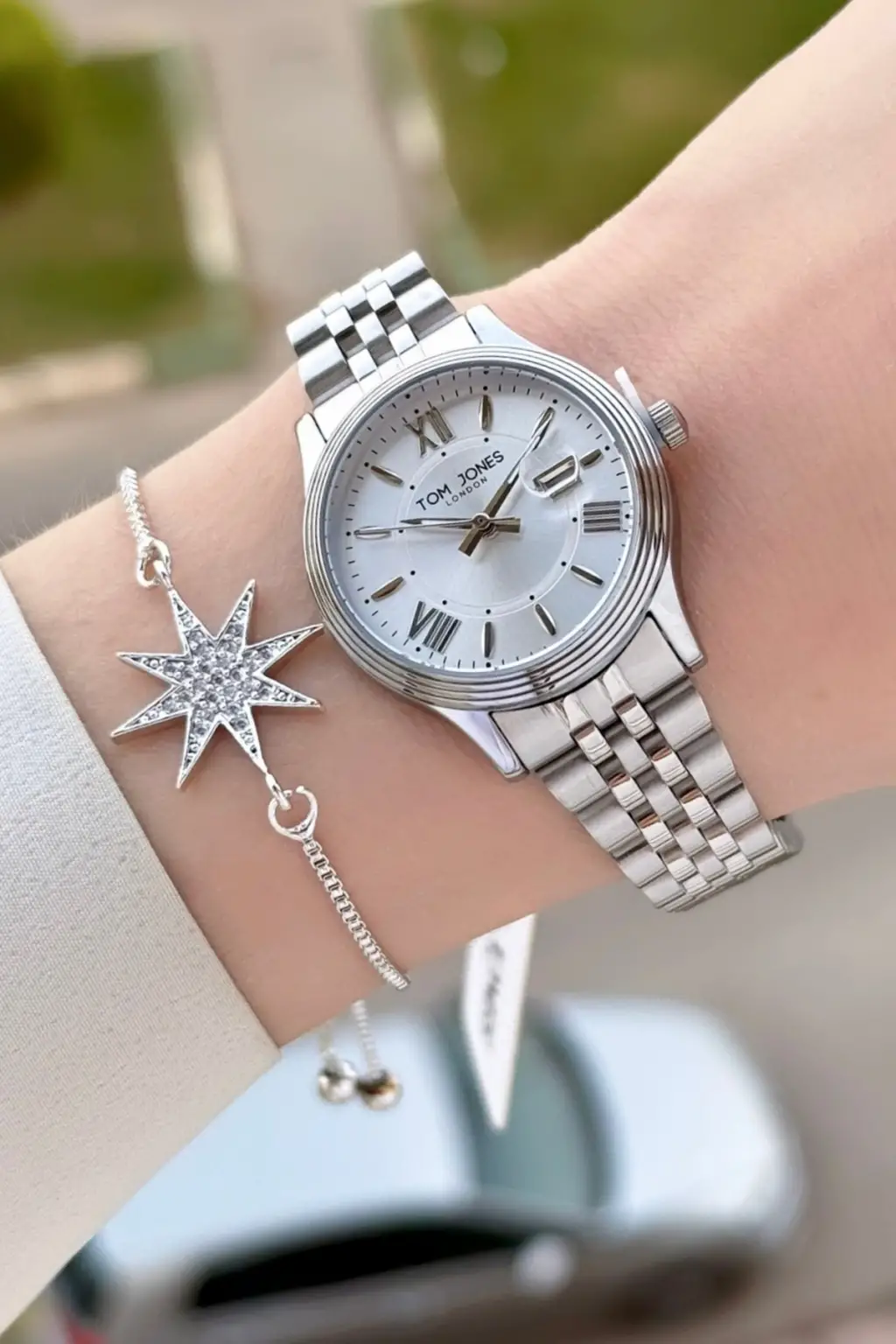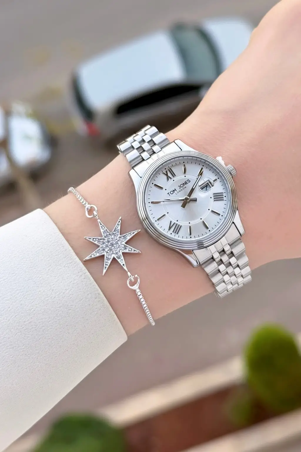 Gümüş Renk 30 mm Kadın Kol Saati ve Bileklik