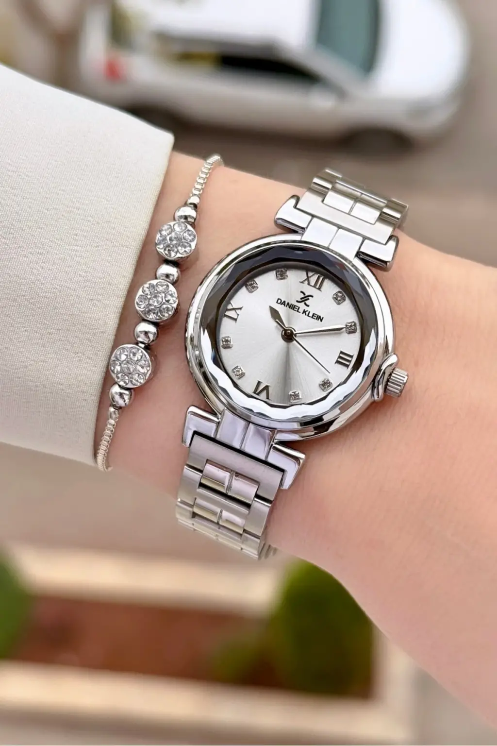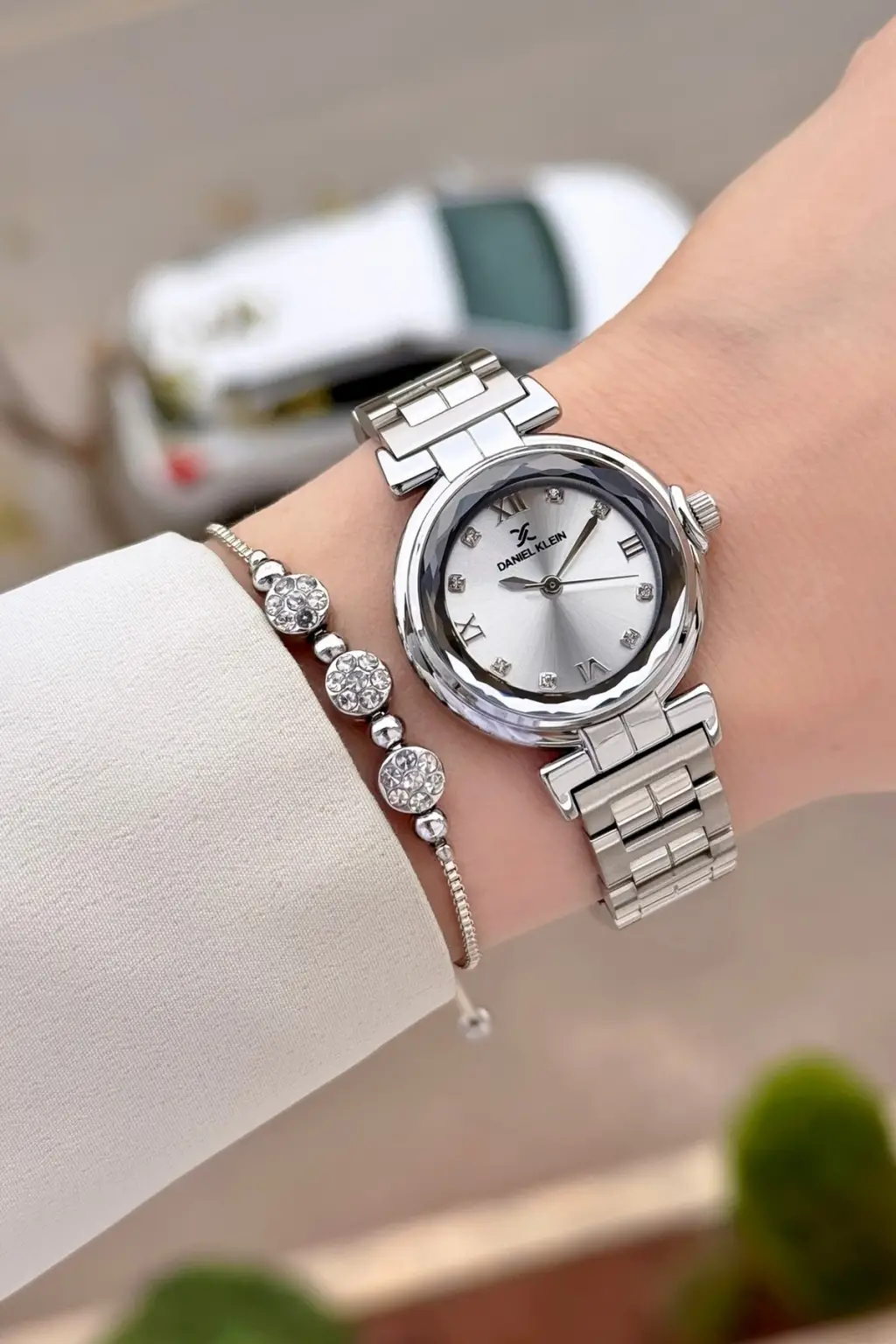 Gümüş Renk 30 Mm Kristal Cam Kadın Kol Saati ve Hediye Bileklik