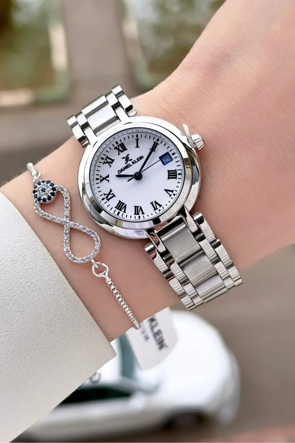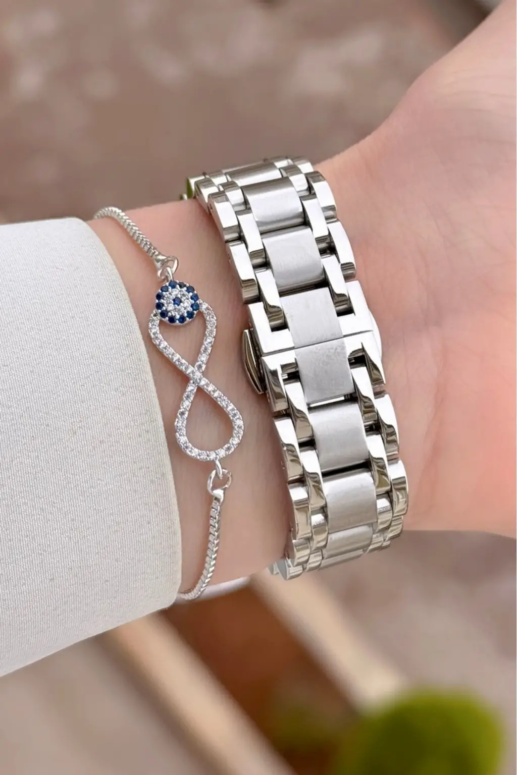 Gümüş Renk 30,5 mm Hediye Paketli Kadın Kol Saati ve Bileklik