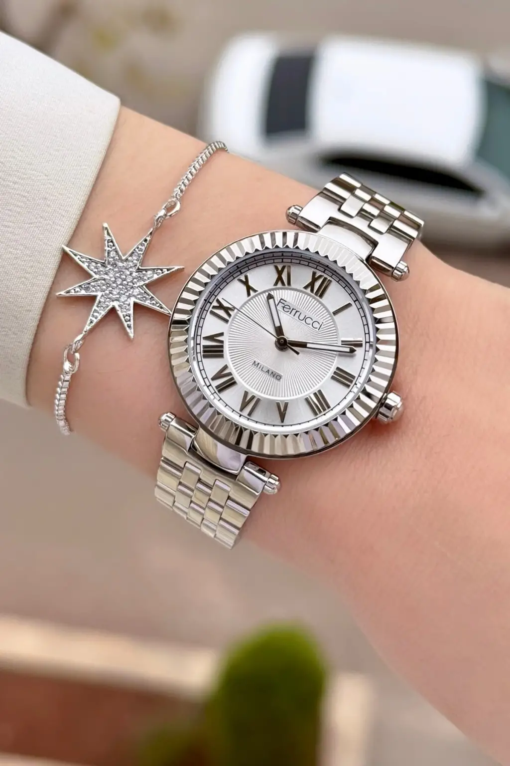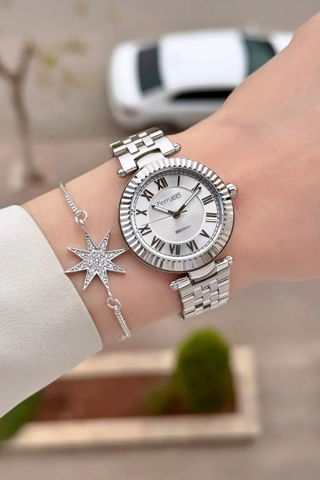 Gümüş Renk 35 Mm Hediye Paketli Kadın Kol Saati ve Bileklik
