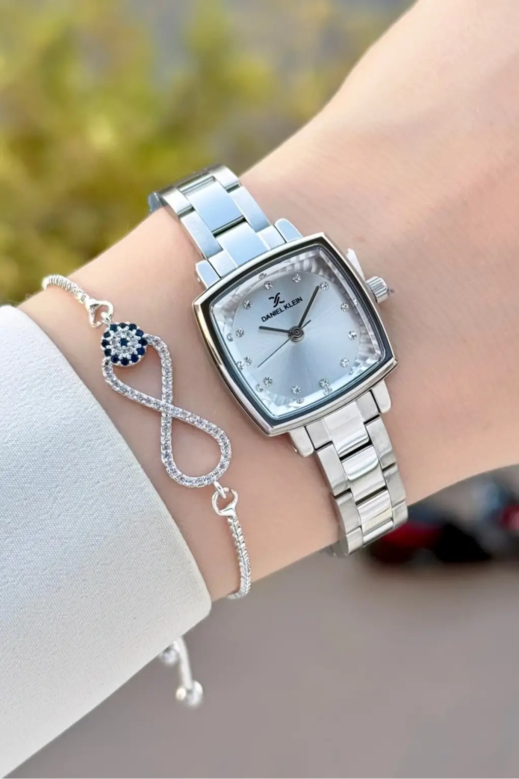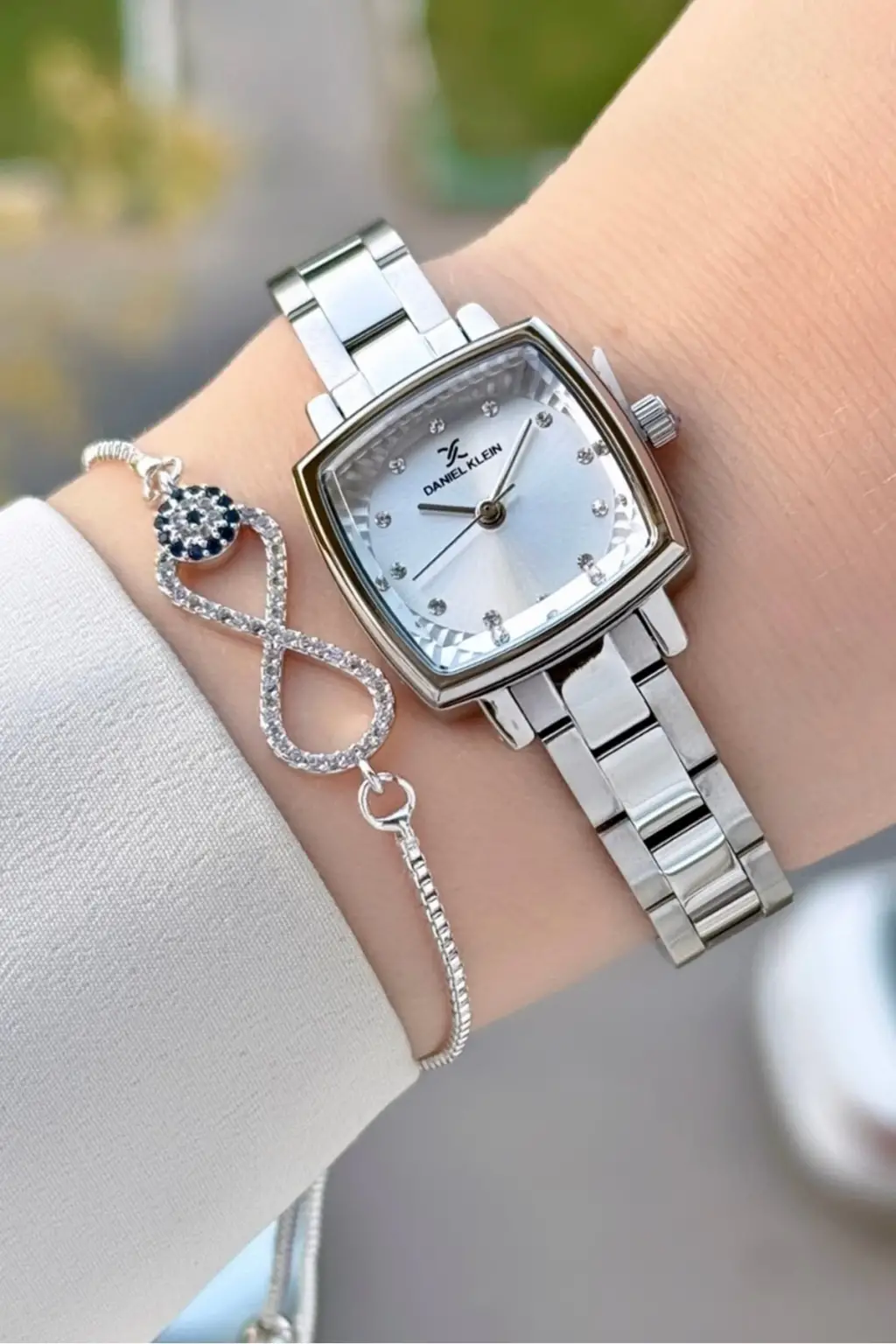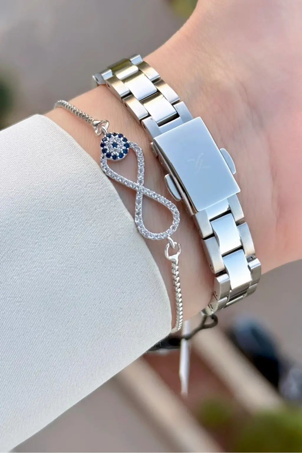Gümüş Renk Kadın Kol Saati Ve Bileklik