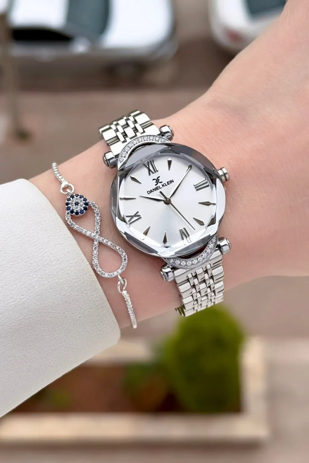Gümüş Renk Kesme Camlı Kadın Kol Saati Ve Bileklik