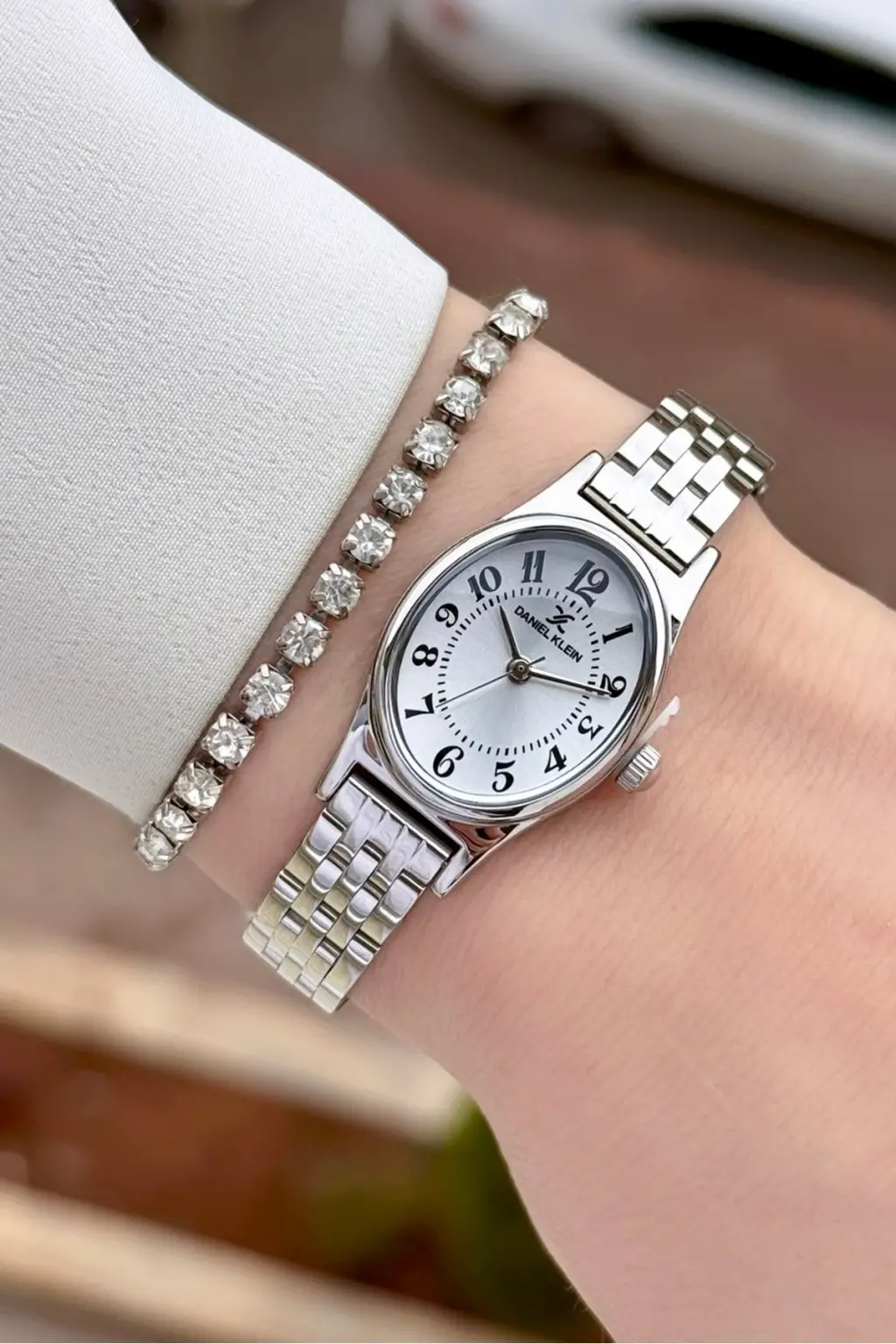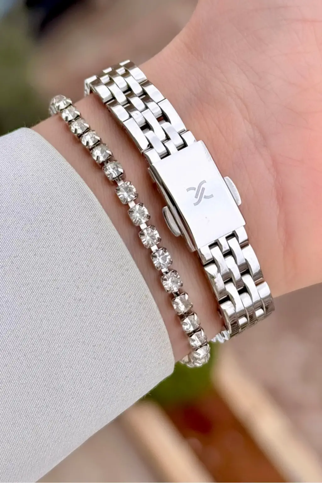 Gümüş Renk Rakamlı Kadın Kol Saati ve Bileklik