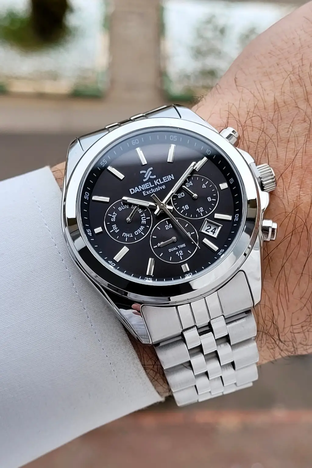 Gümüş Siyah Renk 42 mm Hediye Paketli İç Göstergeleri Aktif Erkek Kol Saati