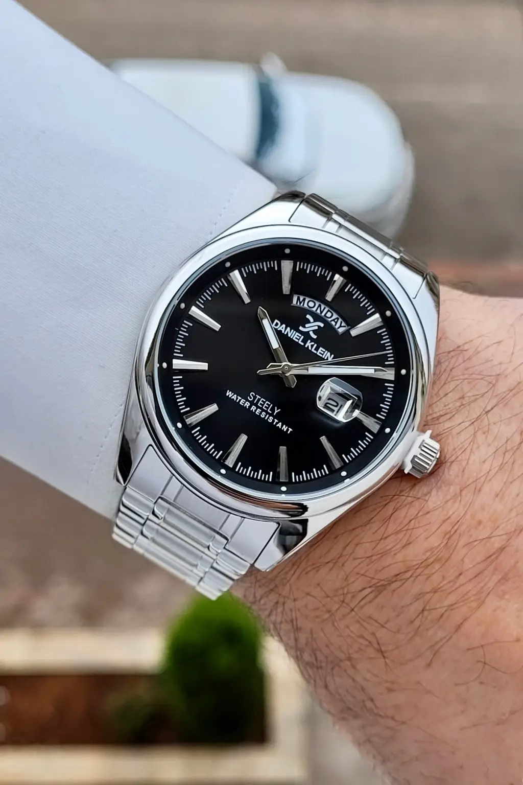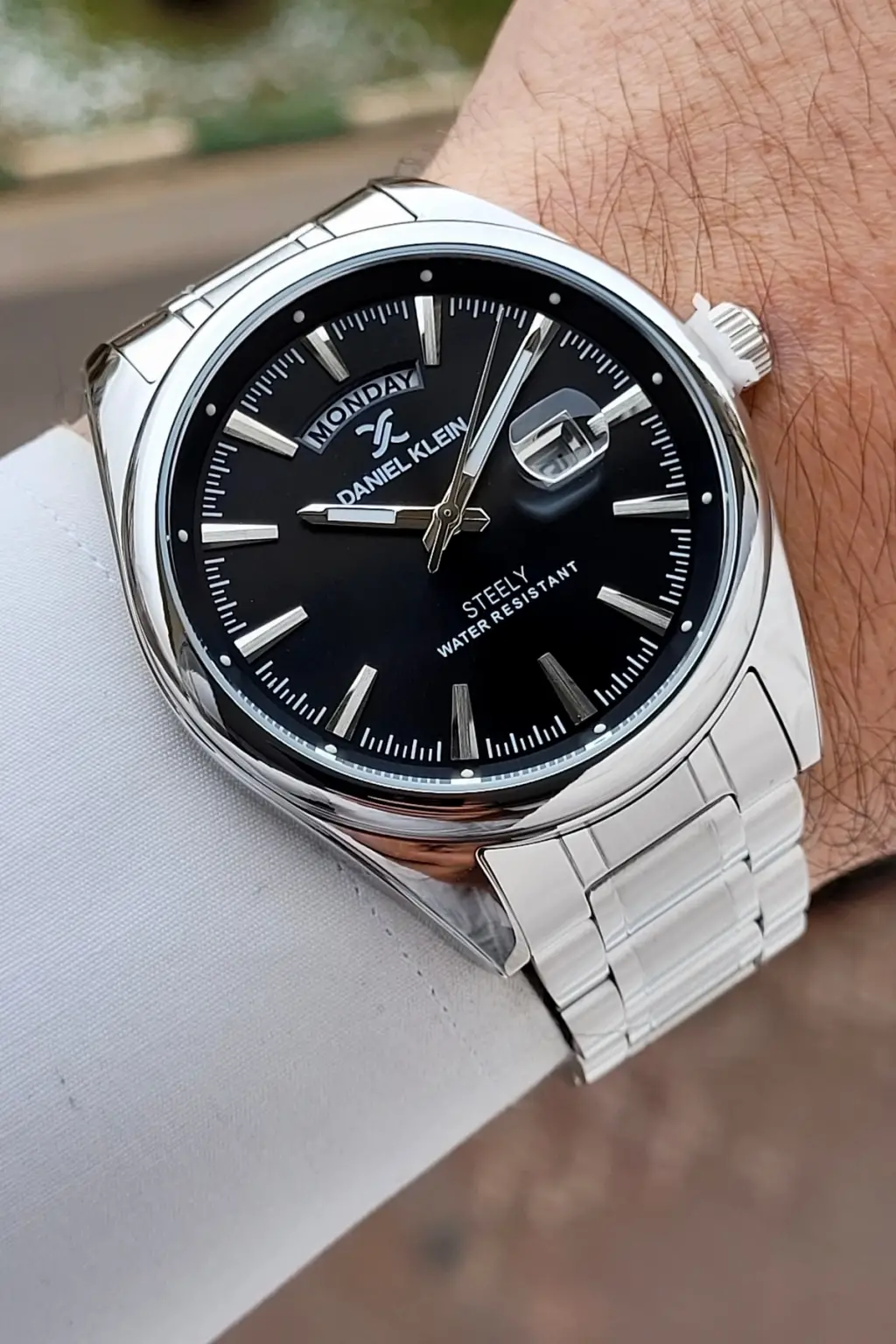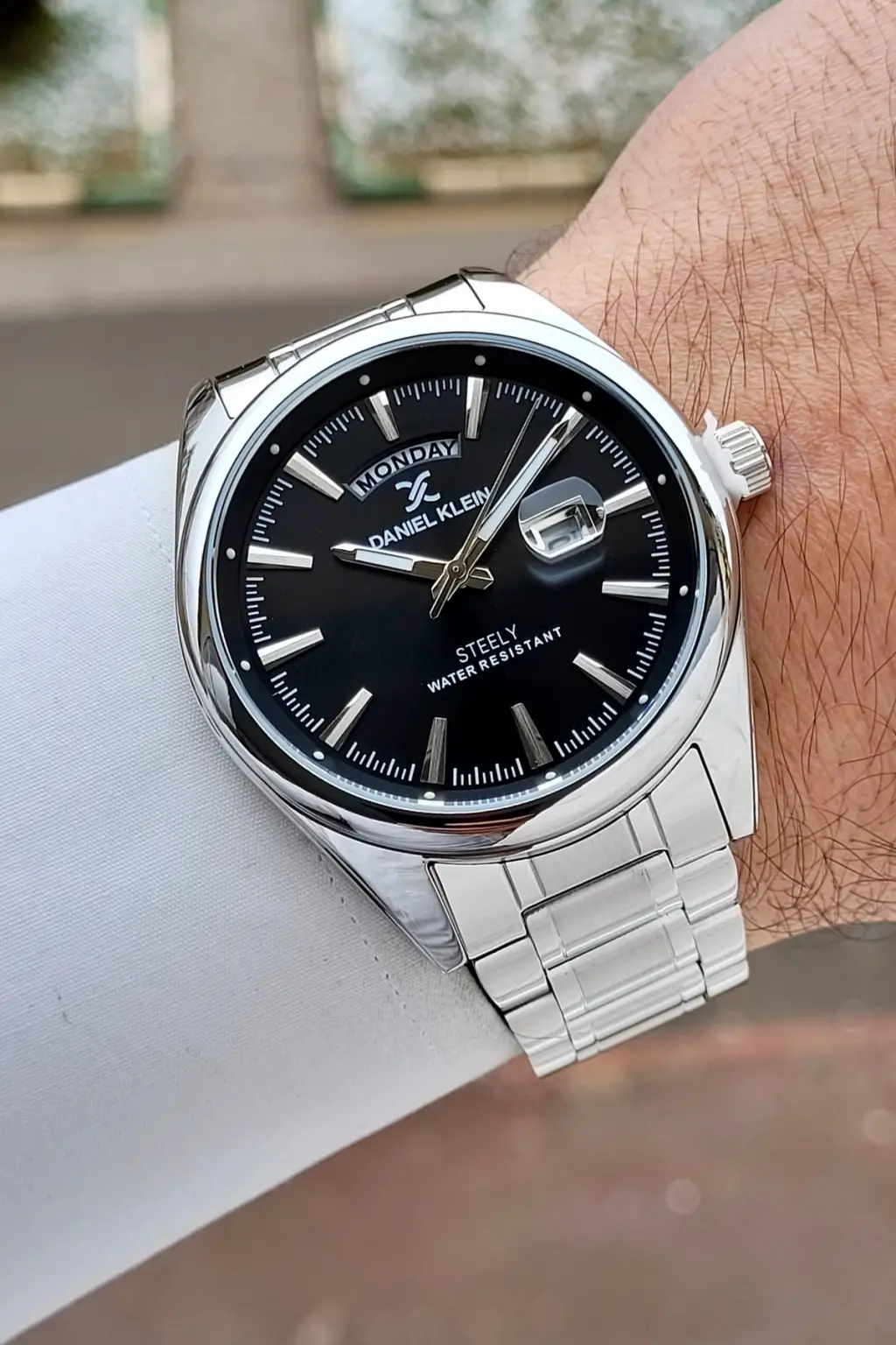 Gümüş Siyah Renk 44 mm Tamamen Paslanmaz Çelik Takvimli Erkek Kol Saati