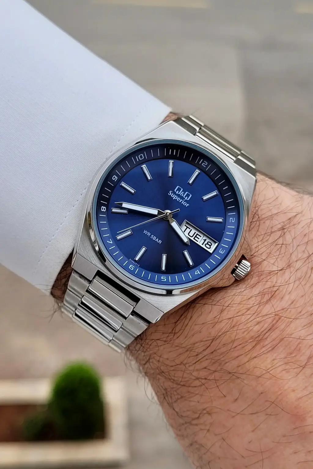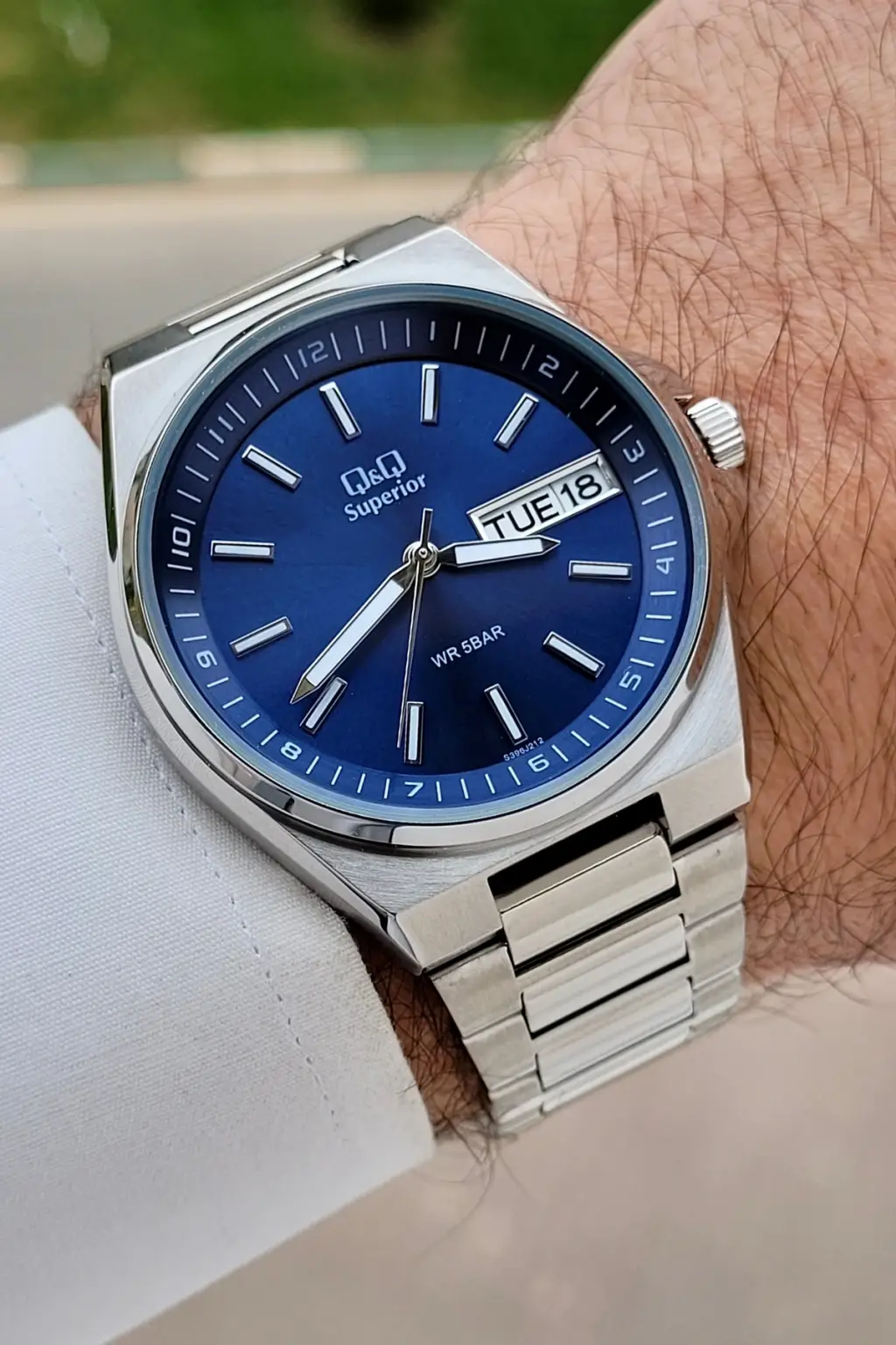 Kadranı Lacivert Kordonu Gümüş Renk 40 mm Paslanmaz Çelik Erkek Kol Saati