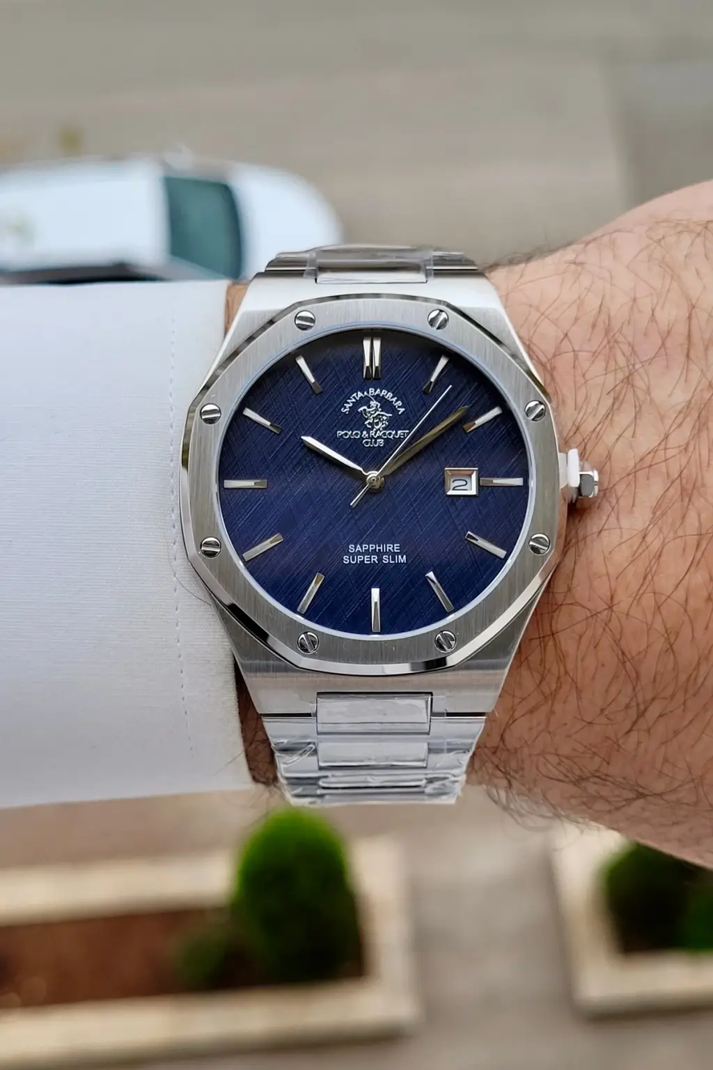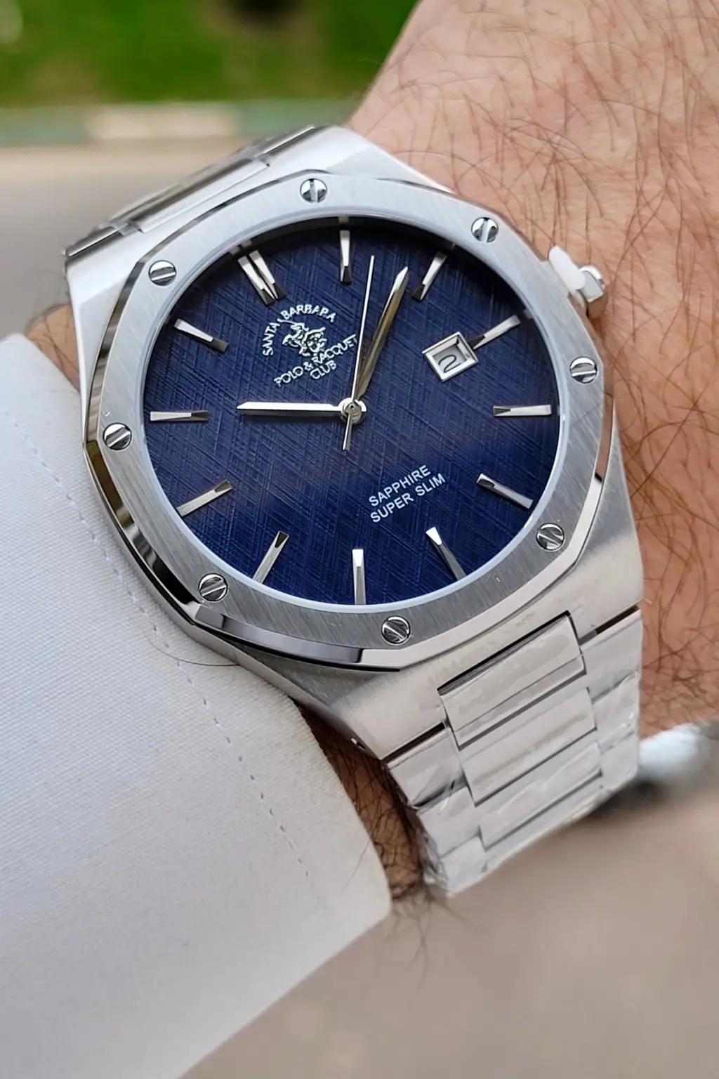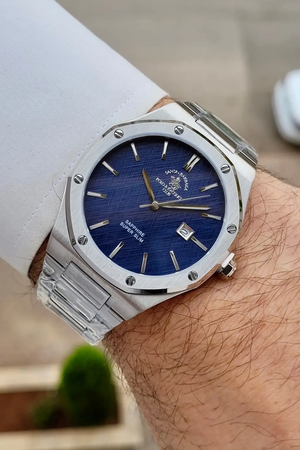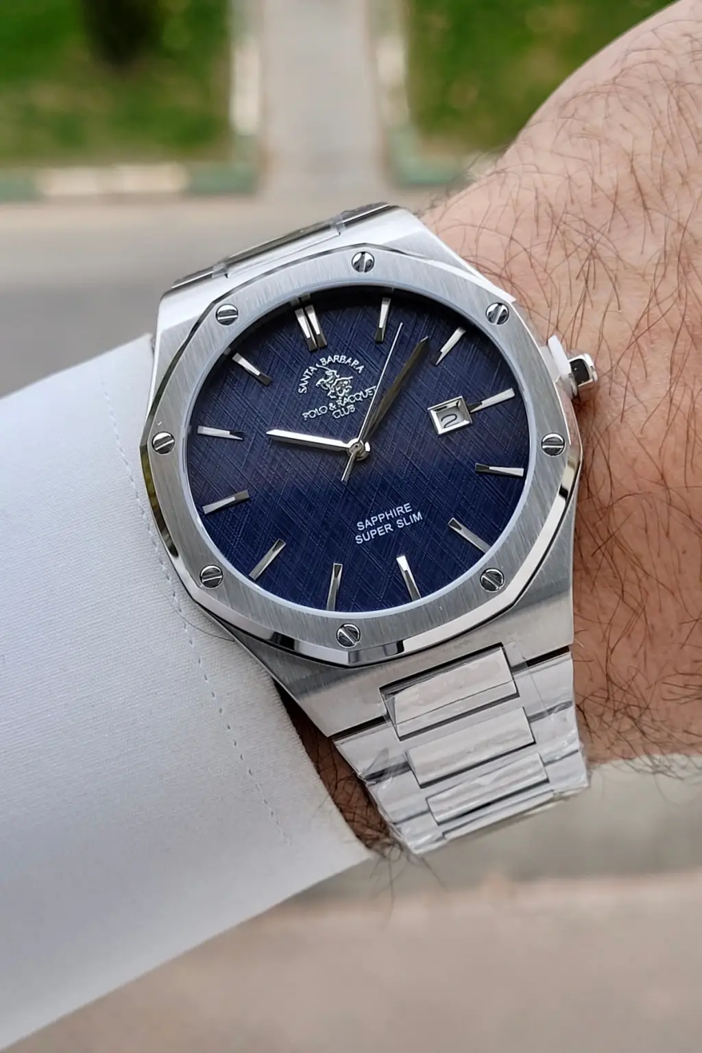 Kadranı Lacivert Kordonu Gümüş Renk 41 mm Renk Atmaz Oksitlenmez Çelik Erkek Kol Saati