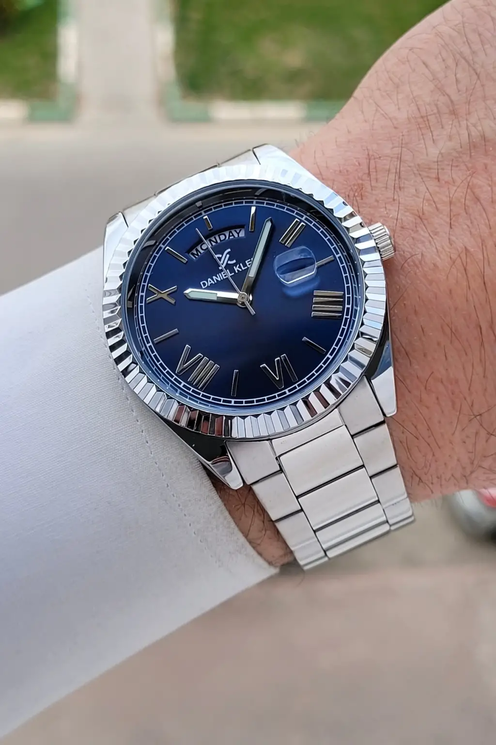 Kadranı Lacivert Kordonu Gümüş Renk 42,5 Mm 5 ATM Erkek Kol Saati