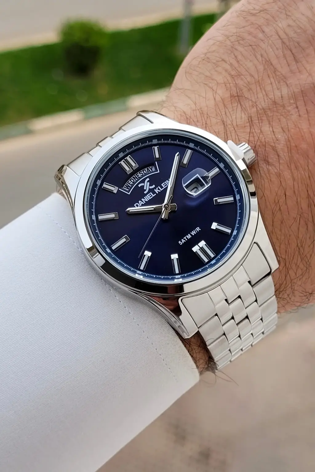 Kadranı Lacivert Kordonu Gümüş Renk 43 mm Erkek Kol Saati