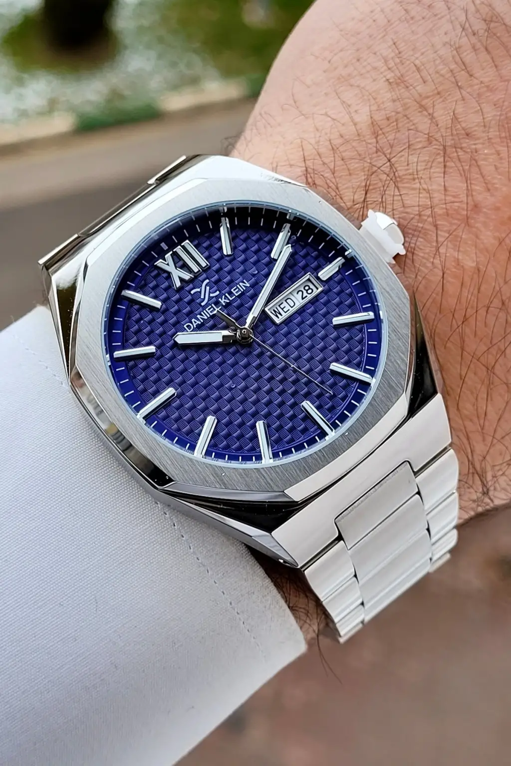 Kadranı Lacivert Kordonu Gümüş Renk 43 mm Erkek Kol Saati