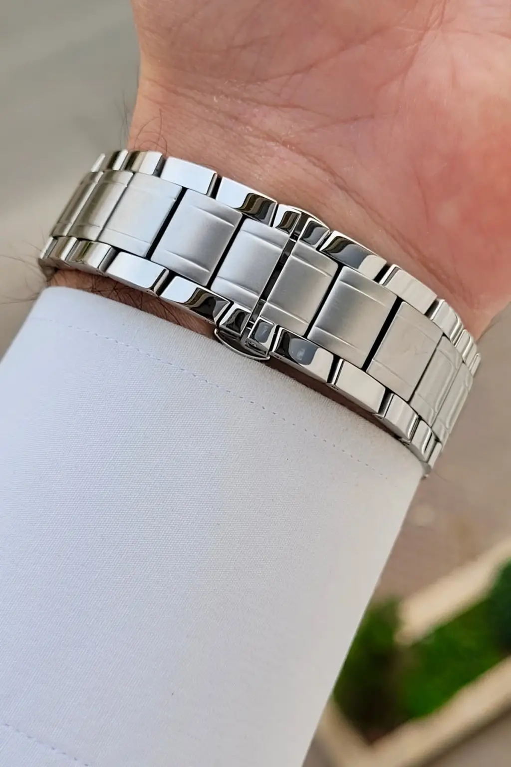 Kadranı Lacivert Kordonu Gümüş Renk 44 Mm Göstergeleri Aktif Erkek Kol Saati