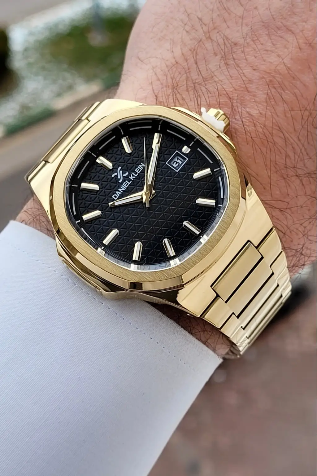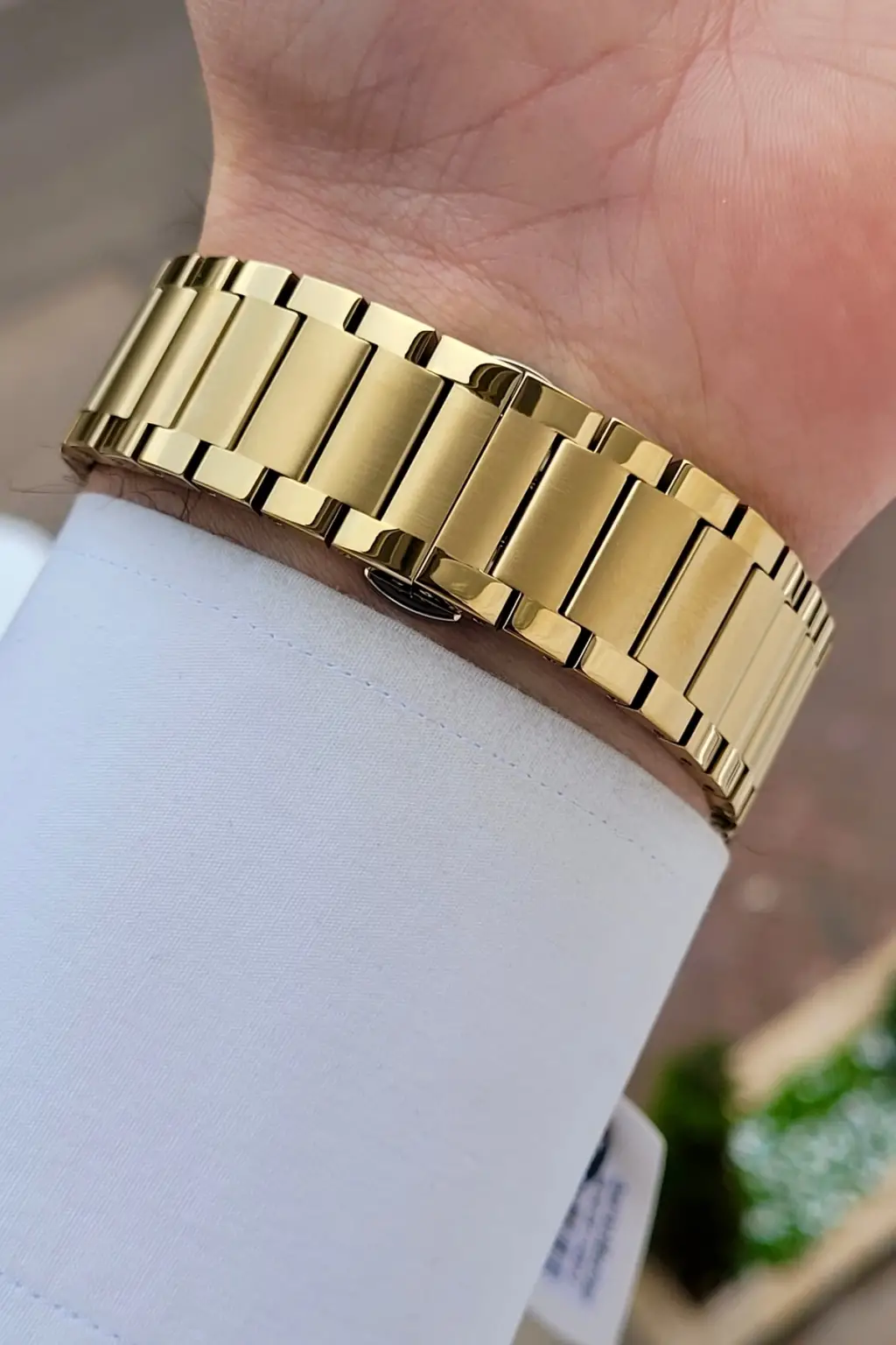 Kadranı Siyah Kordonu Gold Renk Hediye Paketli 41 mm Erkek Kol Saati