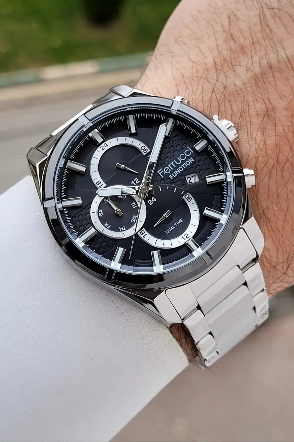Kadranı Siyah Kordonu Gümüş Renk 43 Mm İç Göstergeleri Aktif Erkek Kol Saati