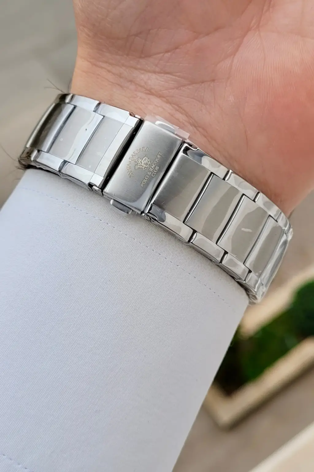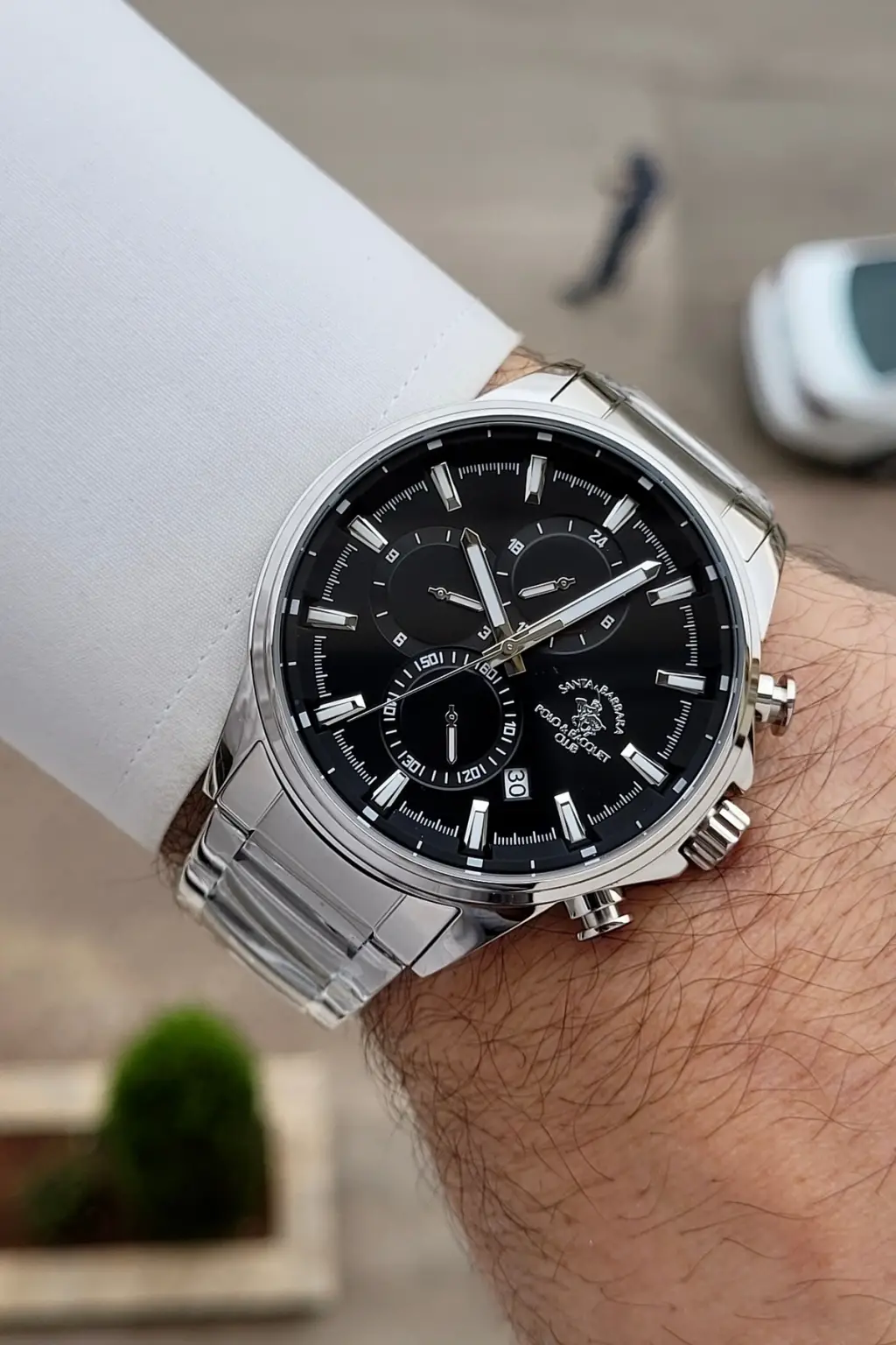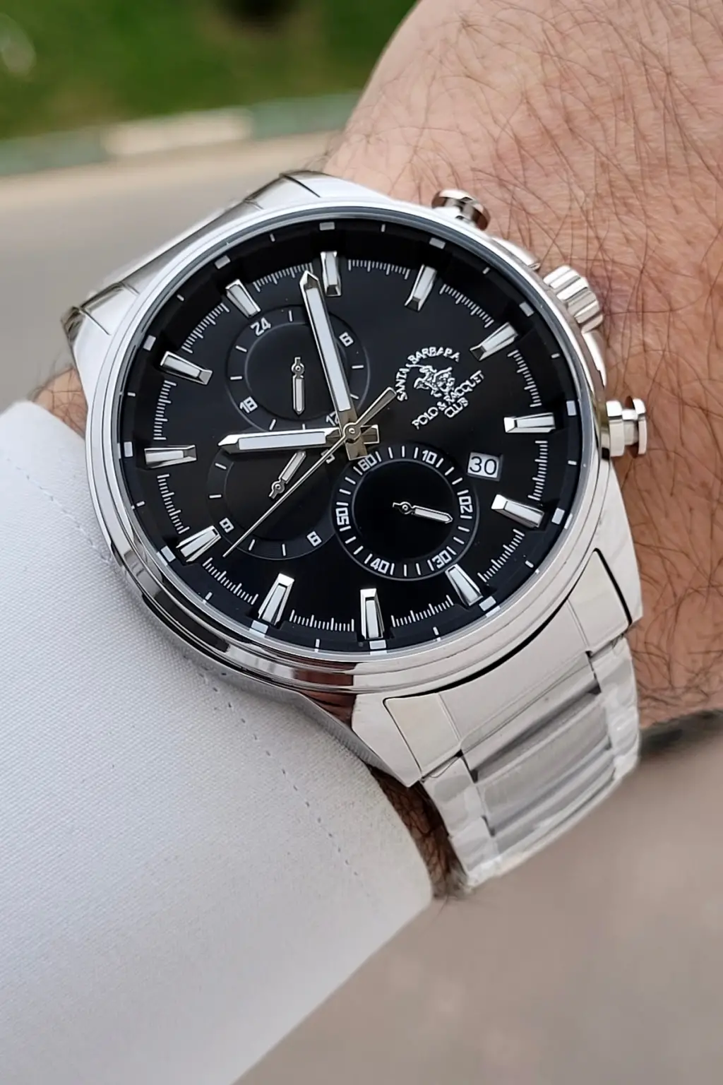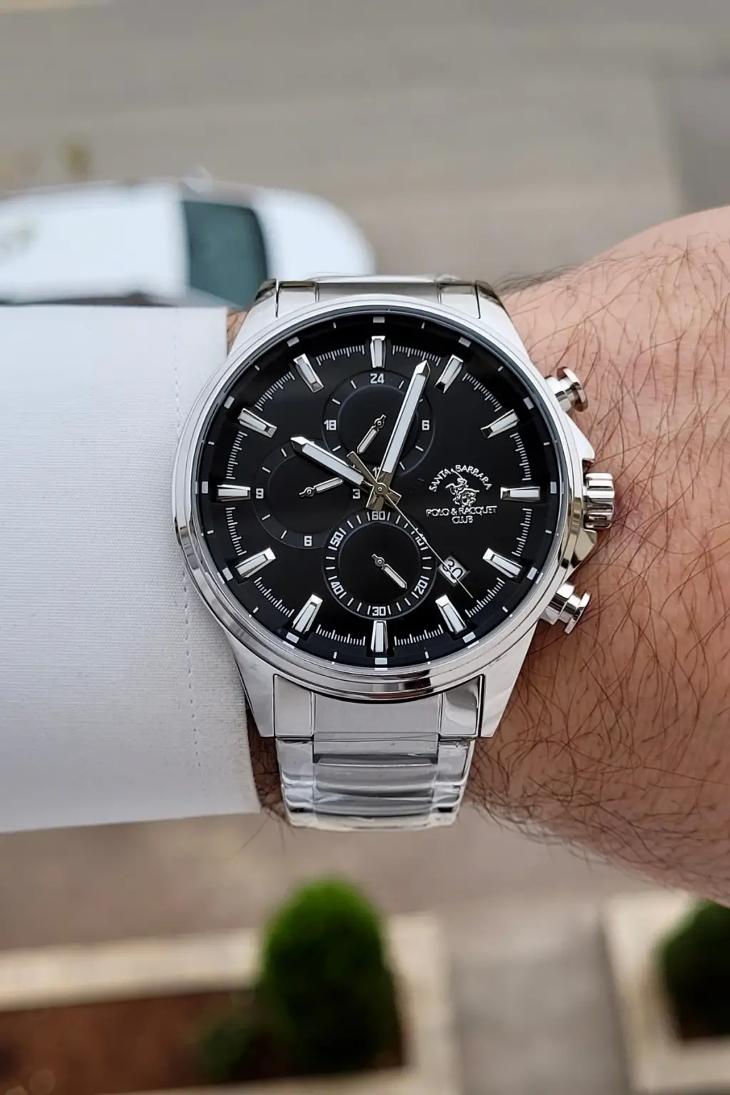 Kadranı Siyah Kordonu Gümüş Renk 44 mm Renk Atmaz Oksitlenmez Çelik Erkek Kol Saati