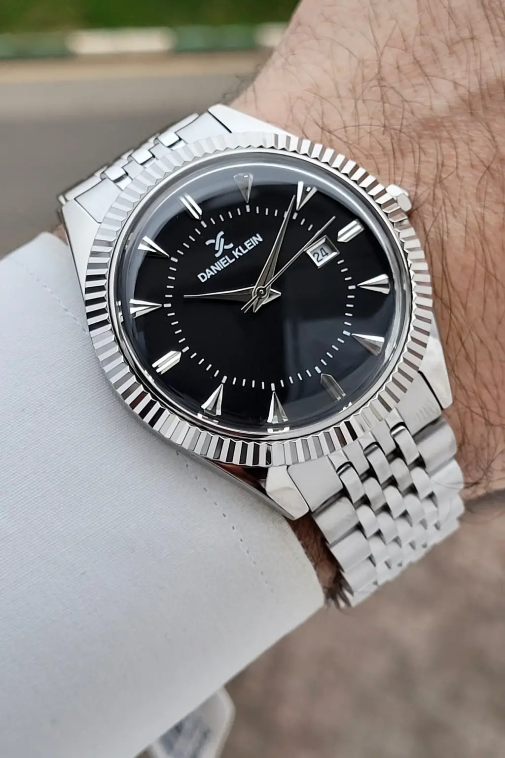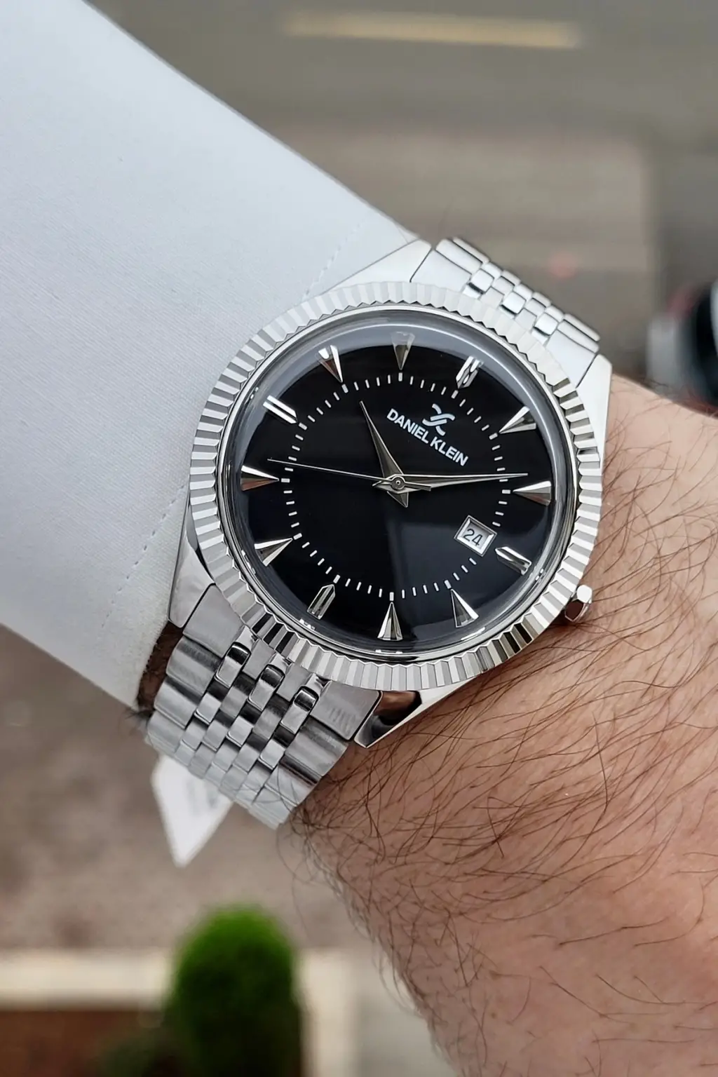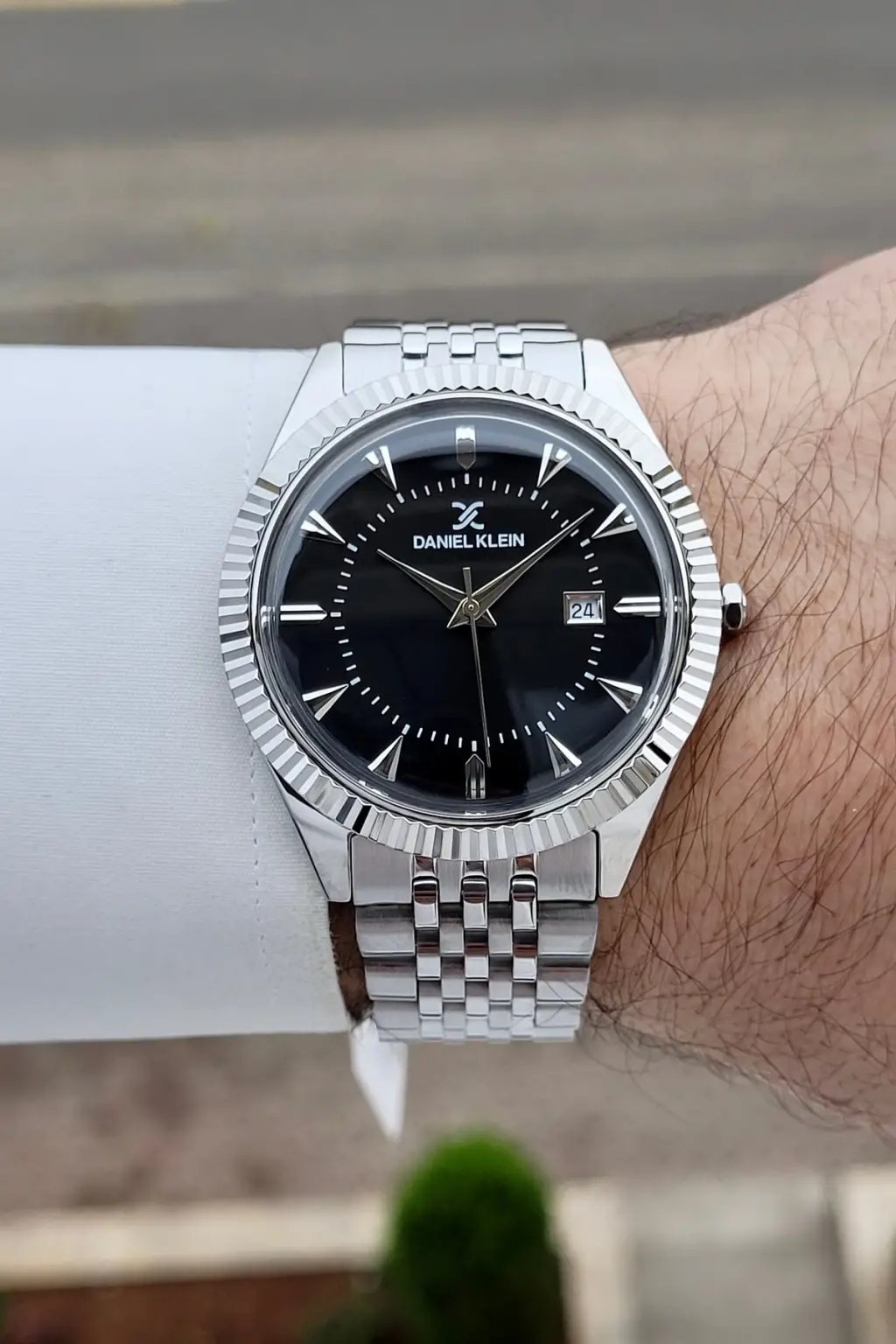 Kadranı Siyah Kordonu Gümüş Renk Hediye Paketli 41 mm Erkek Kol Saati