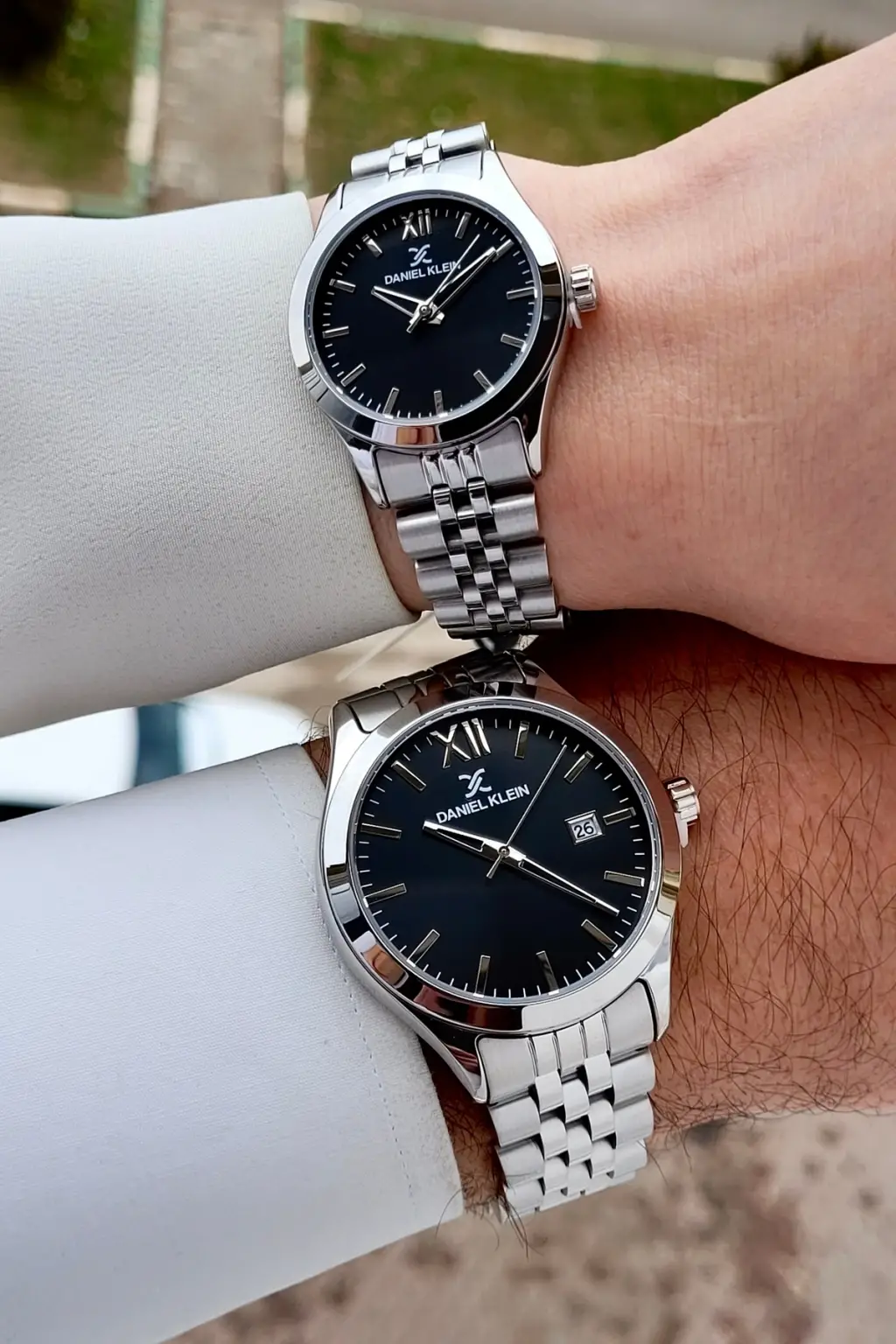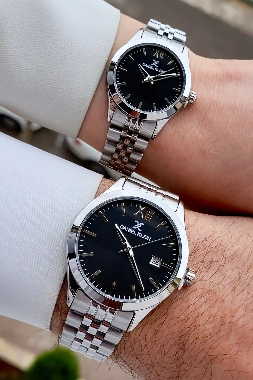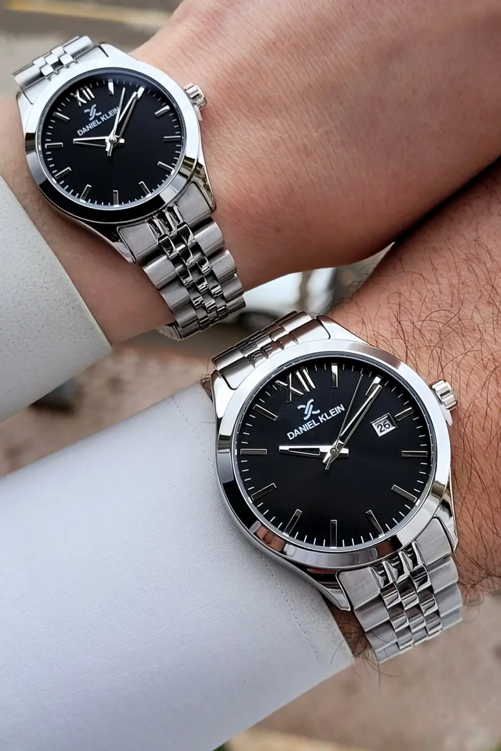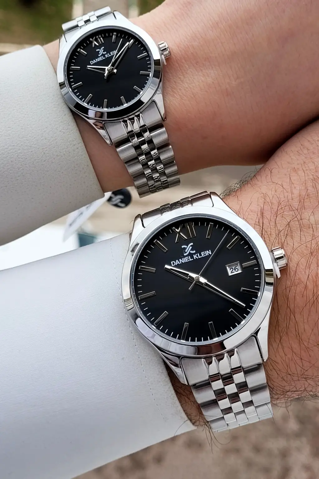 Kadranı Siyah Kordonu Gümüş Renk Hediye Paketli Sevgili Çift Kol Saati STISTE32