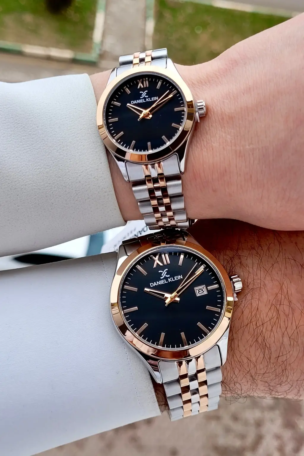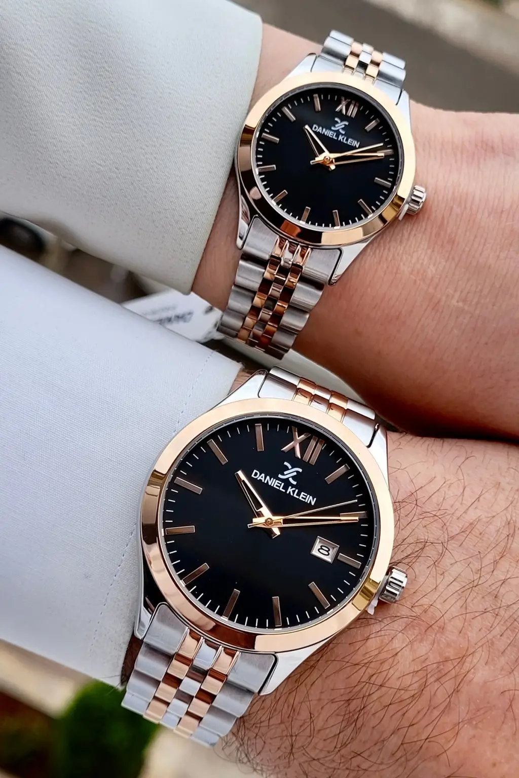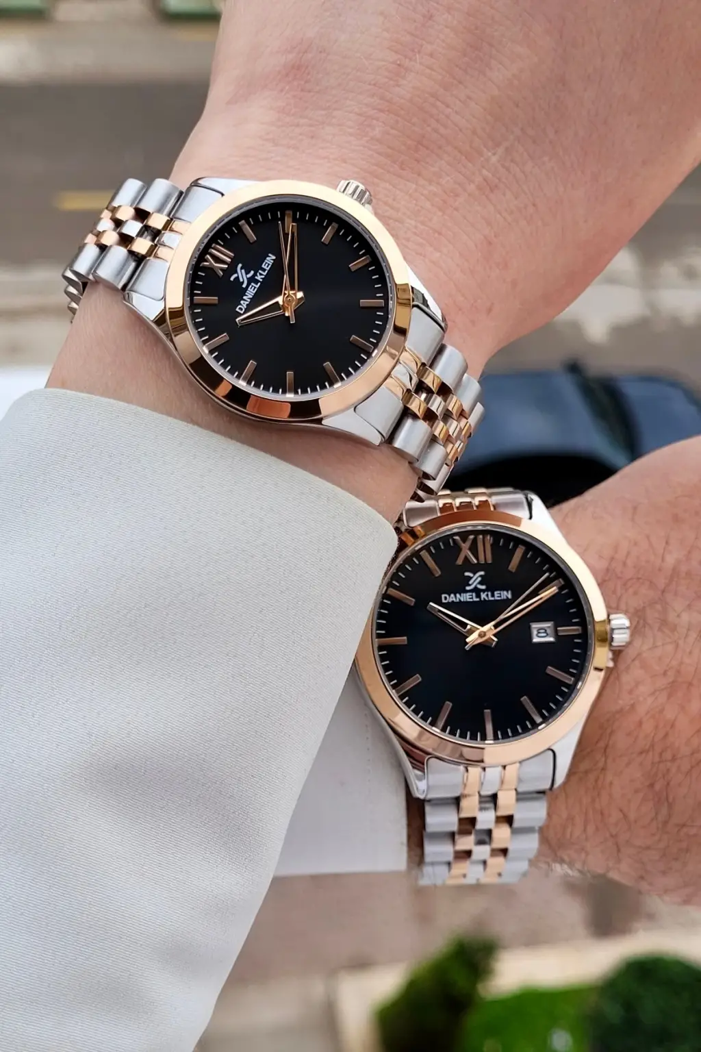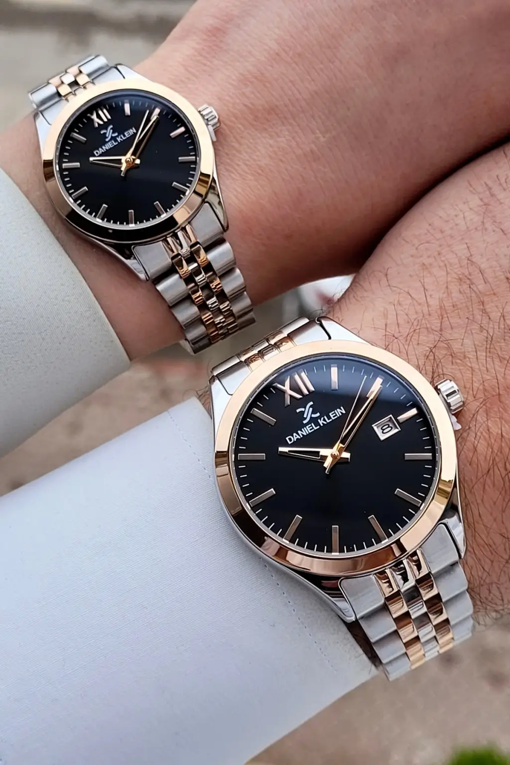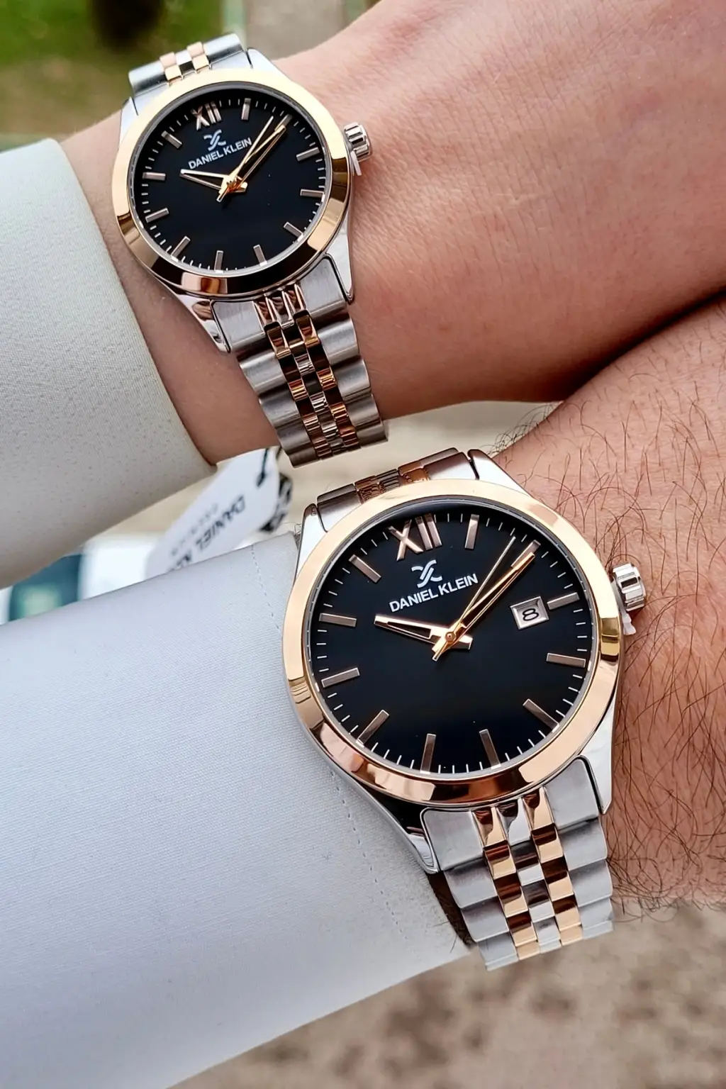 Kadranı Siyah Kordonu Rose Gümüş Renk Hediye Paketli Sevgili Çift Kol Saati STISTE35