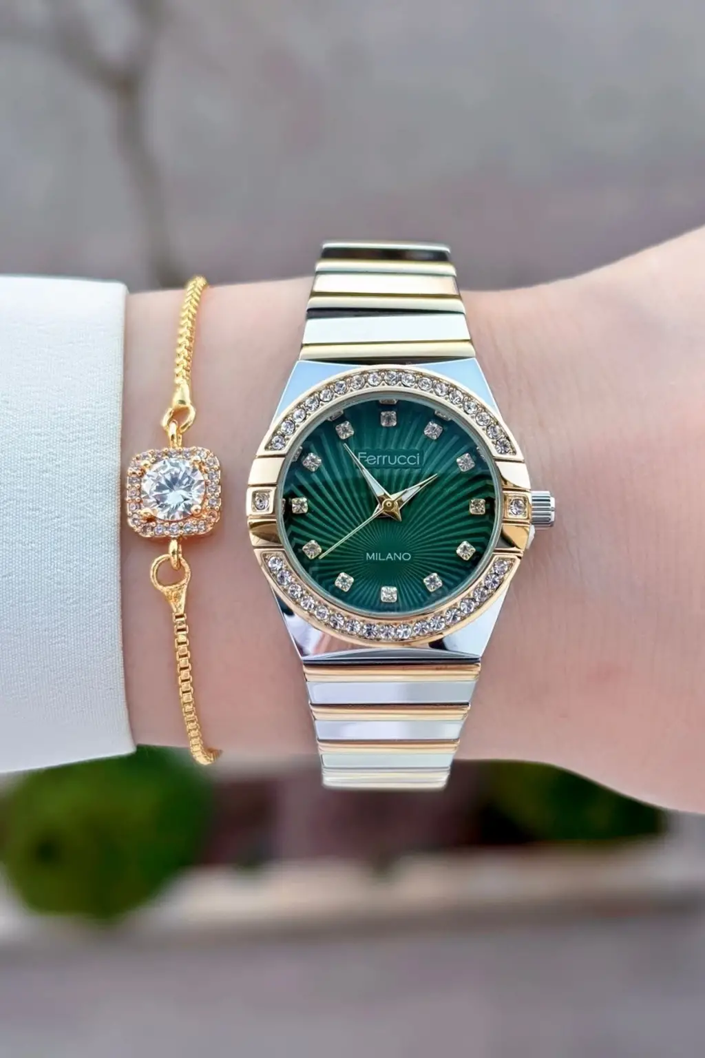 Kadranı Yeşil Gold Gümüş Renk 28 Mm Kadın Kol Saati Ve Bileklik
