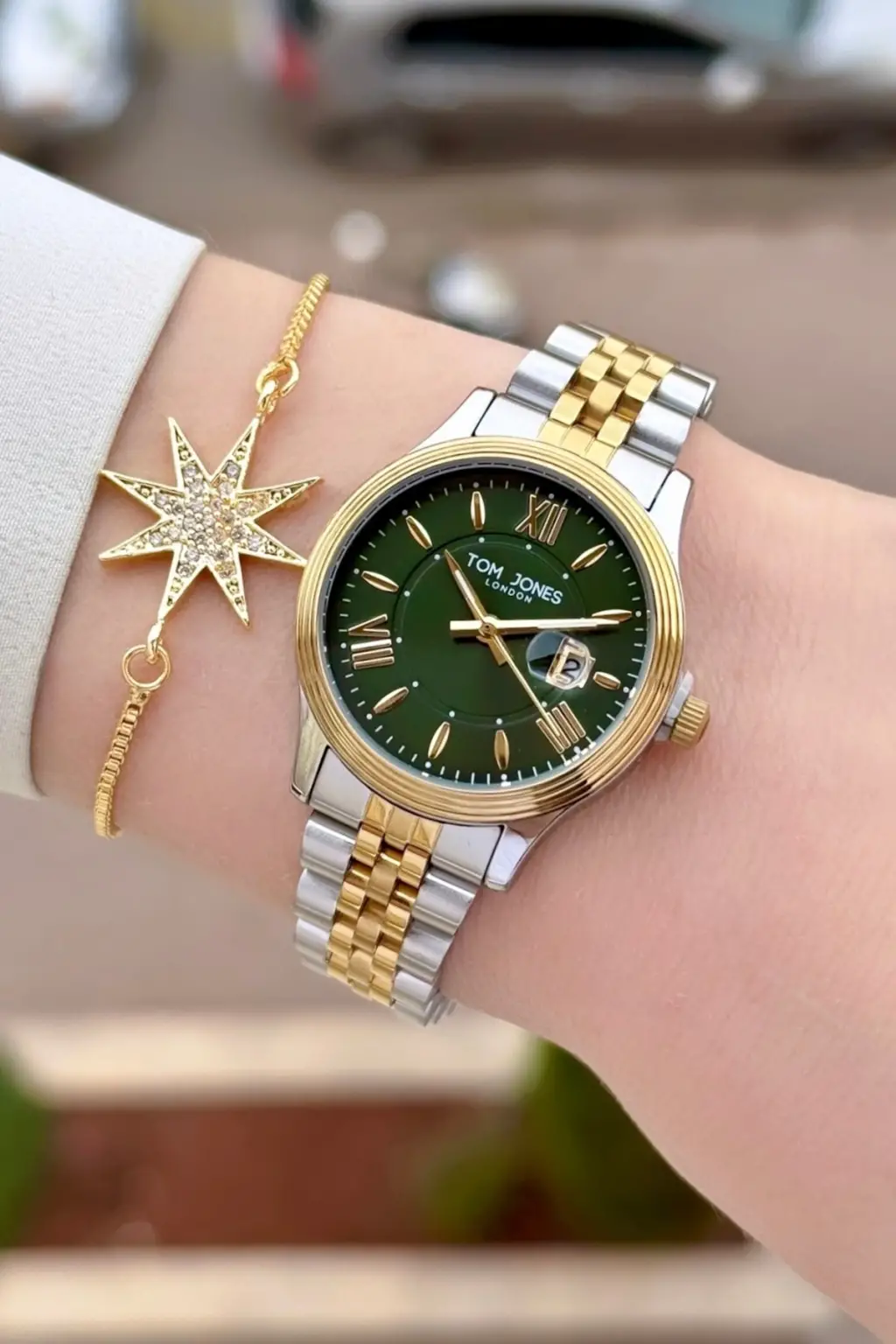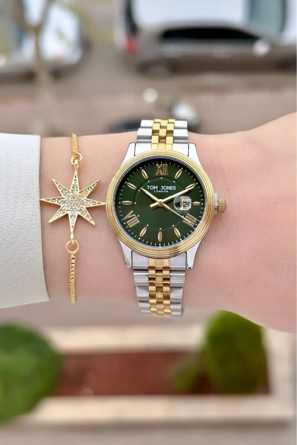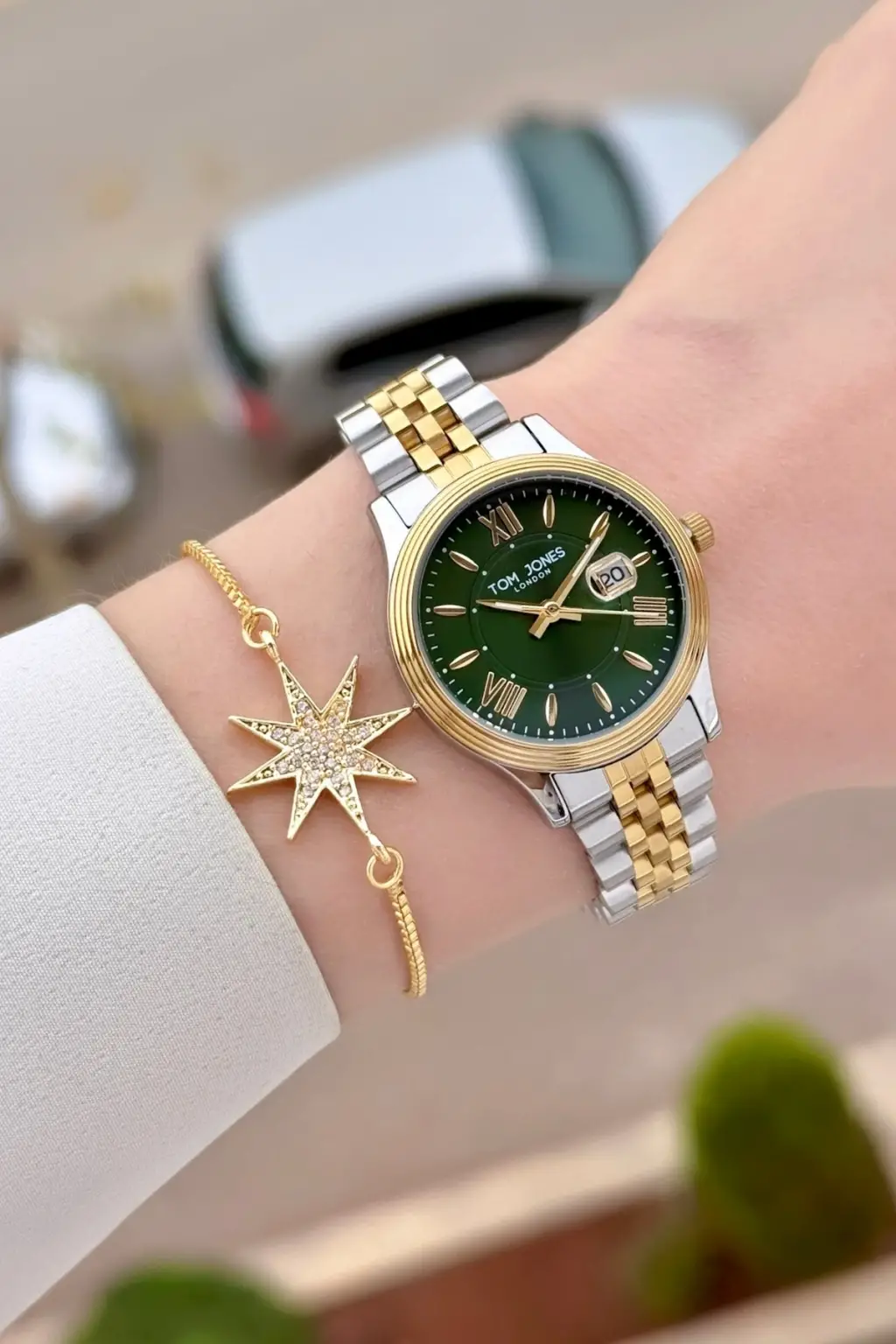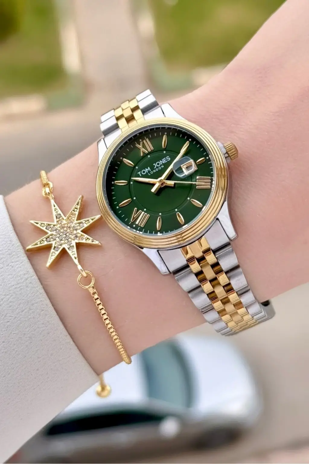 Kadranı Yeşil Gold Gümüş Renk 30 mm Kadın Kol Saati ve Bileklik