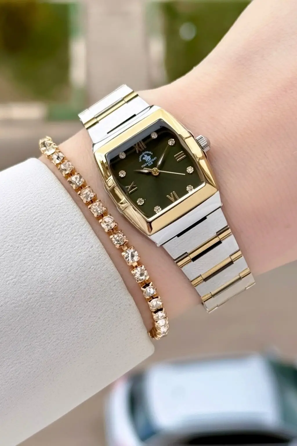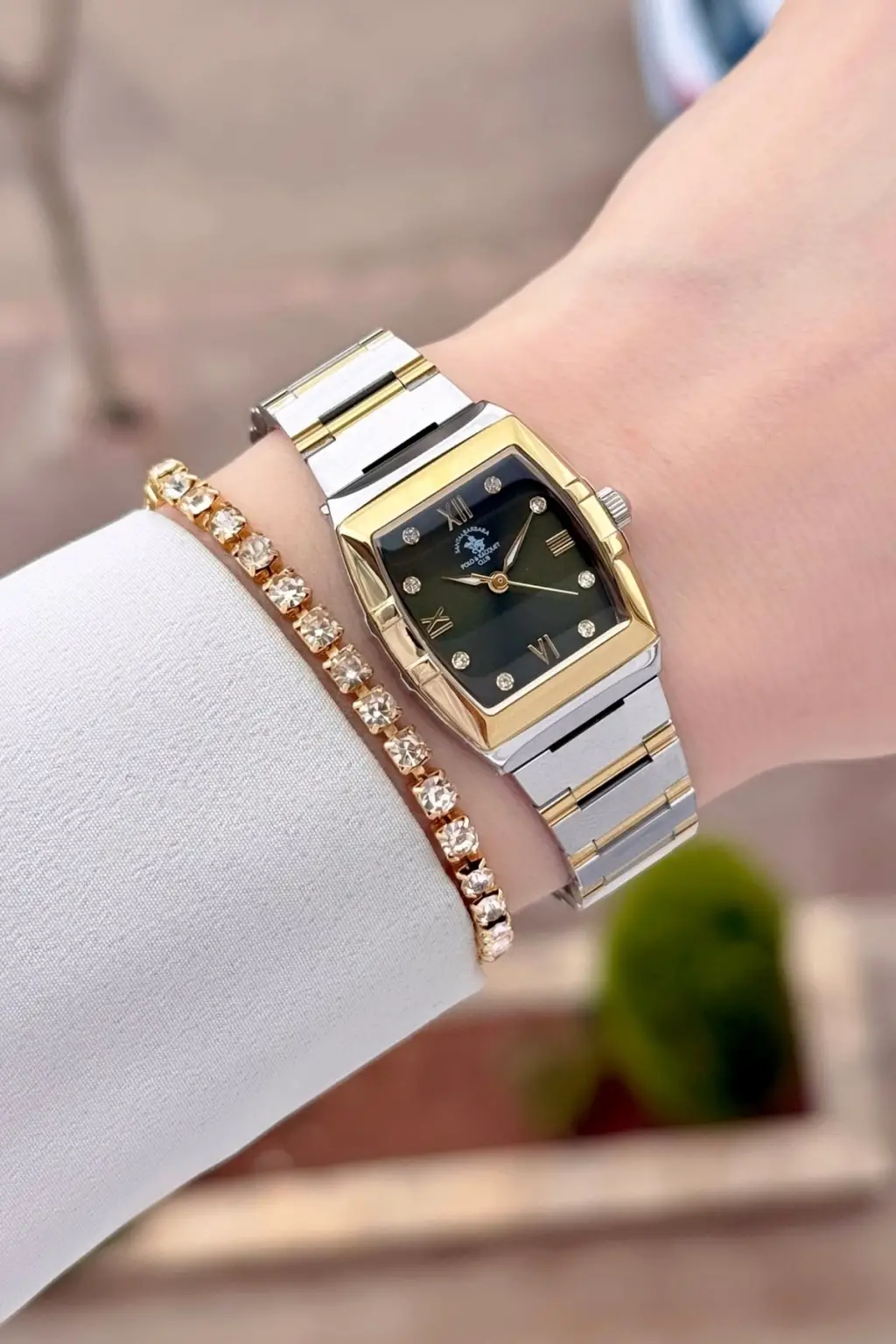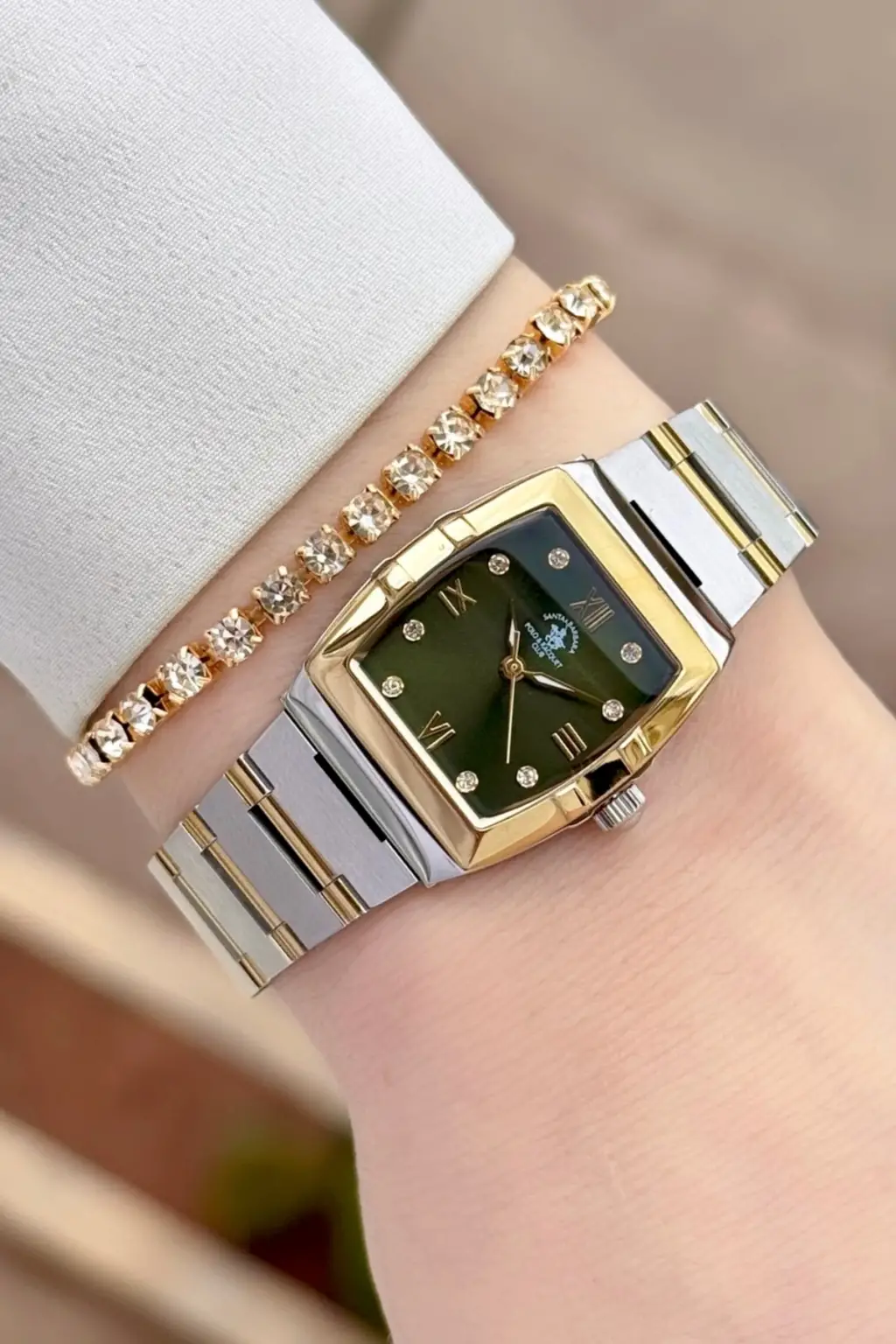 Santa Barbara Polo & Racquet Club Kadranı Yeşil Kodronu Gold Gümüş Renk 23,5 Mm Kadın Kol Saati ve Bileklik