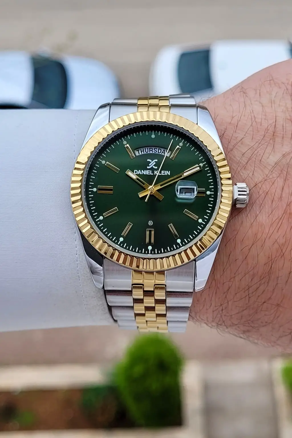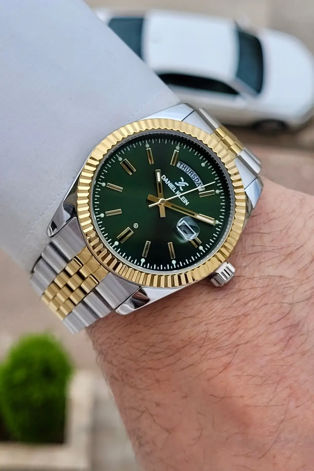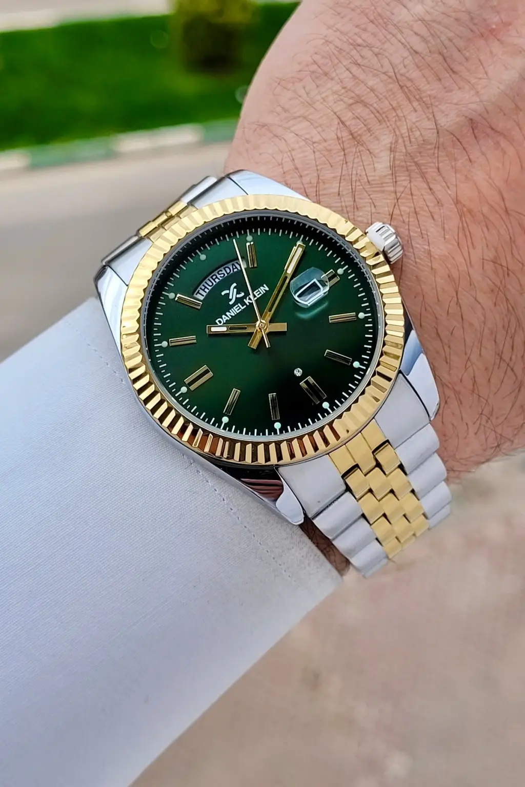 Kadranı Yeşil Kordonu Gold Gümüş Renk 42 Mm Erkek Kol Saati