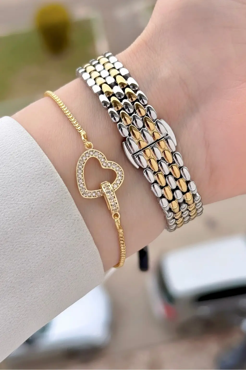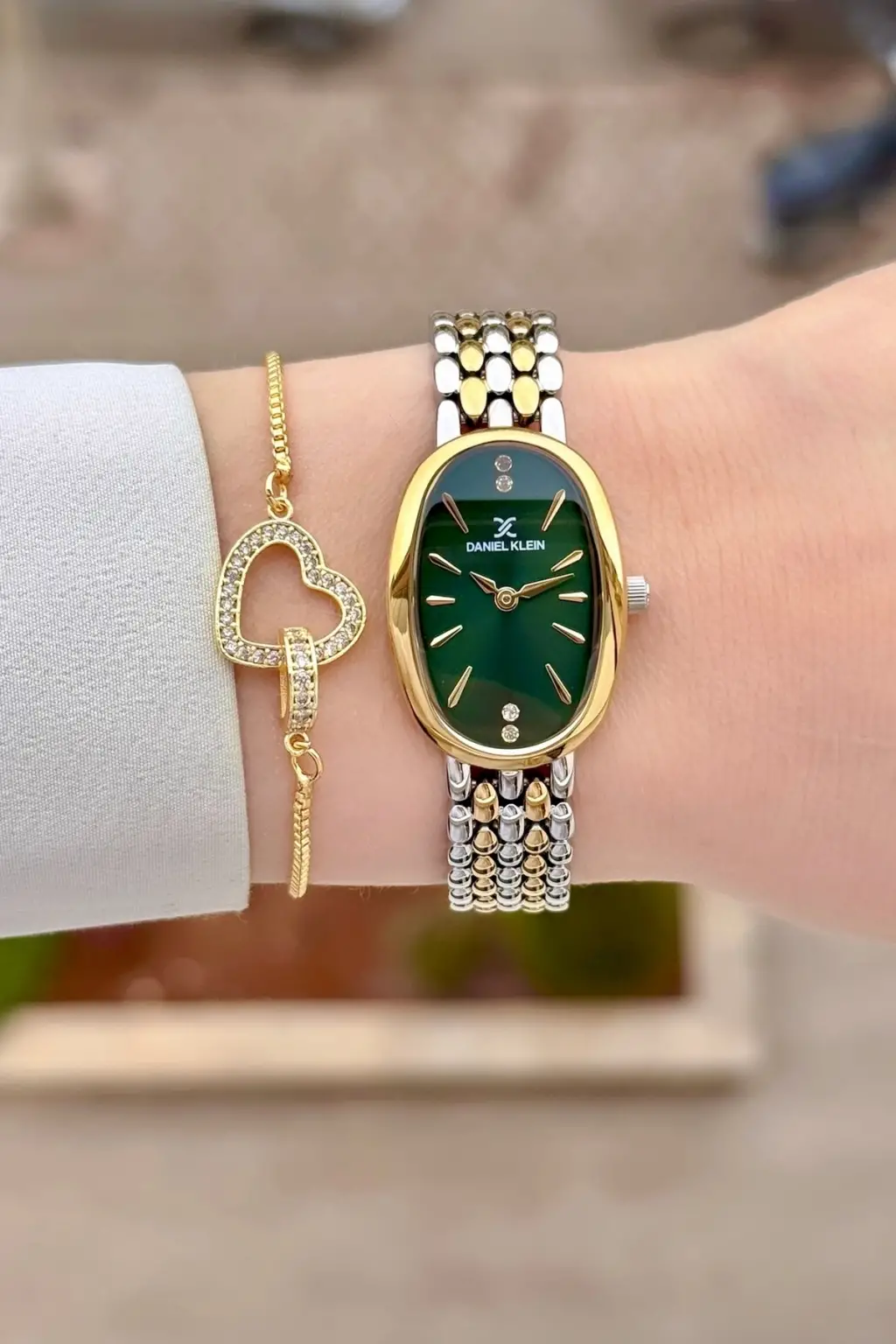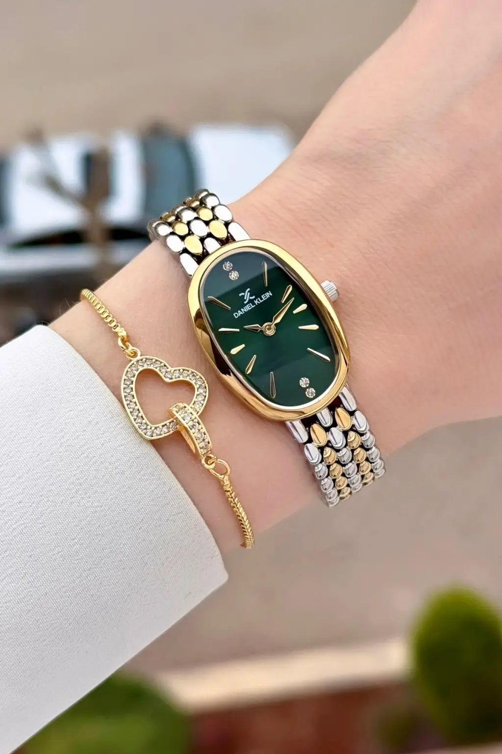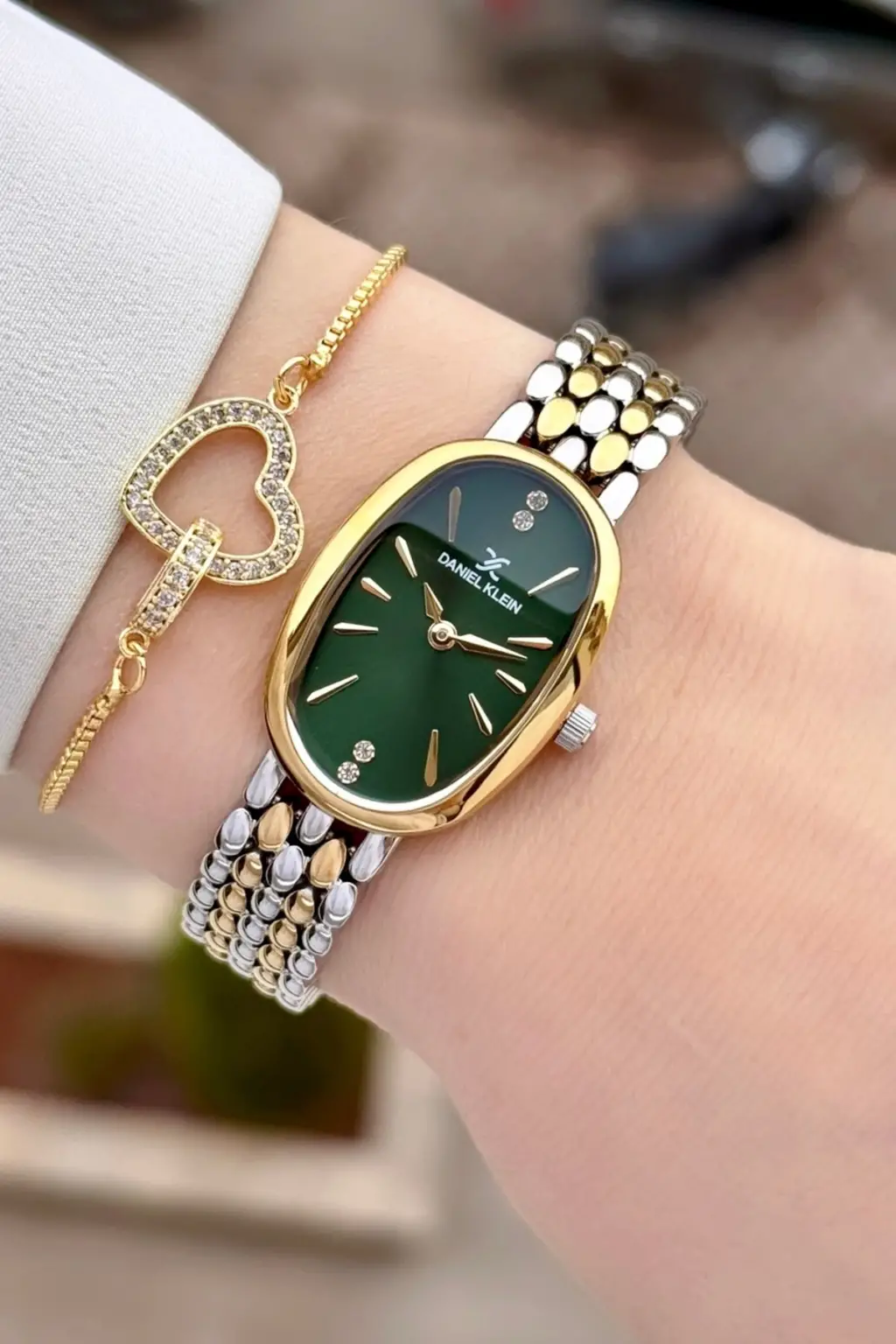 Kadranı Yeşil Kordonu Gold Gümüş Renk Kadın Kol Saati ve Bileklik