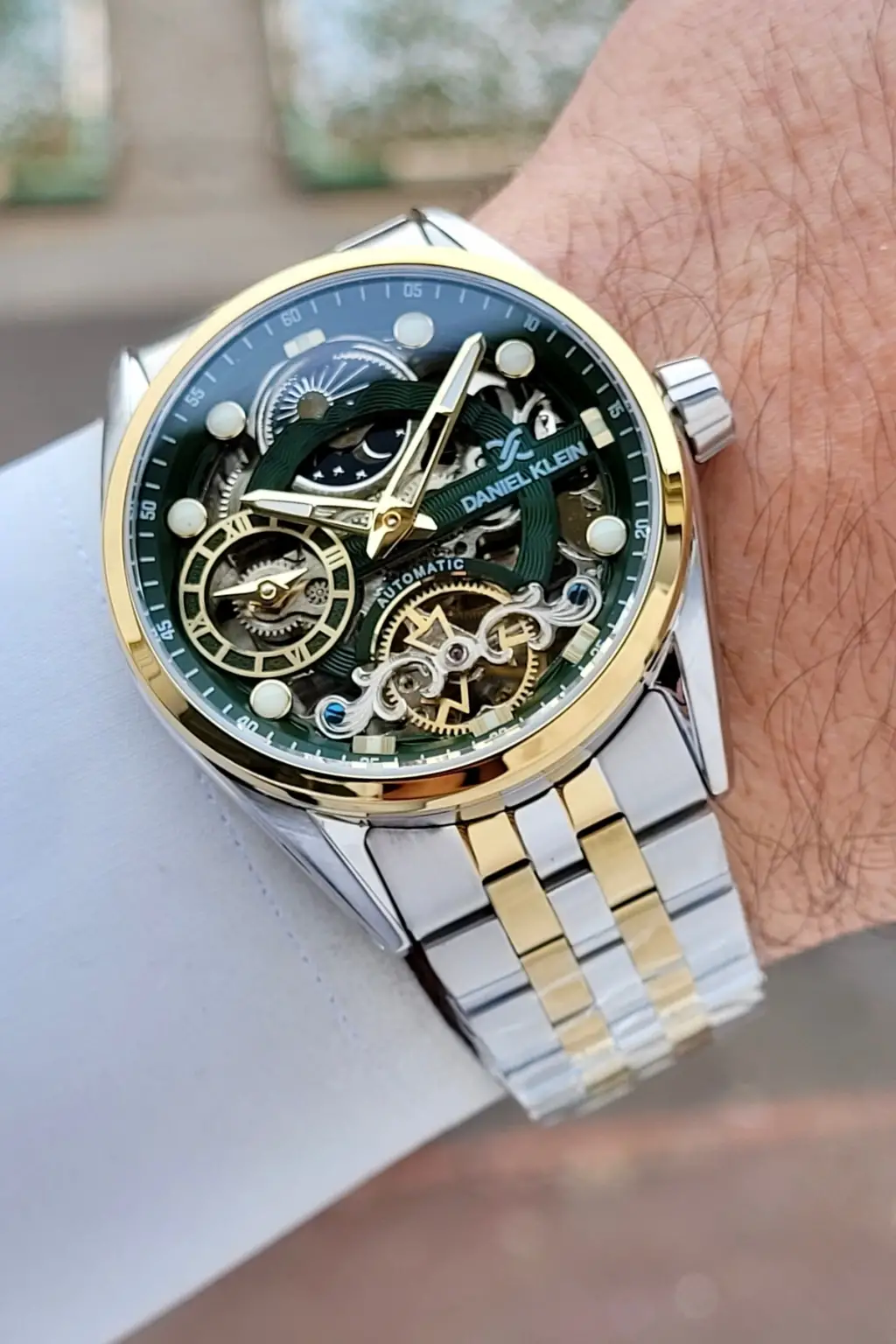 Kadranı Yeşil Kordonu Gold Gümüş Renk Otomatik Fonksiyonlu Fosforlu Erkek Kol Saati
