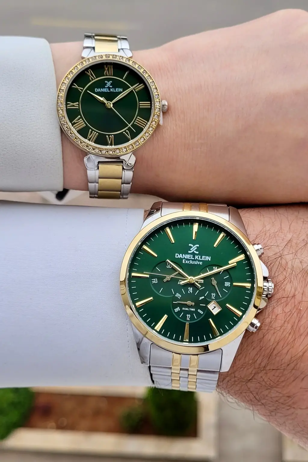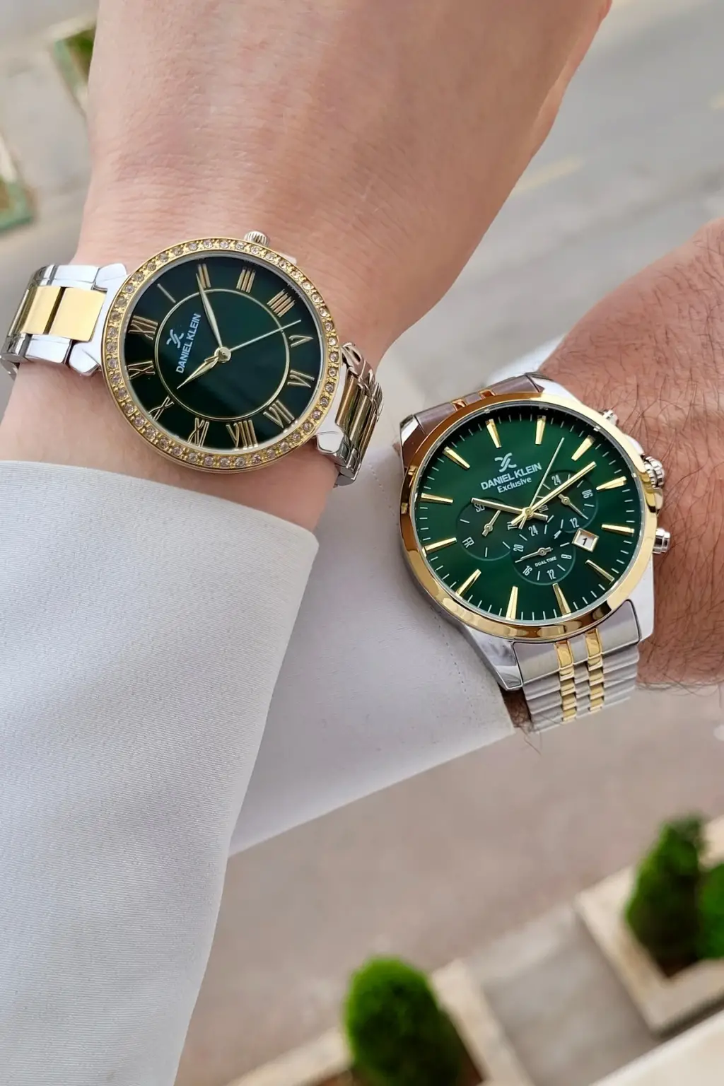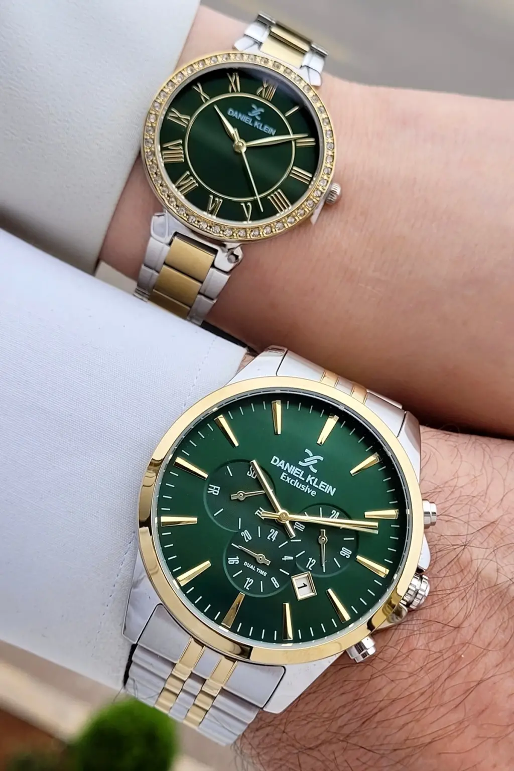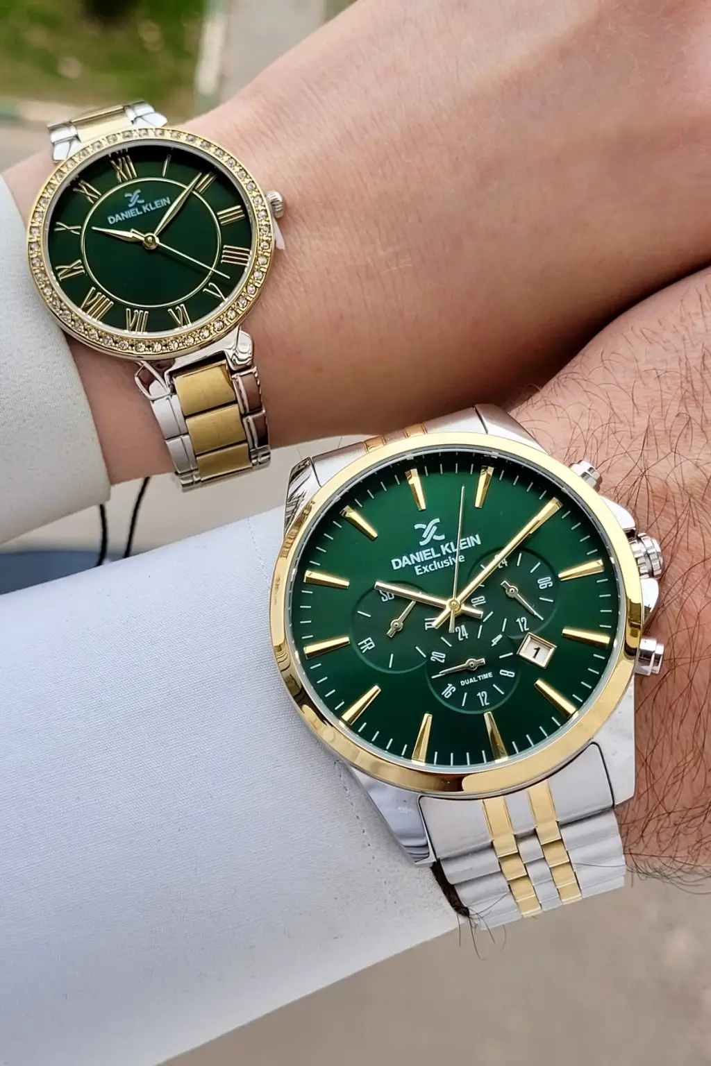 Kadranı Yeşil Kordonu Gold Gümüş Renk Sevgili Çift Kol Saati STISTE1