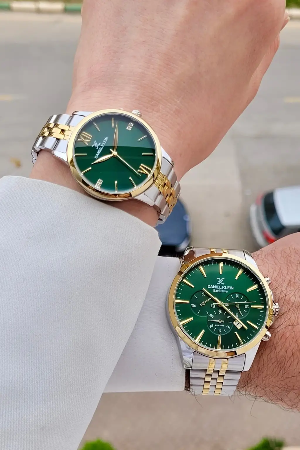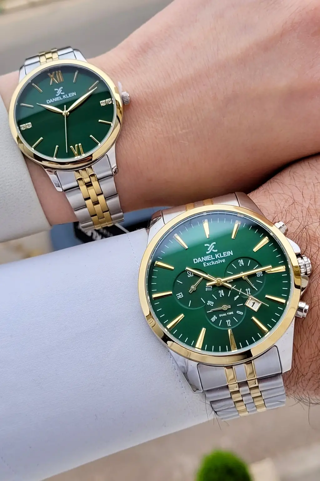 Kadranı Yeşil Kordonu Gold Gümüş Renk Sevgili Çift Kol Saati STISTE6