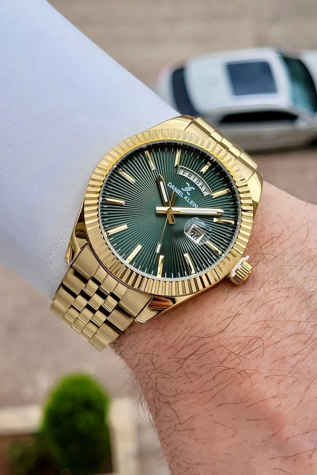 Kadranı Yeşil Kordonu Gold Renk Hediye Paketli Erkek Kol Saati