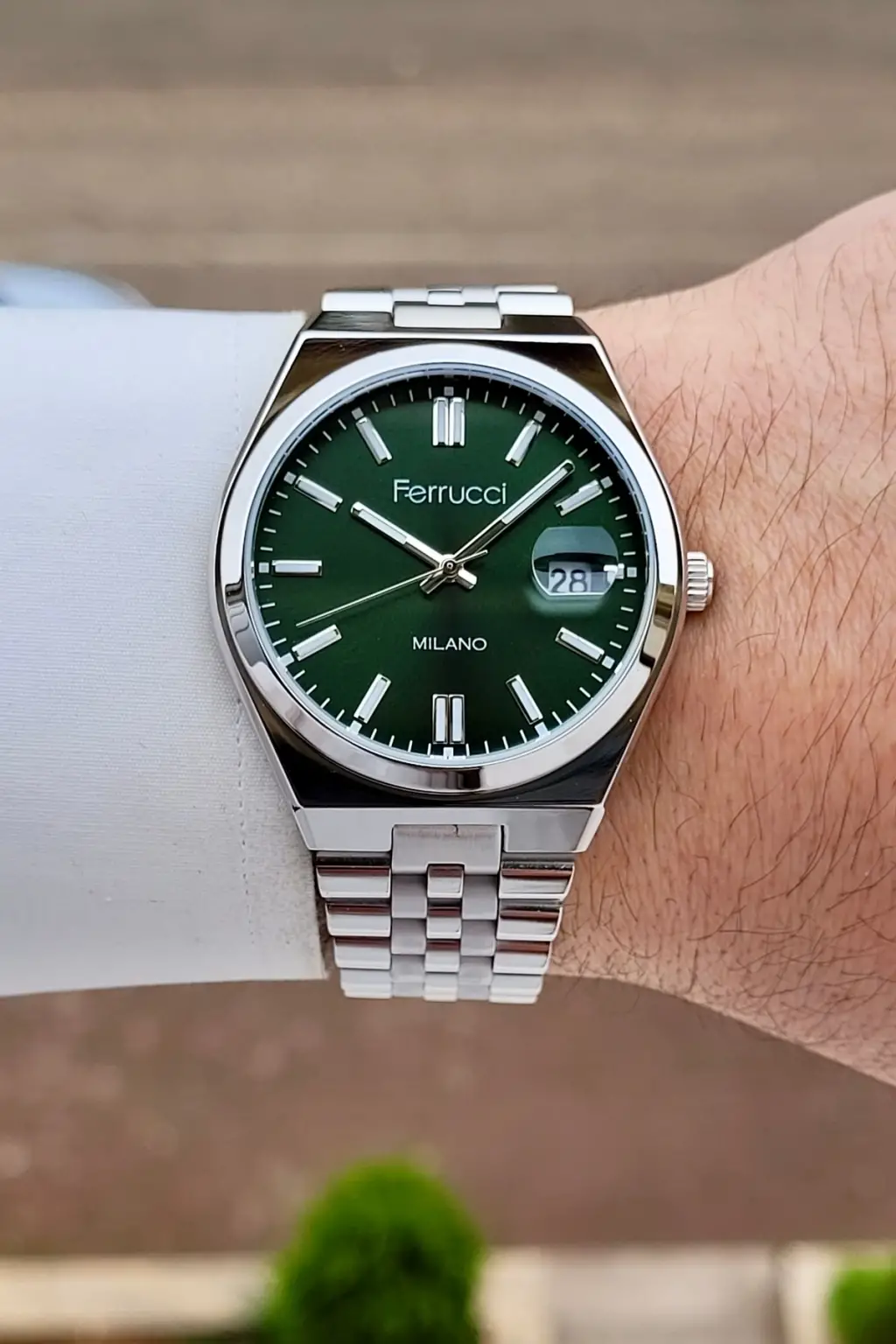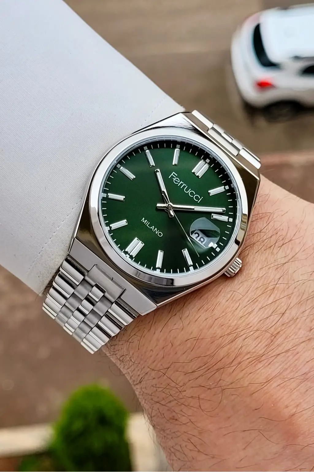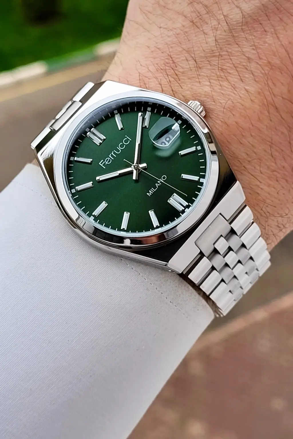 Kadranı Yeşil Kordonu Gümüş Renk 40 Mm Erkek Kol Saati