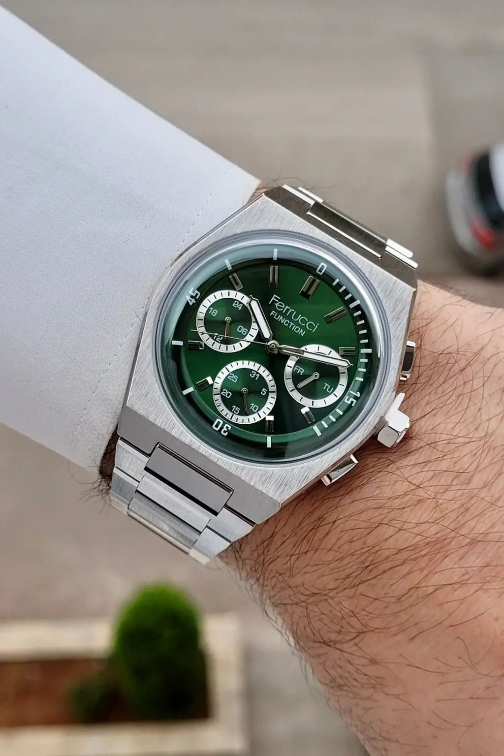 Kadranı Yeşil Kordonu Gümüş Renk 41 Mm İç Göstergeleri Aktif Erkek Kol Saati