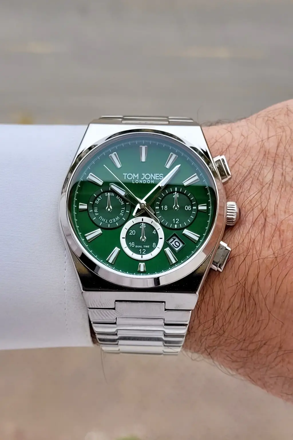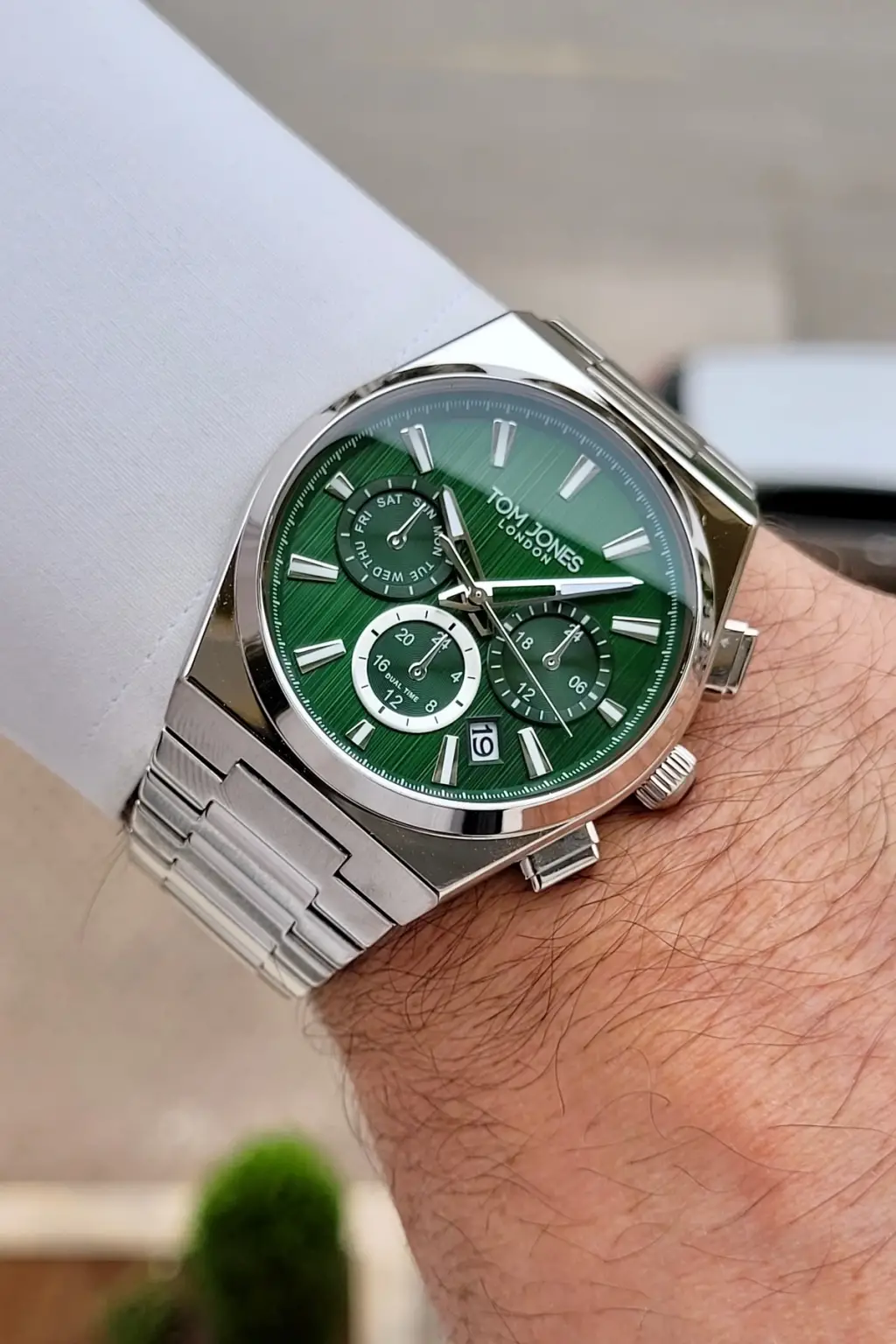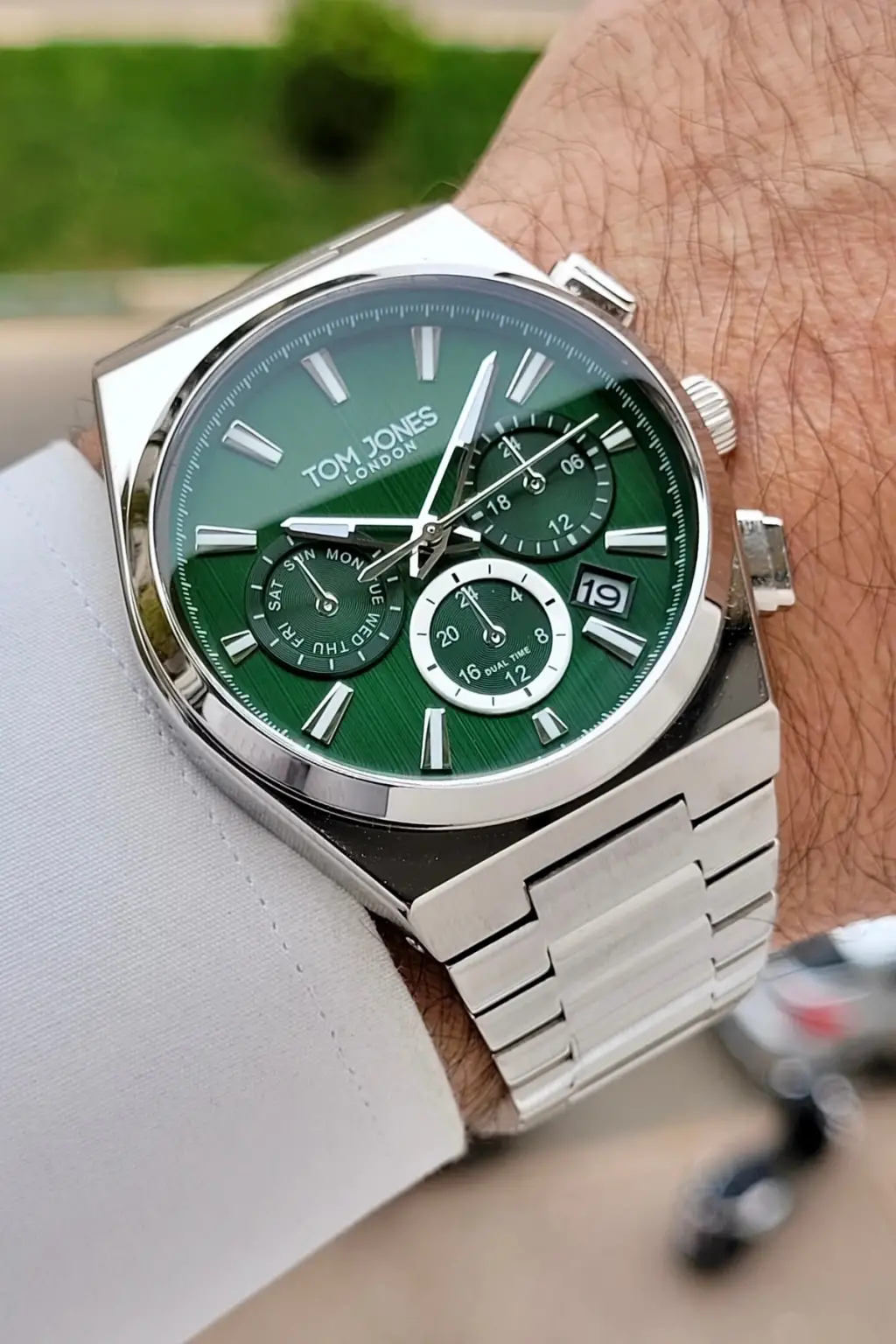 Kadranı Yeşil Kordonu Gümüş Renk 42 mm Erkek Kol Saati