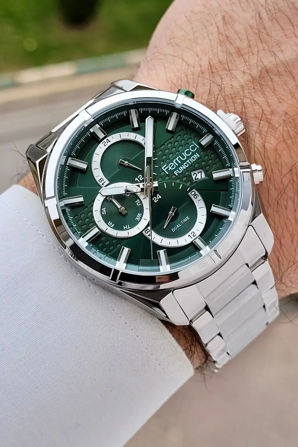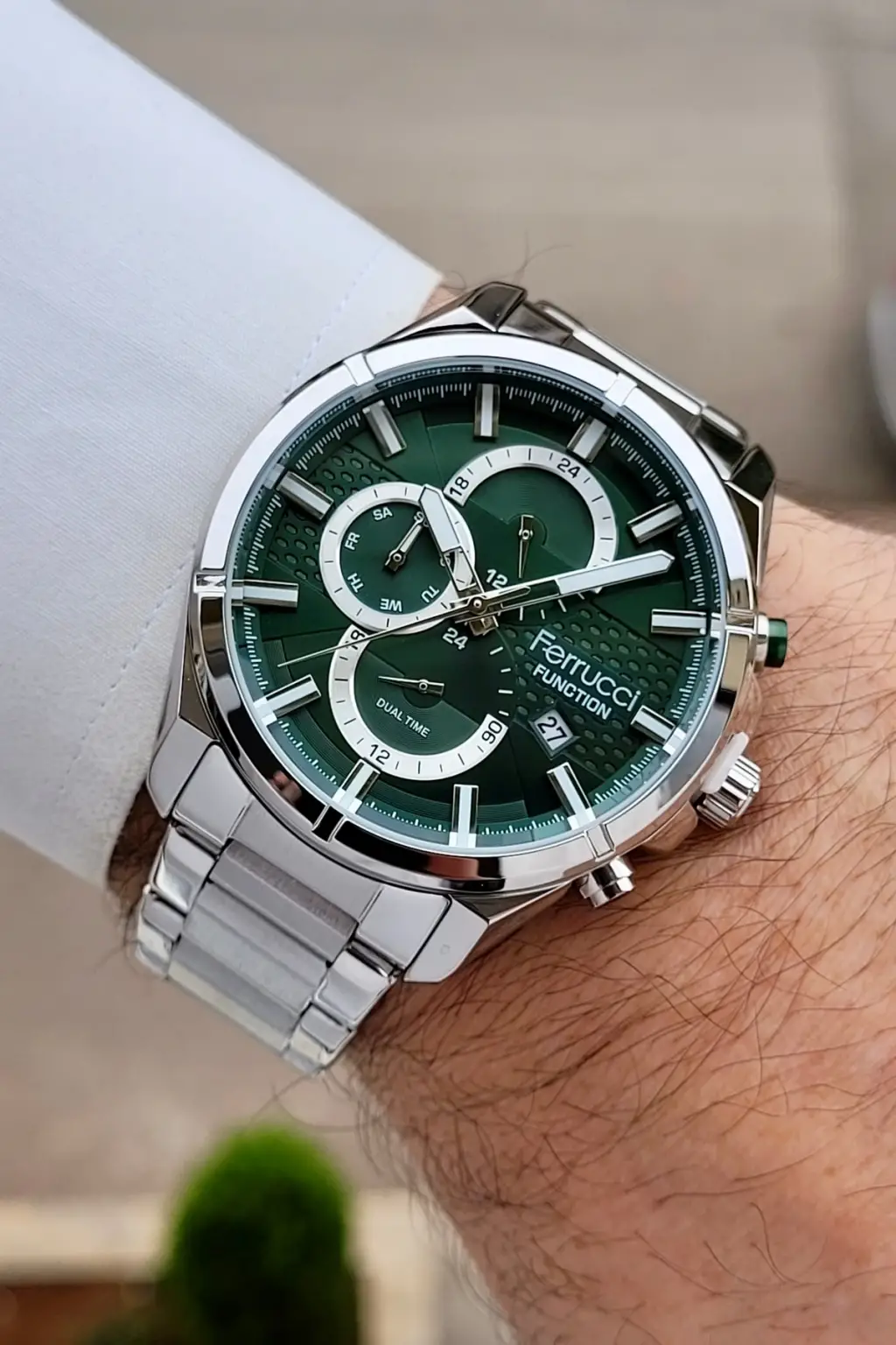 Kadranı Yeşil Kordonu Gümüş Renk 43 Mm İç Göstergeleri Aktif Erkek Kol Saati